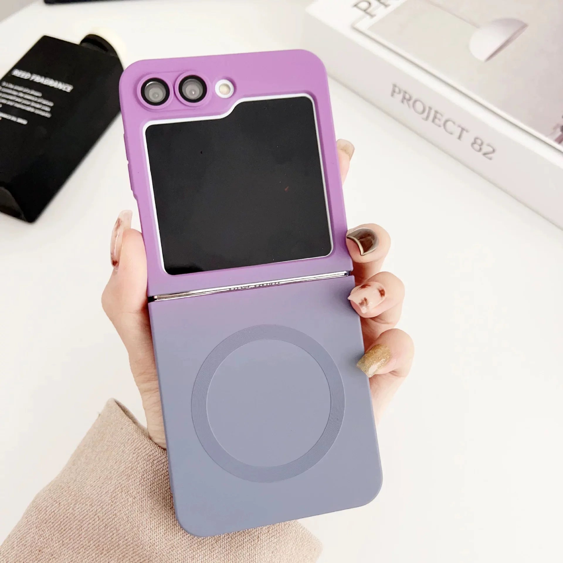 Gradient Dual Color Magnetic Soft Case For Samsung Galaxy Z Flip 6 5 4 3 For Magsafe Lens Film Protection Wireless Charge Cover