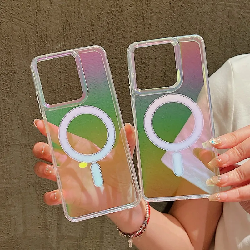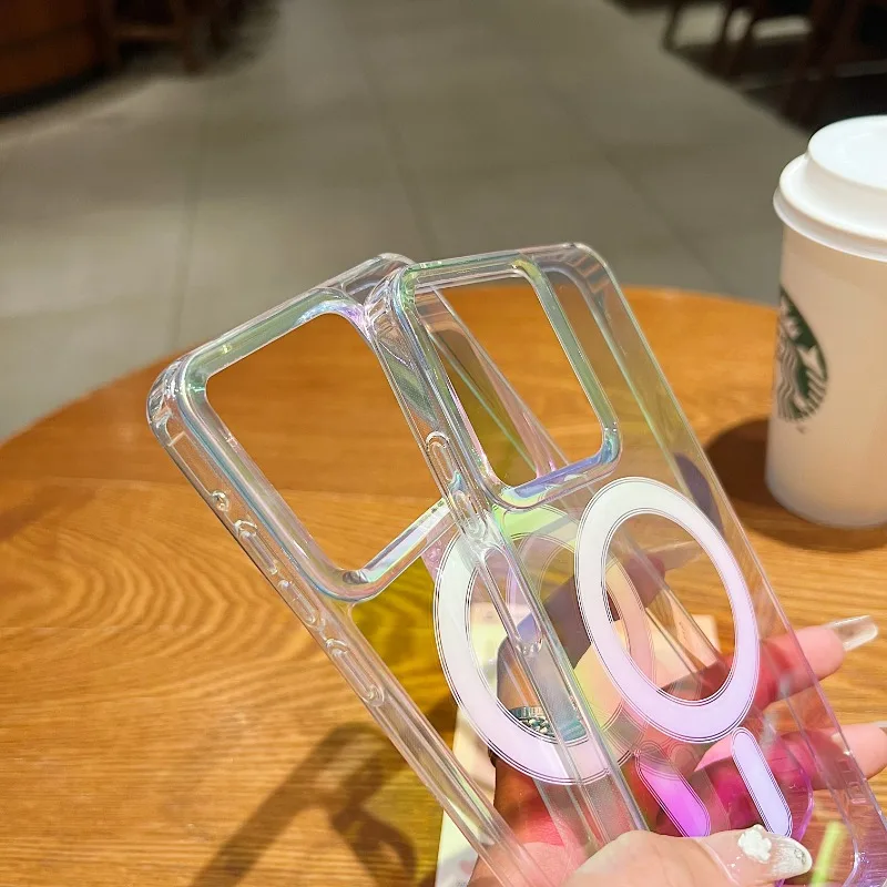 Gradient Rainbow Clear Magnetic Case For Motorola Moto Edge 50 Fusion G Stylus 5G (2025) G85 G45 G34 Magsafe Shockproof Cover