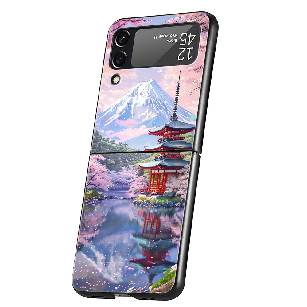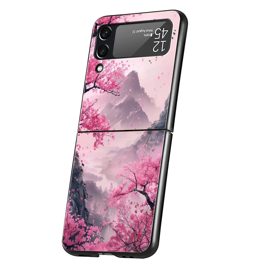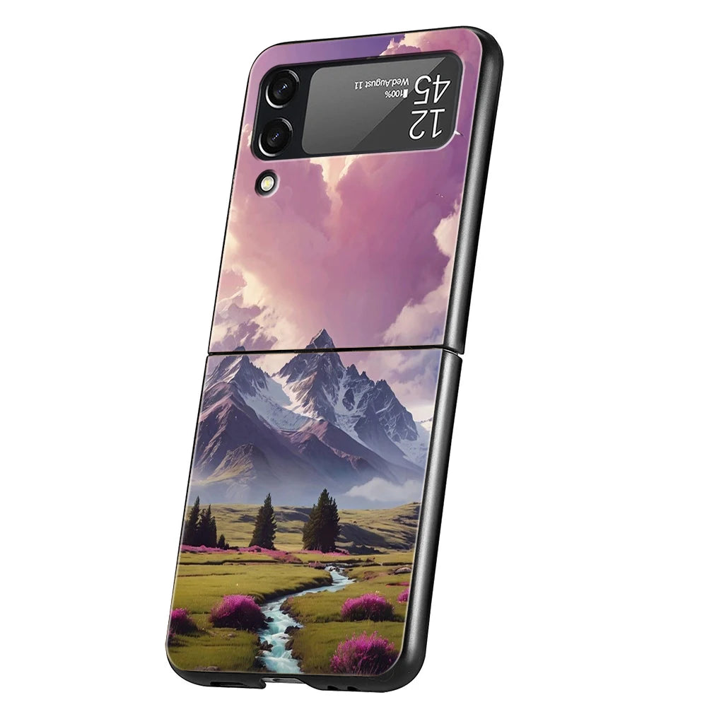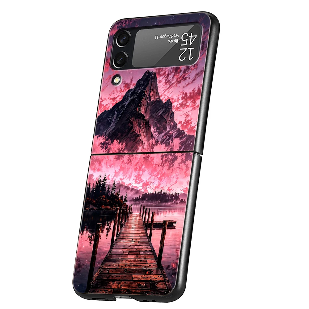 Hard PC Phone Case For Samsung Galaxy Z Flip 7 6 5 4 Black Cover For Galaxy Z Flip 3 Foldable Shockproof Pink Sunset Mountain