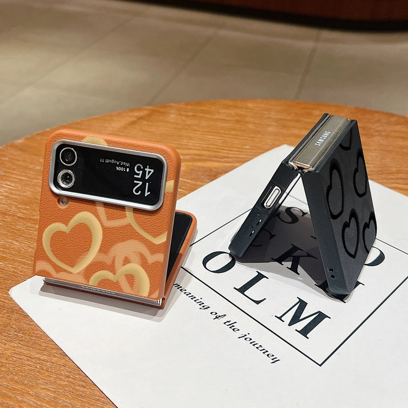 Hollow Out Heart Leather Texture TPU Phone Case For Samsung Galaxy Z Flip 3 4 5 6 Folding Cover For Samsung Z Flip5 Flip6 Flip4
