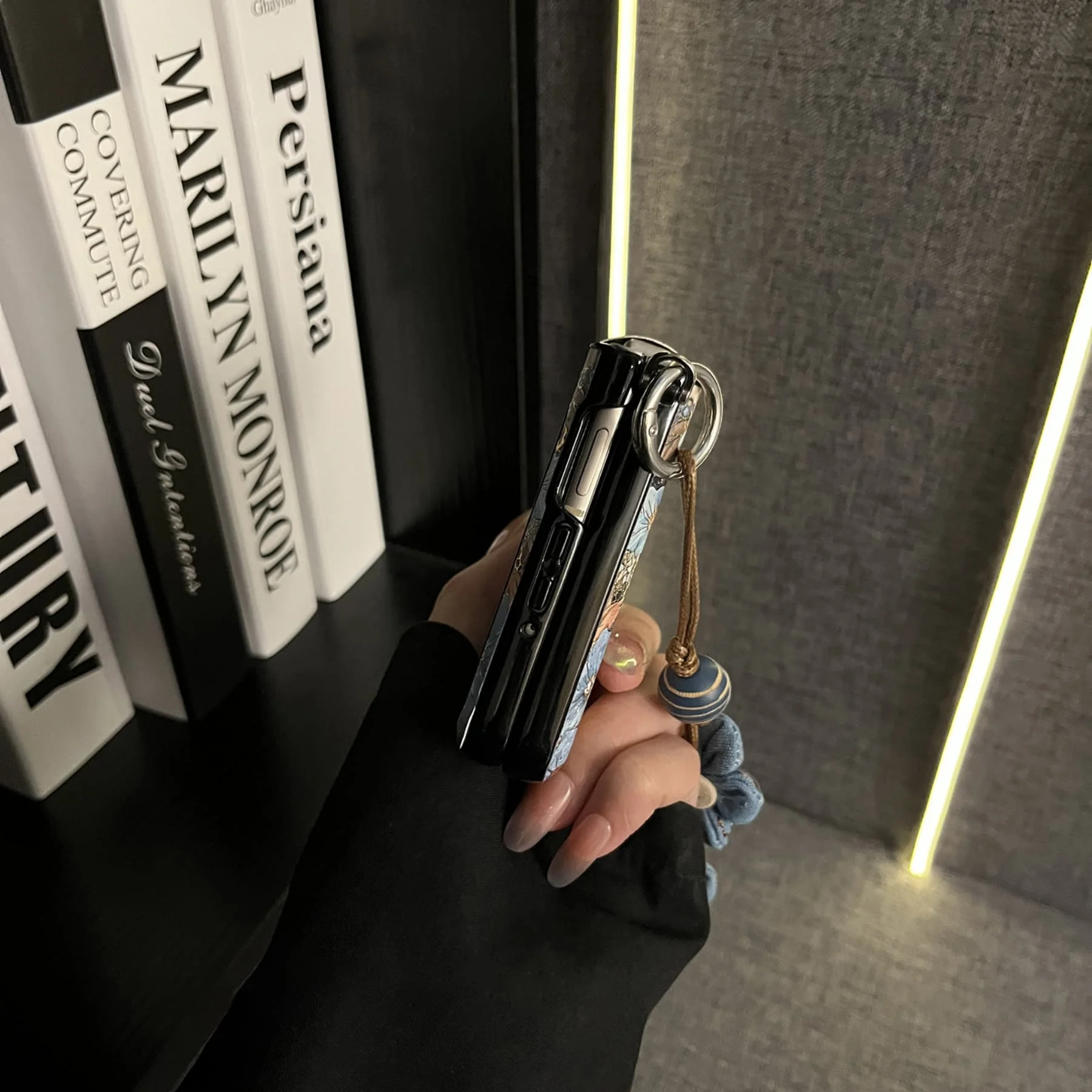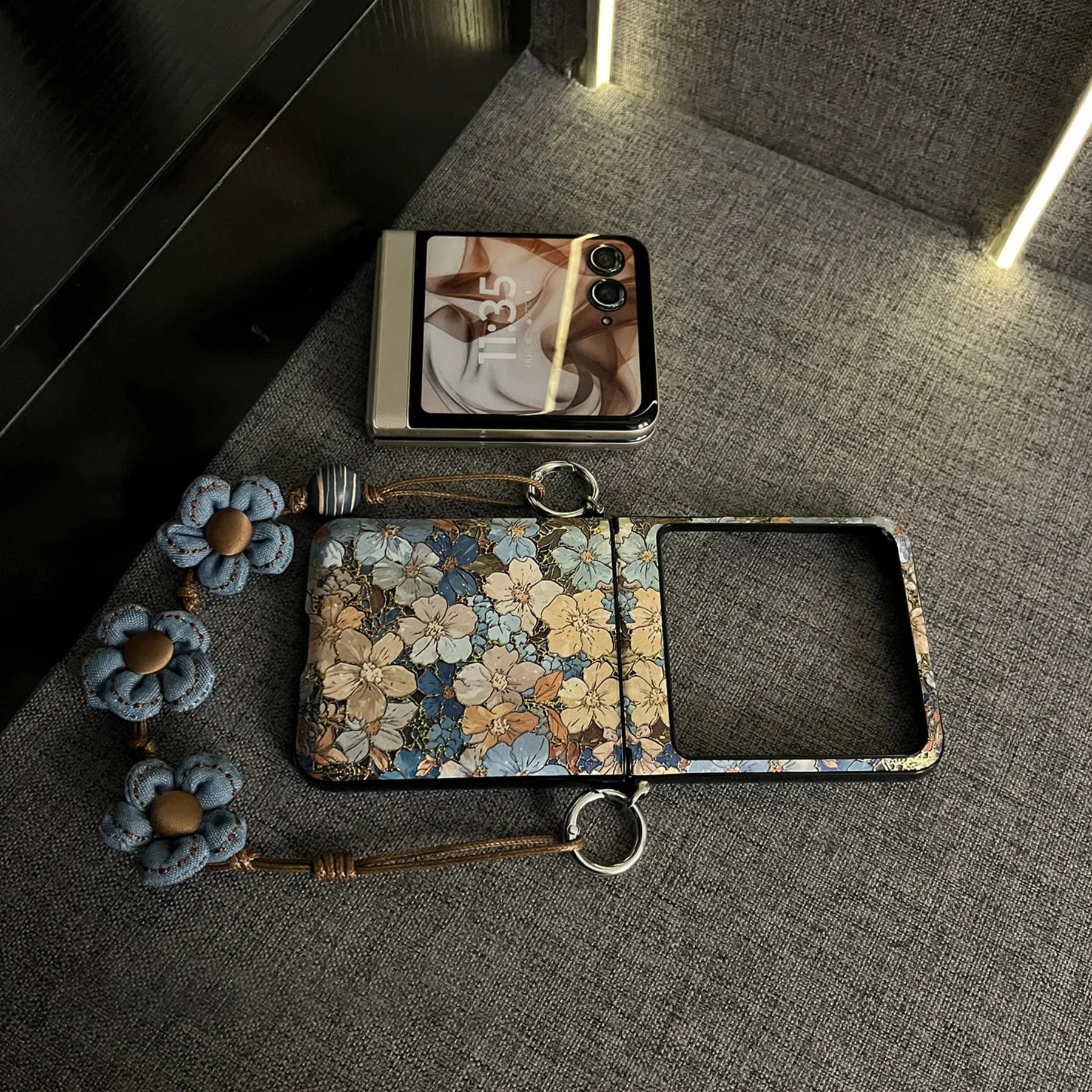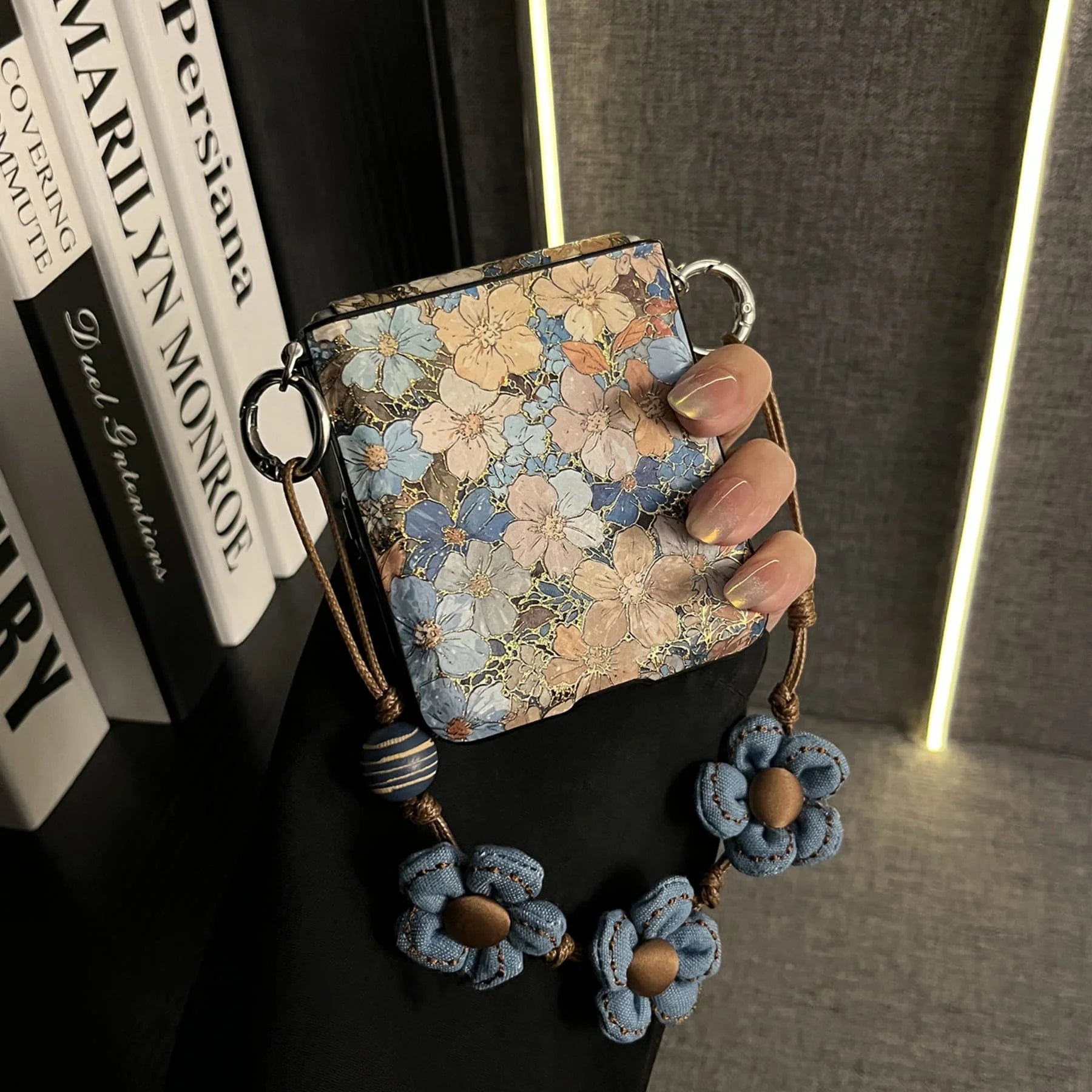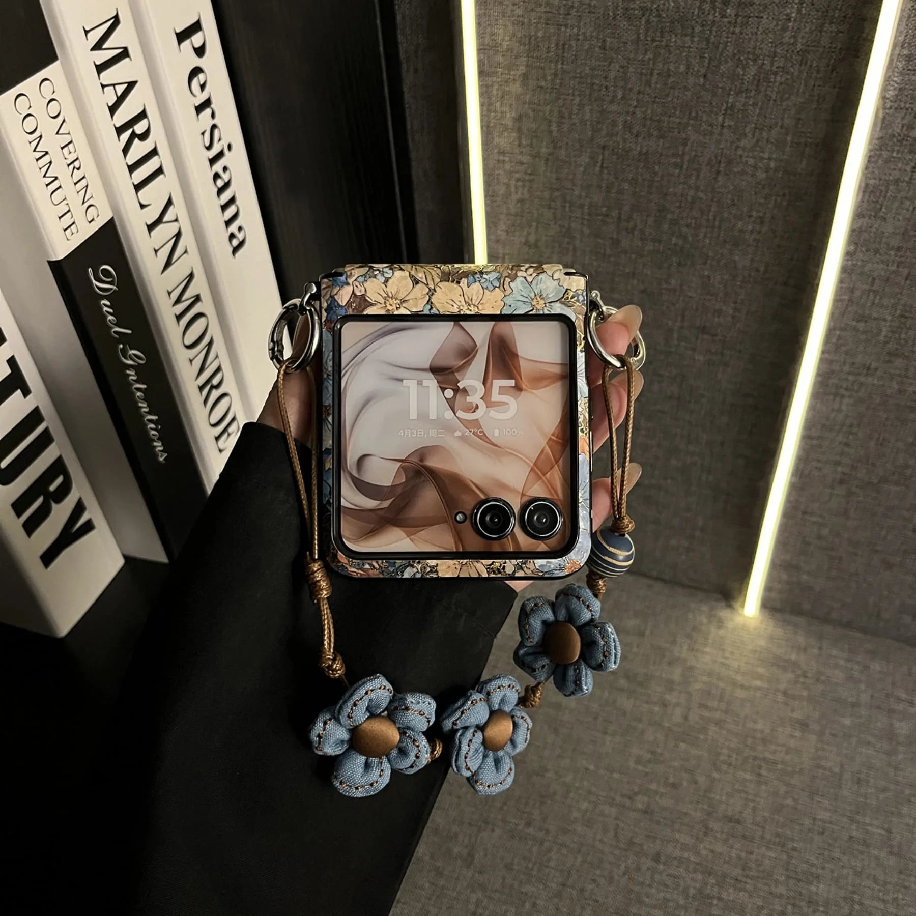 Korean Luxury Retro Blue Flower Rope Phone Case for Motorola Razr50 Razr 50 Ultra 50ultra Razr60 60 ultra Shockproof Back Cover