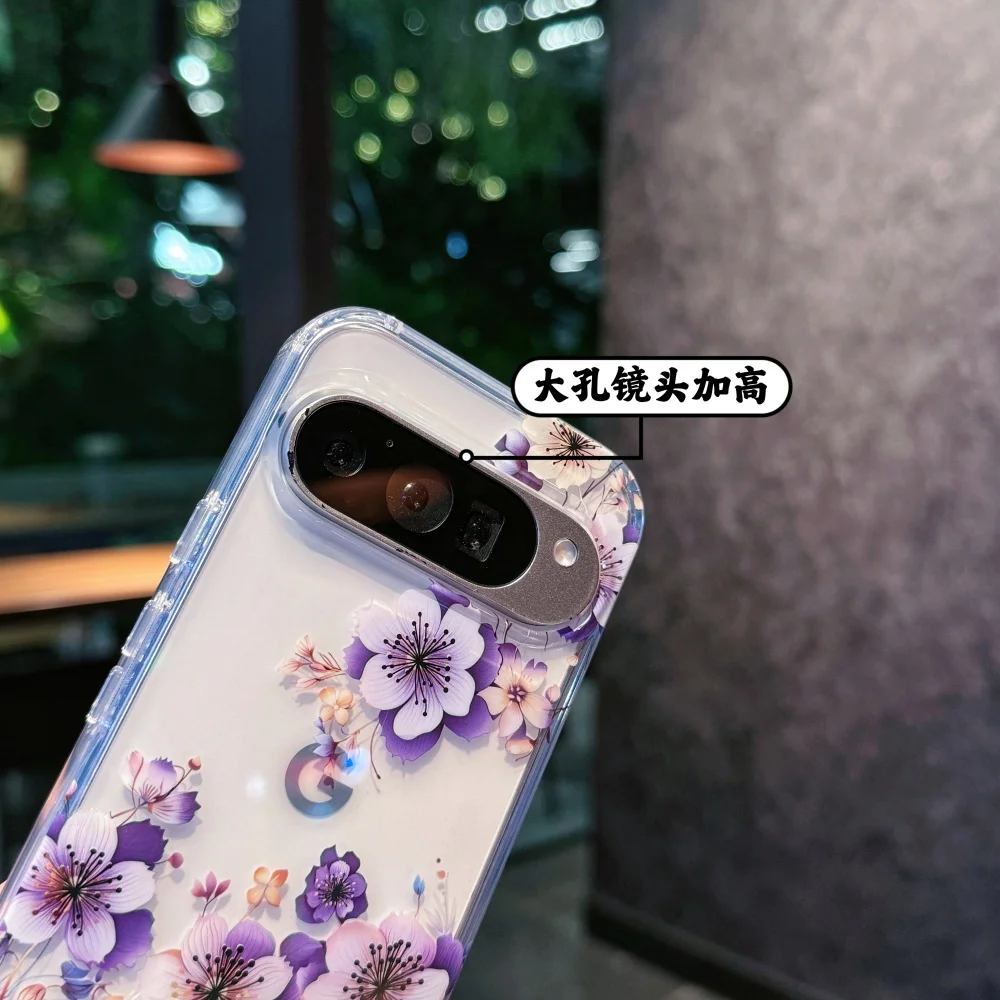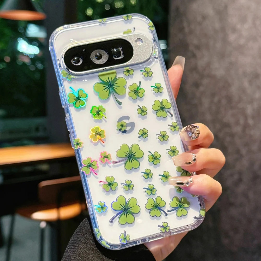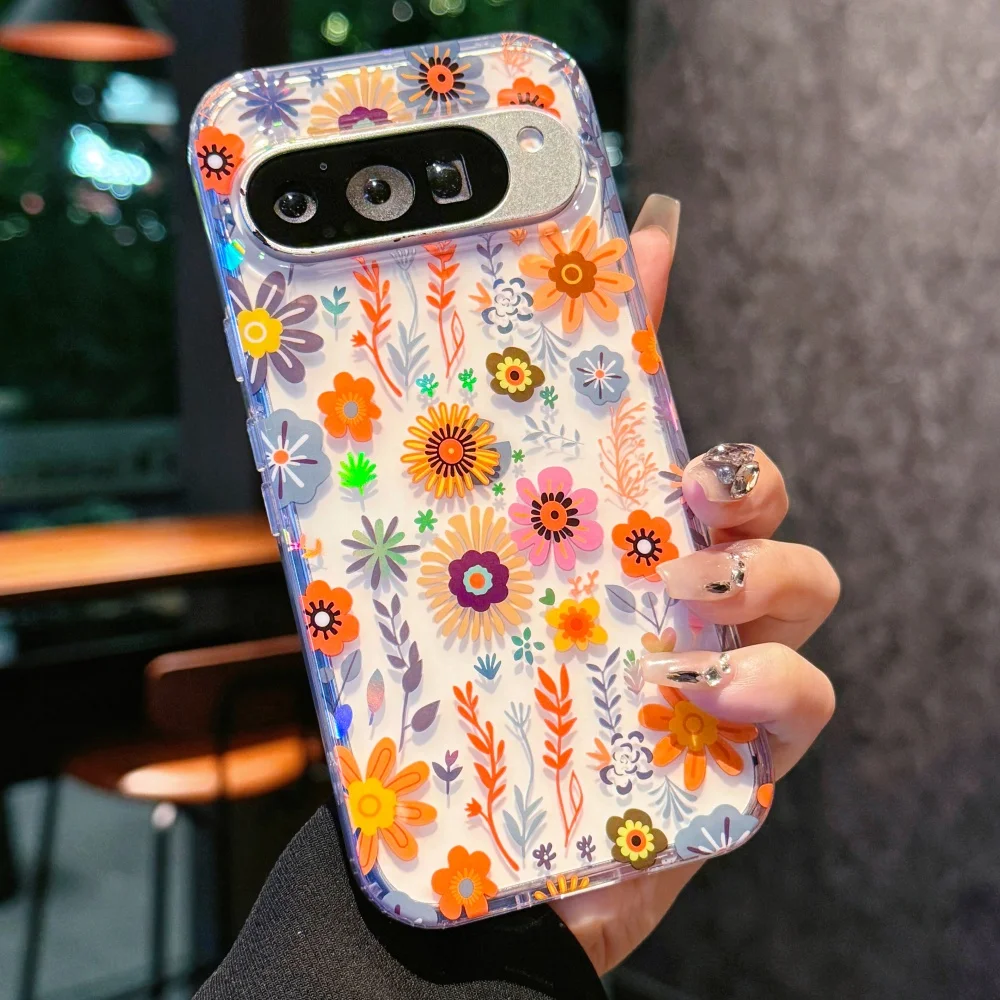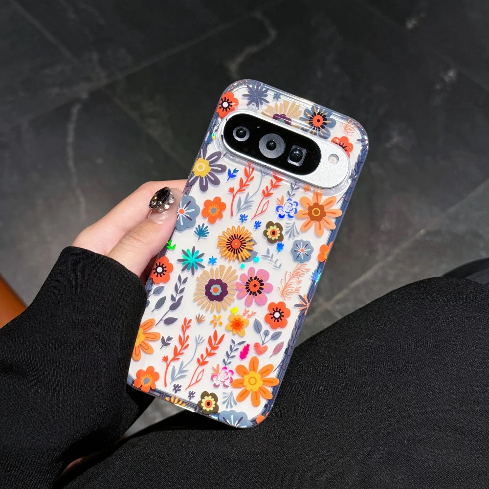 Laser Flower Reflective Phone Case For Google Pixel 10 10Pro XL 9 Pro XL 9A Transparent Floral Print TPU Shockproof Airbag Cover