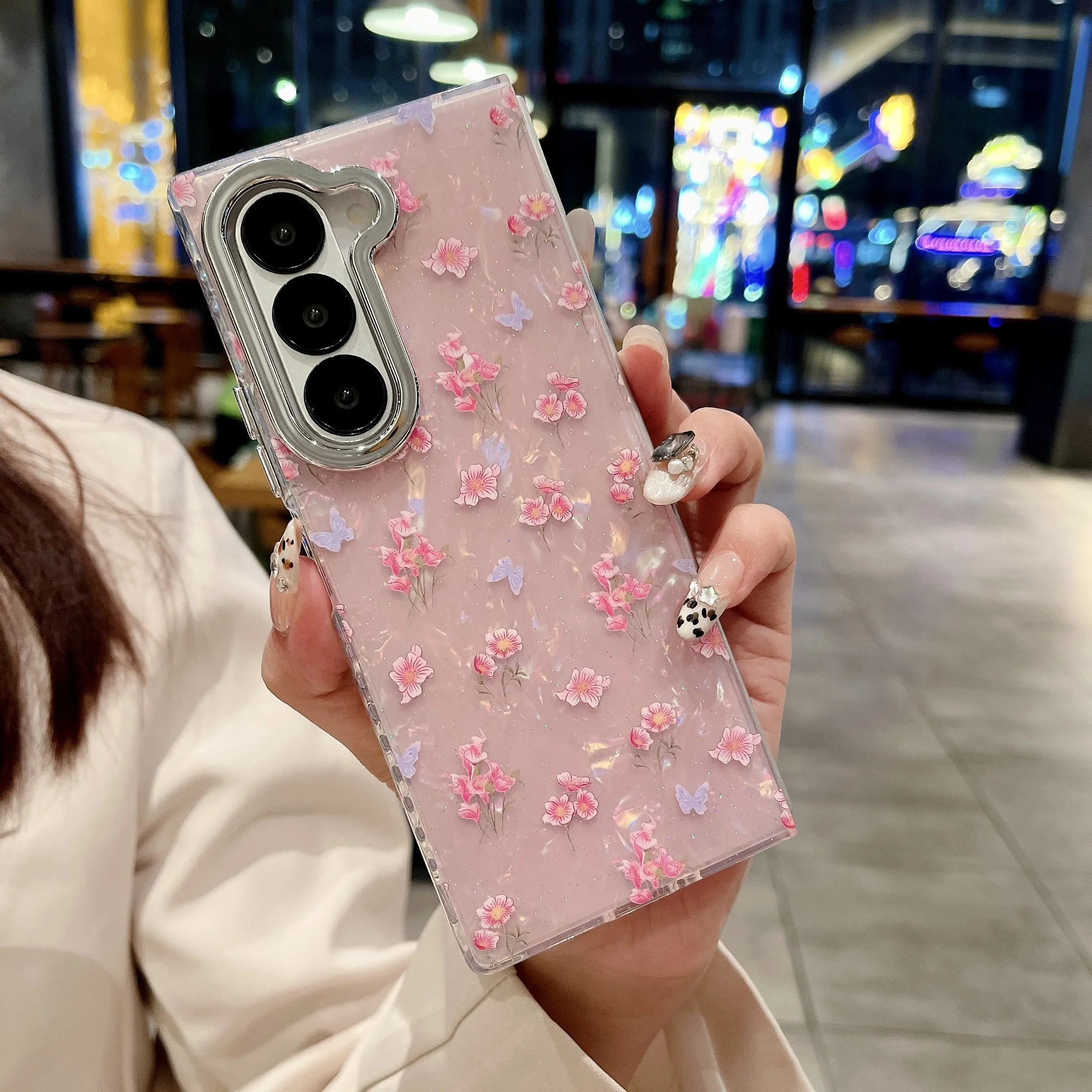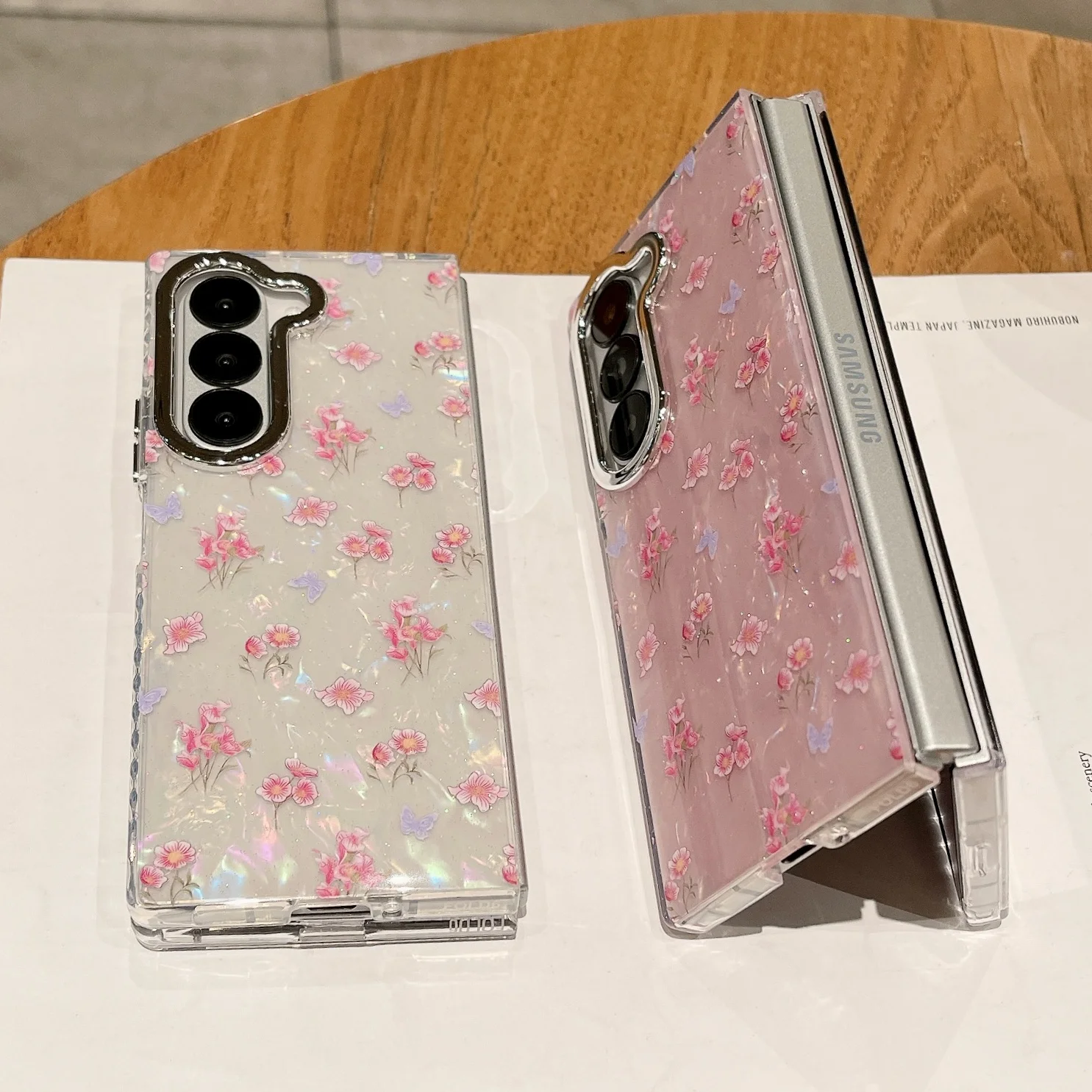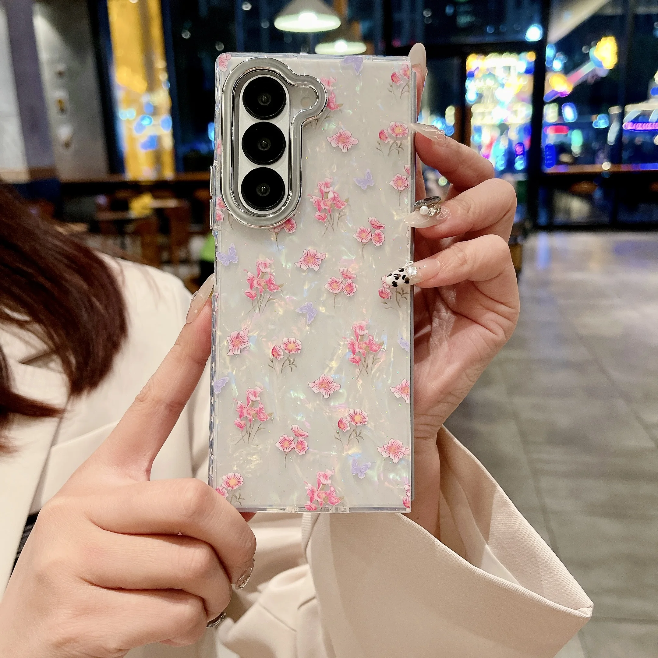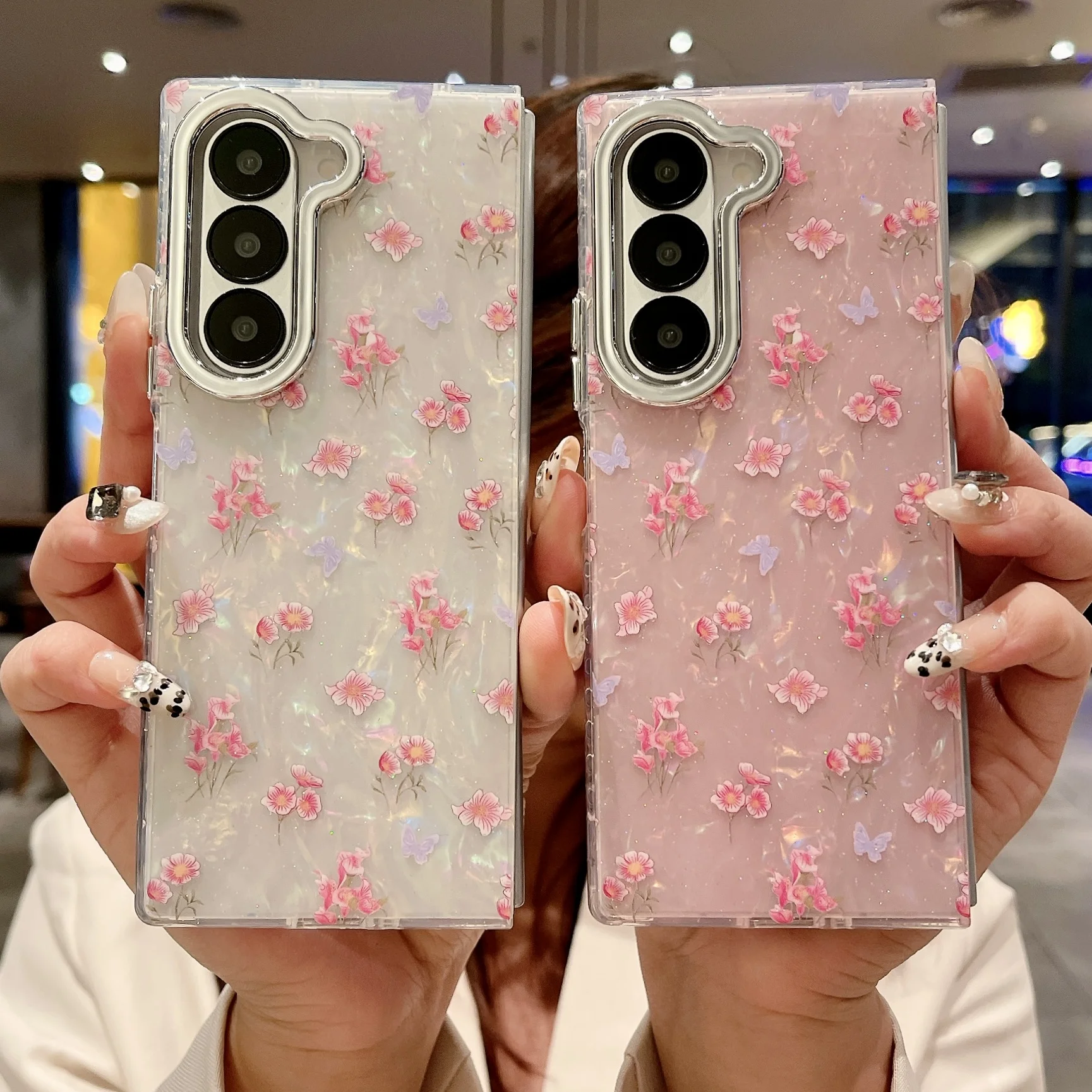 Laser Shell Pattern Flower Cases For Samsung Galaxy Z Fold 6 Glitter Cover For Samsung Z Fold 5 zfold4 zfold3 Hard Back Shell