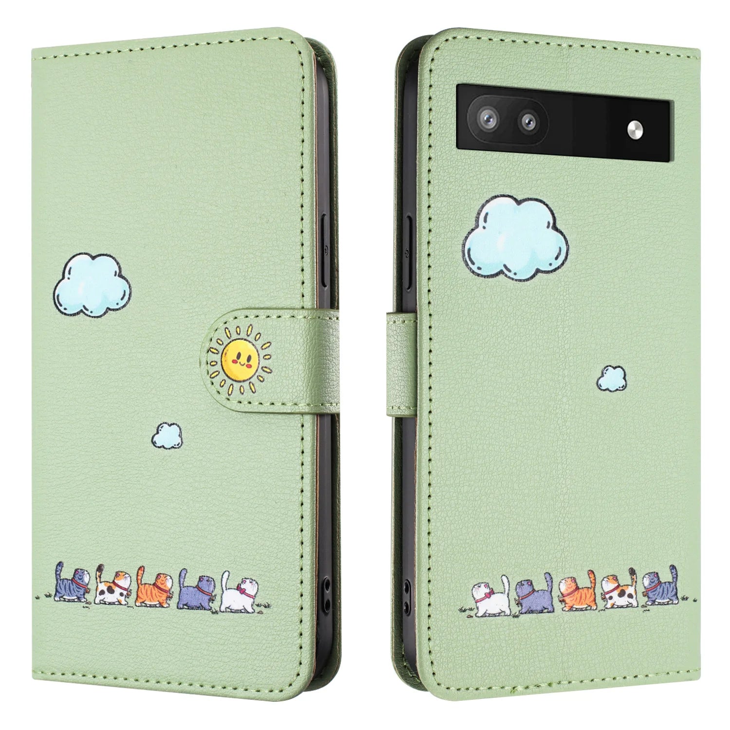 Leather Cat Phone Wallet Case Book Kickstand For Google Pixel 9 8 7 Pro 8A 7A 9A,Sony Xperia 1 10 V 5G Card Slot Cute Flip Cover