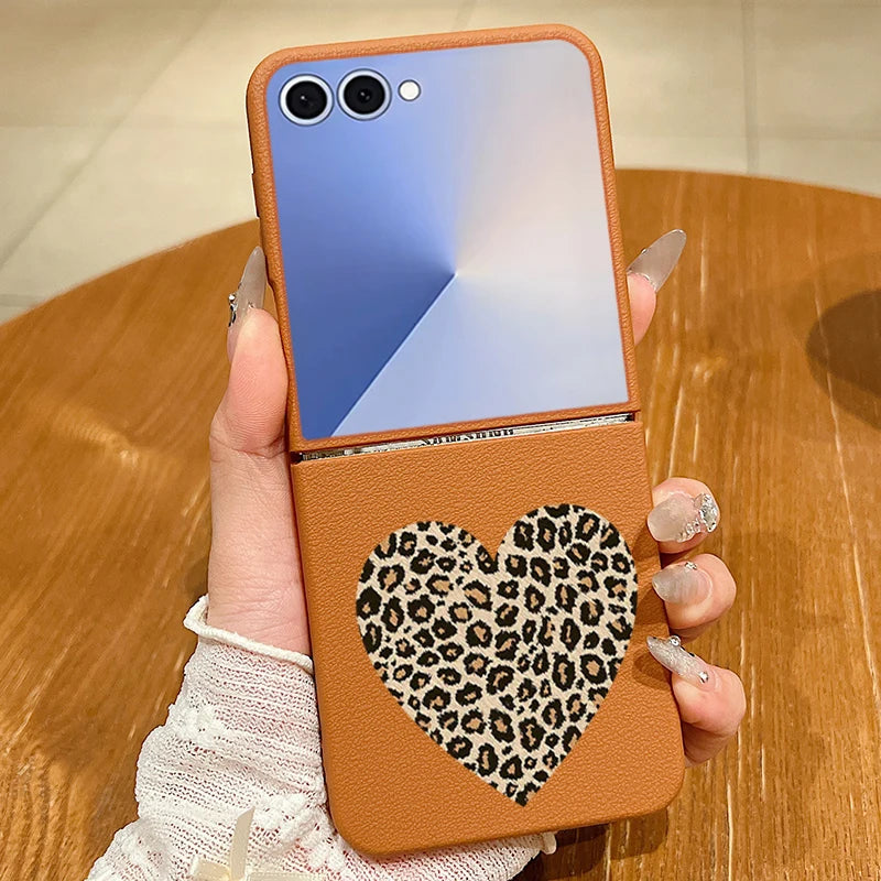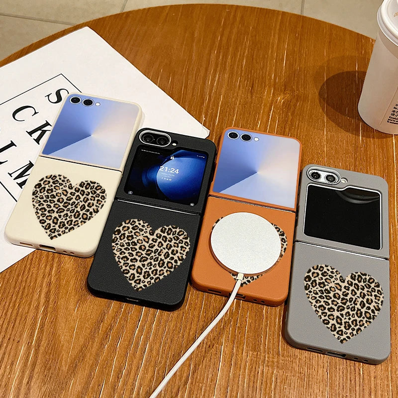 Leopard Print Big Heart Phone Case For Samsung Galaxy Z Flip7 FE Flip6 Flip 7 6 5 4 3 For Magsafe Wireless Charge Folding Cover