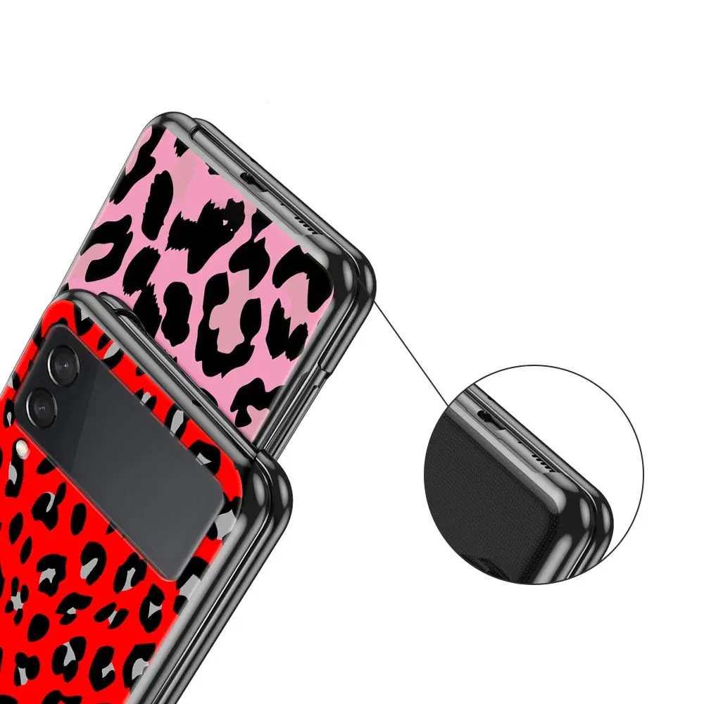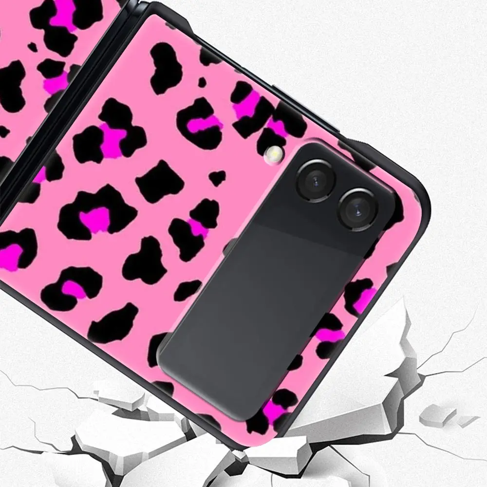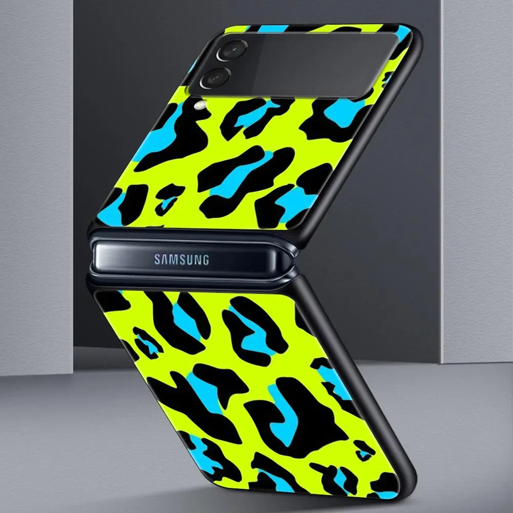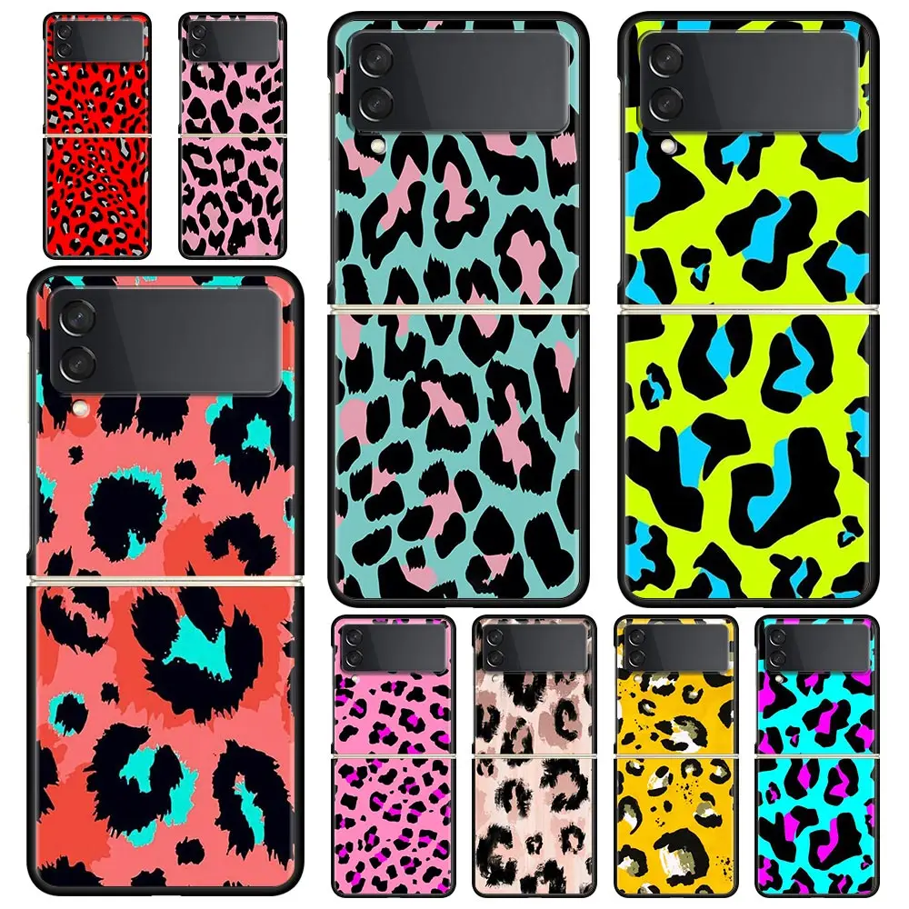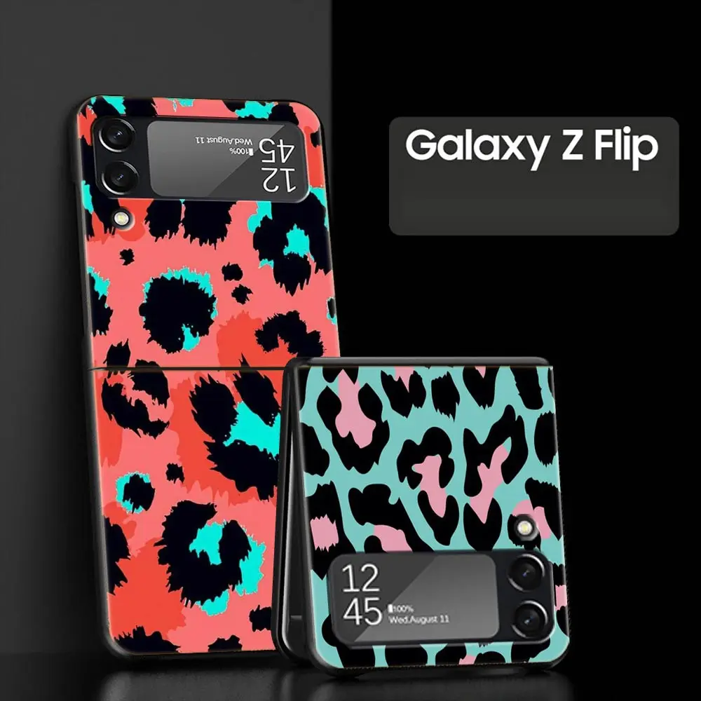 Leopard Print Pattern Phone Case For Samsung Galaxy Z Flip3 Flip4 Flip5 Shell For Z Flip 3 Flip 5 4 5G Black Hard Folding Cover