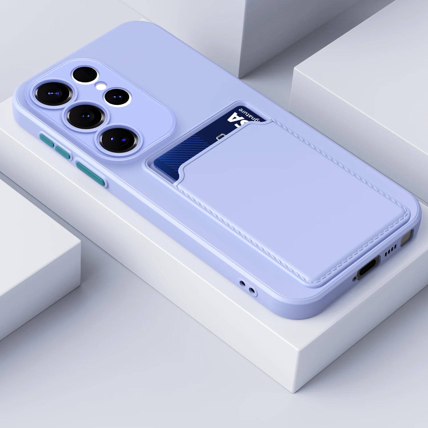 Liquid Silicone Case For Samsung Galaxy S25 S24 S23 S22 S21 S20 Ultra Plus FE Note 20 10 Ultra A16 A56 A26 A54 Card Holder Cover