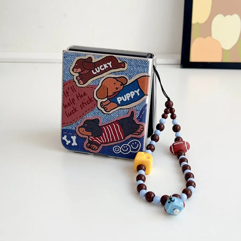 Luck Puppy Pattern Phone Case for MOTO Razr 50 40Ultra Motorola 50Ultra Cute Cartoon Back Cover with Beaded Bracelets Funda Case