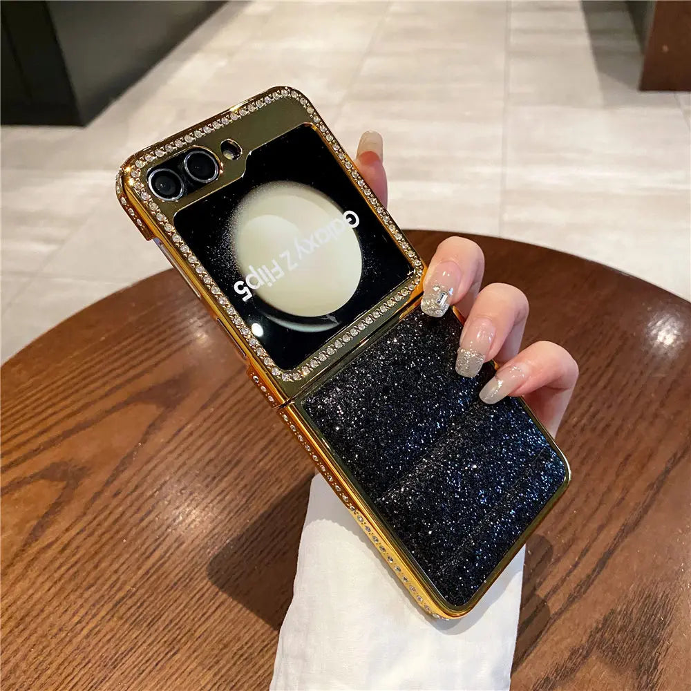 Luxury Bling Diamond Leather Plating Case For Samsung Galaxy Z Flip 6 Flip 5 Flip 3 4 Shockproof Cover Funda