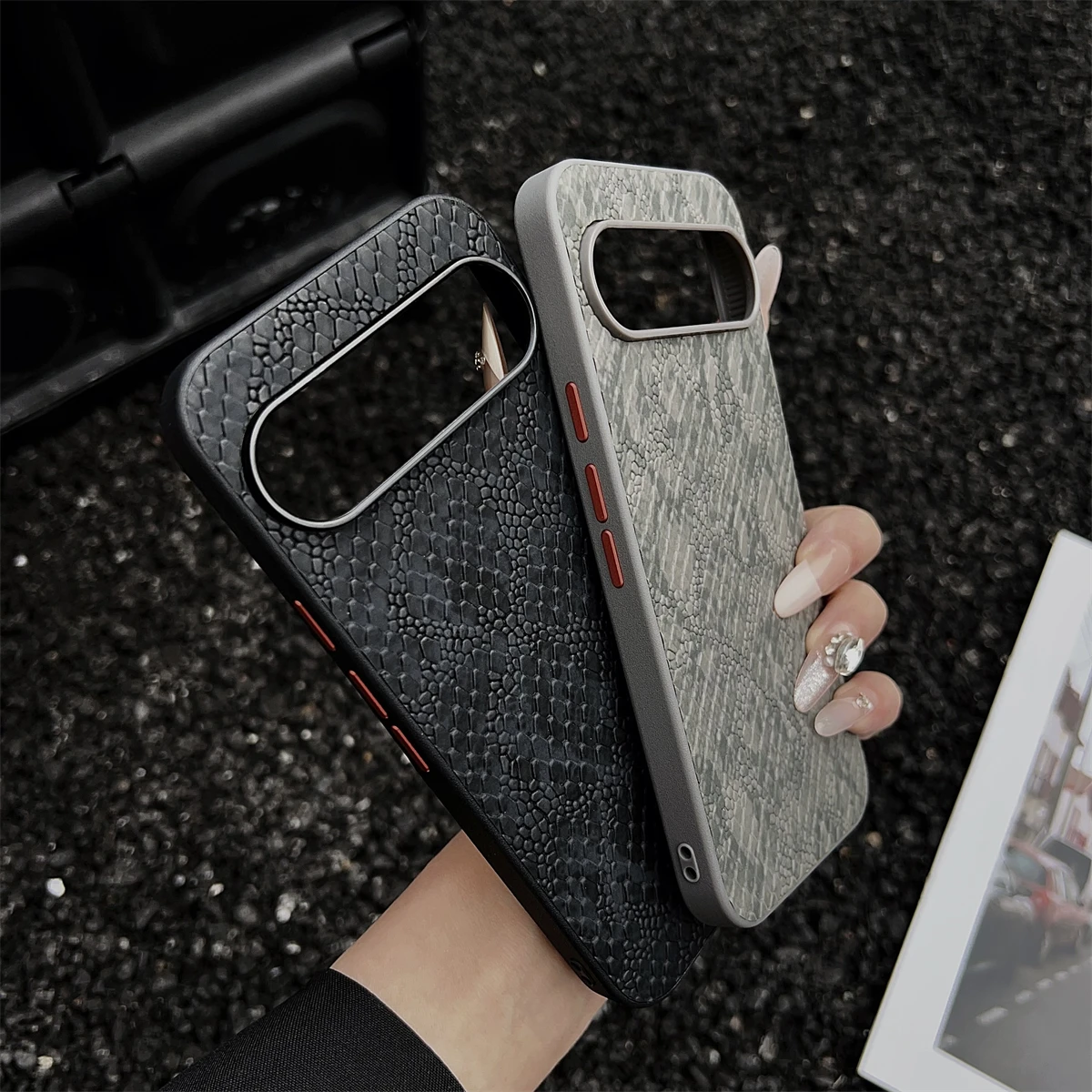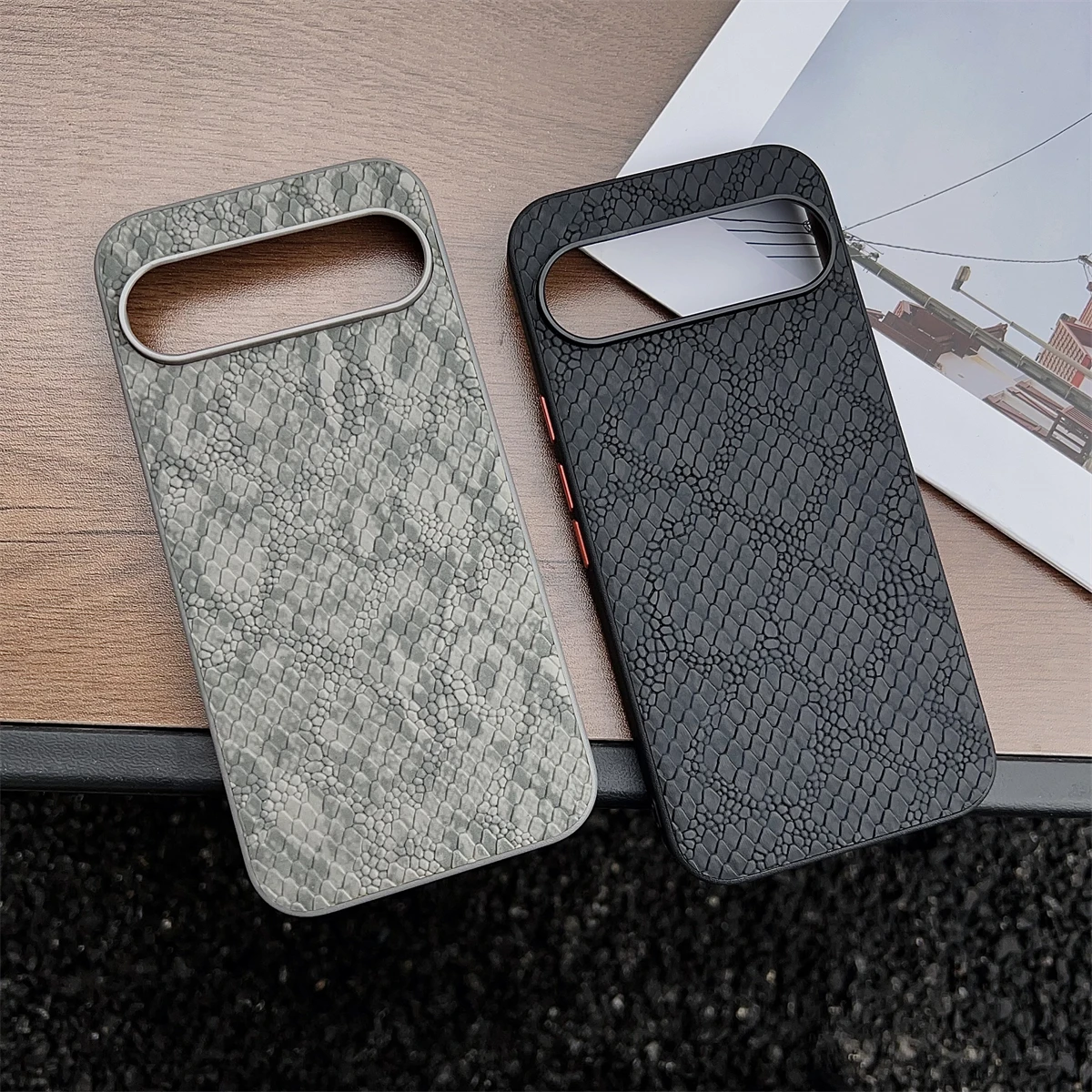 Luxury Business Black Grey Snake Pattern PU Leather Phone Case for Google Pixel 9 10 Pro XL 9Pro 9A Soft Silicon Back Cover