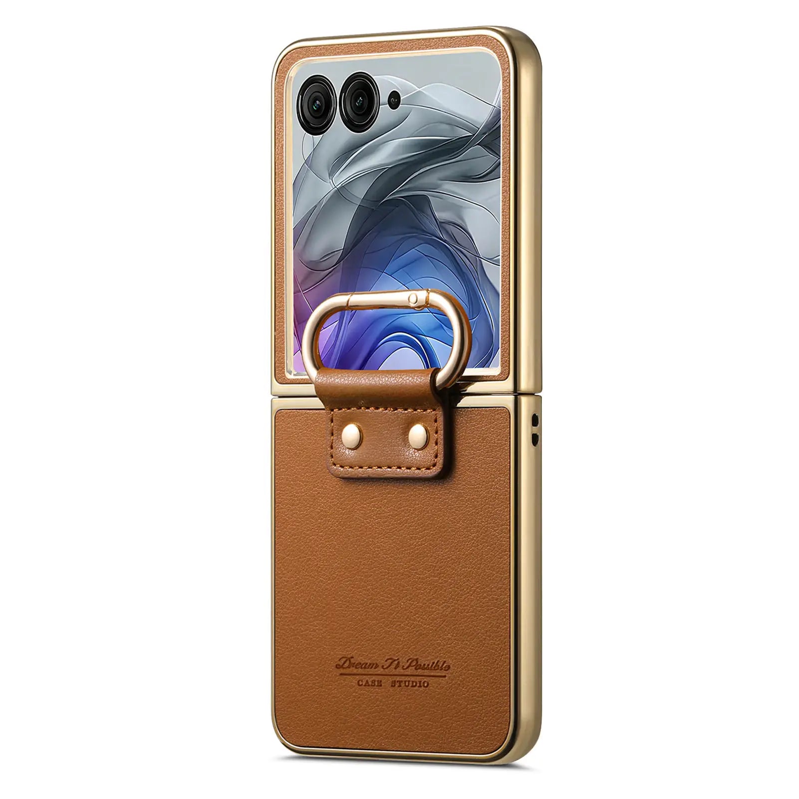 Luxury Business Ring Holder Leather Case For Motorola Razr 60 50 Ultra Shockproof Slim Electroplated edge Skin Feeling Cover