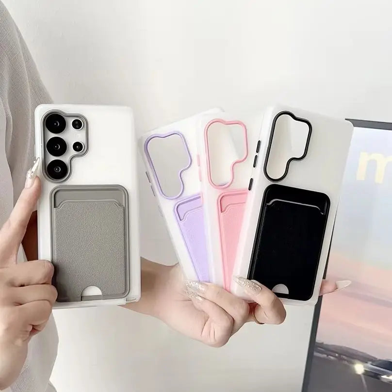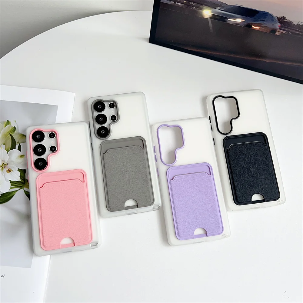 Luxury Card Holder Bag Phone Case For Samsung Galaxy S25 Edge S24 S23 Ultra Plus S24 FE Shockproof Card Slot Wallet Matte Cover