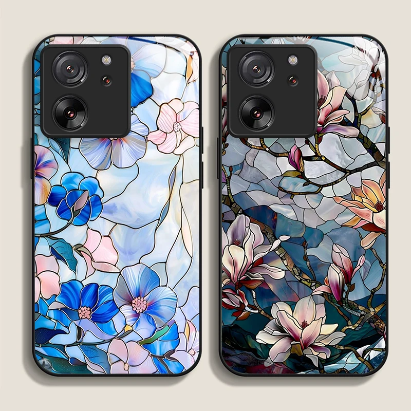 Luxury Flower Marble Texture Tempered Glass Phone Case for Motorola Moto G85 G84 G75 G55 Edge 50 Fusion 40 Neo 30 Pro Hard Cover