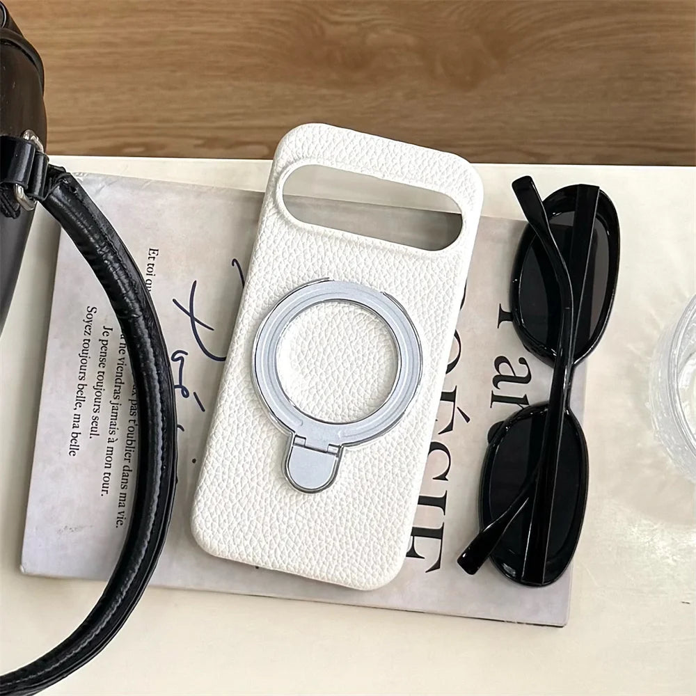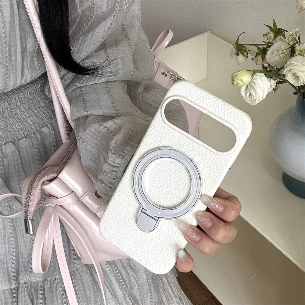 Luxury Fold Stand Lychee Pattern Leather Magnetic Case For Google Pixel 9 9A 10 Pro XL 8 8A Solid Color Shockproof Back Cover