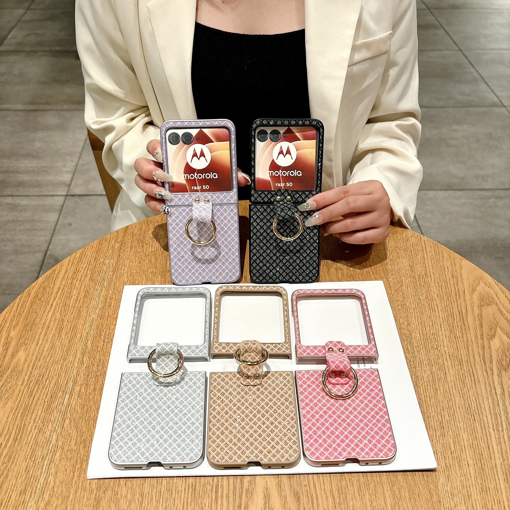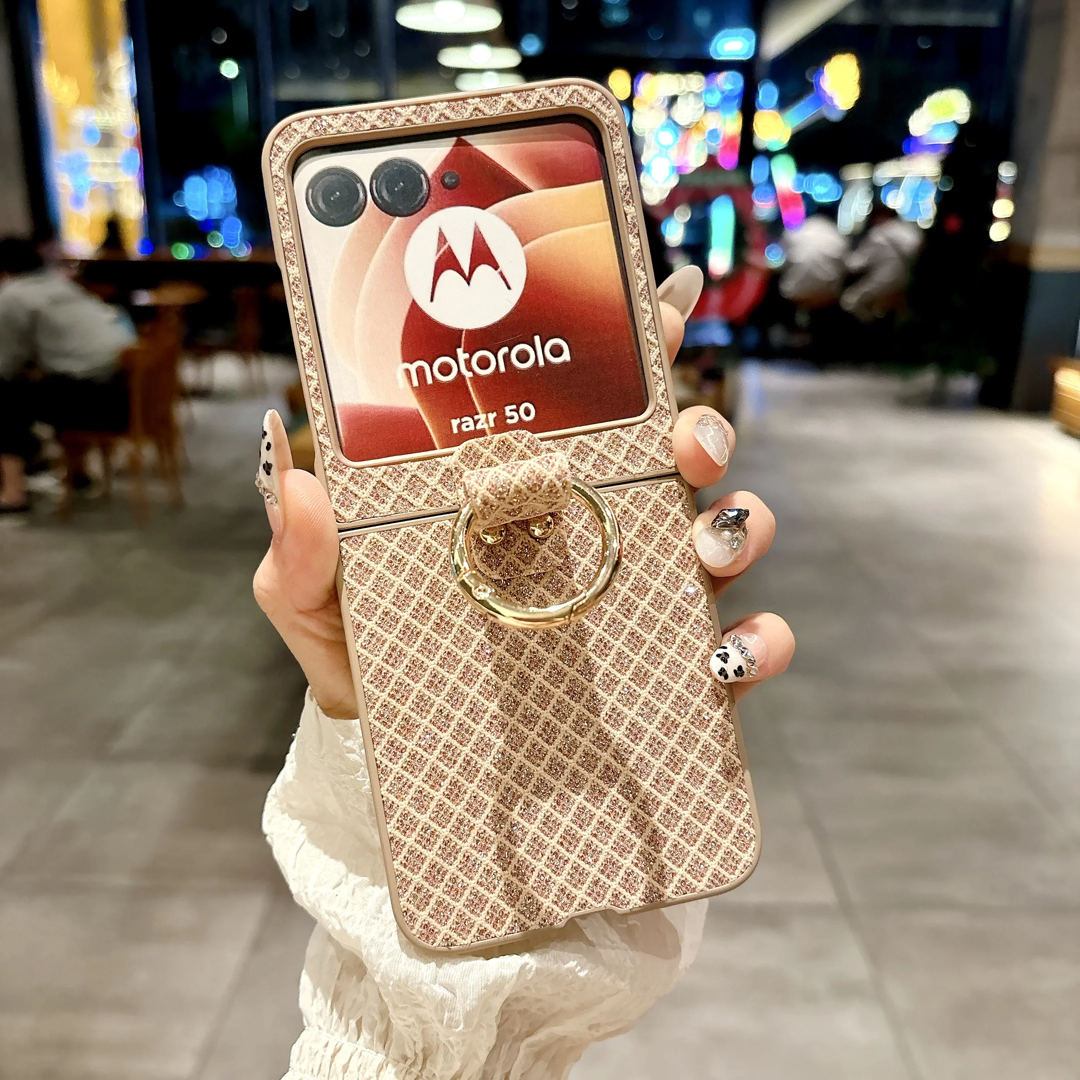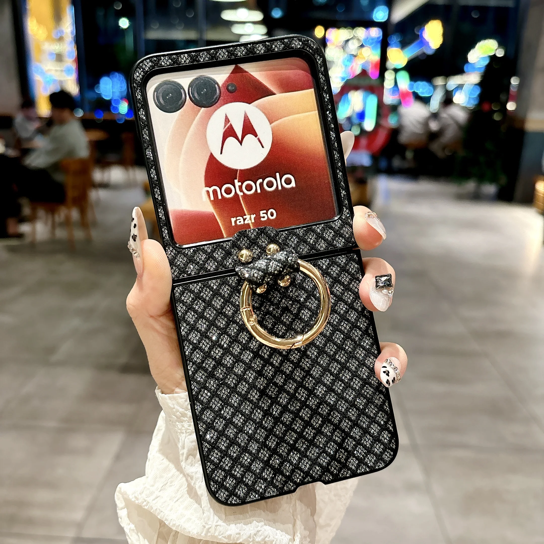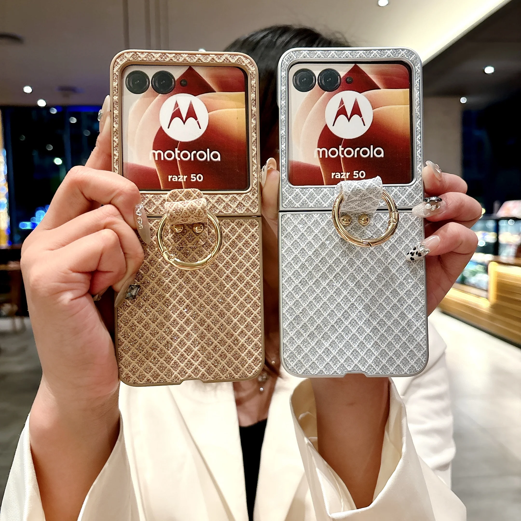 Luxury Glitter Metal Ring Leather Plastic Folding Case For Motorola Razr50 Razr 50 Cover