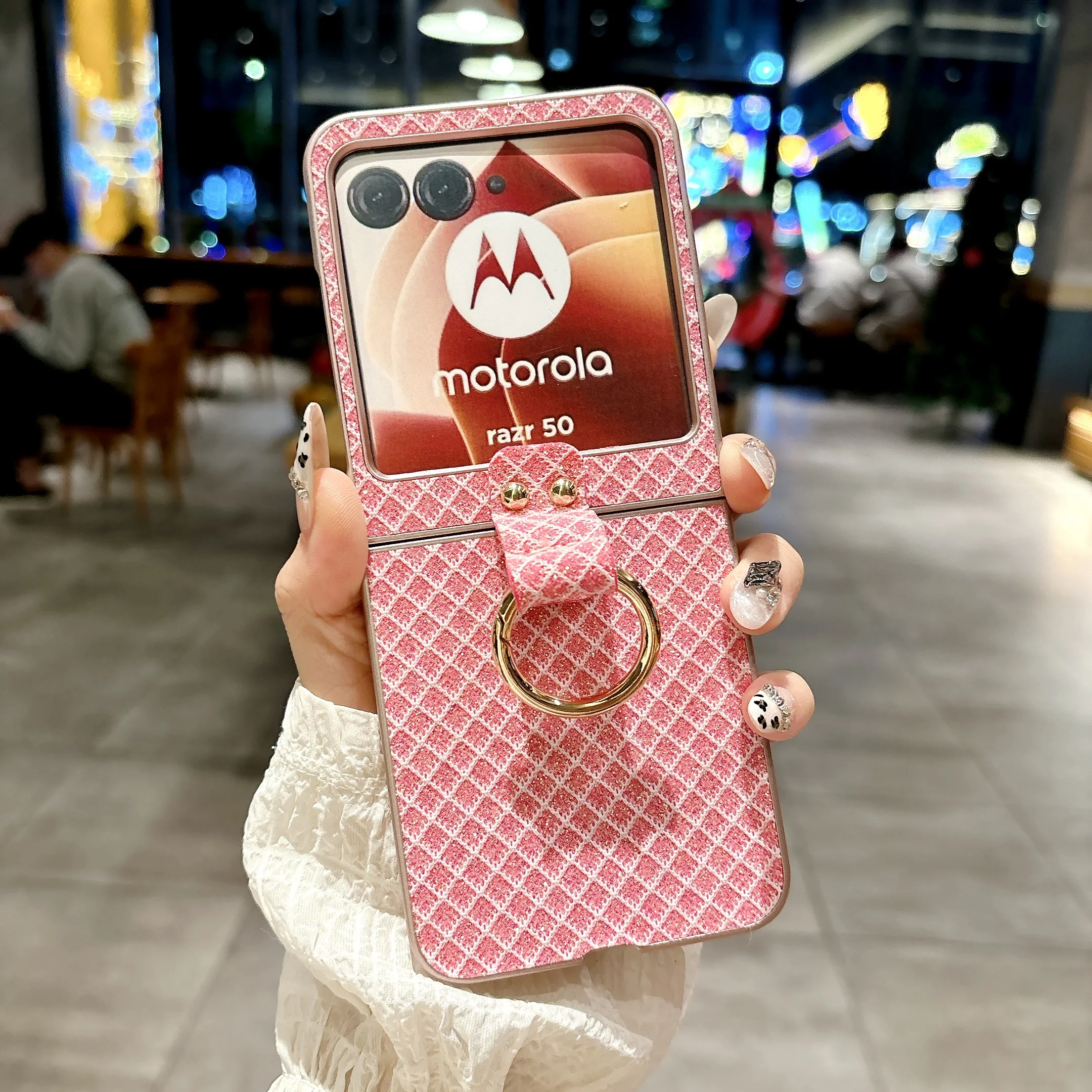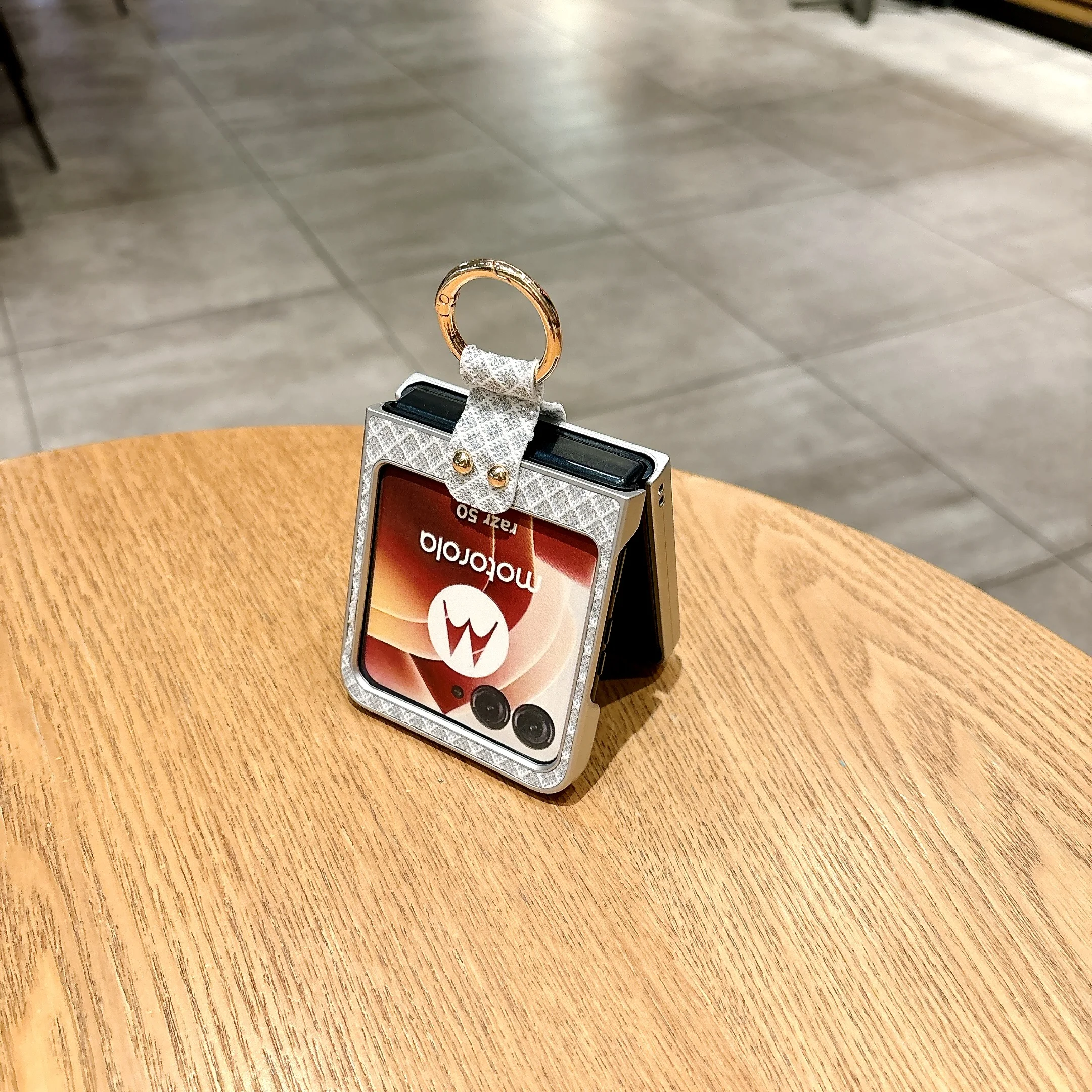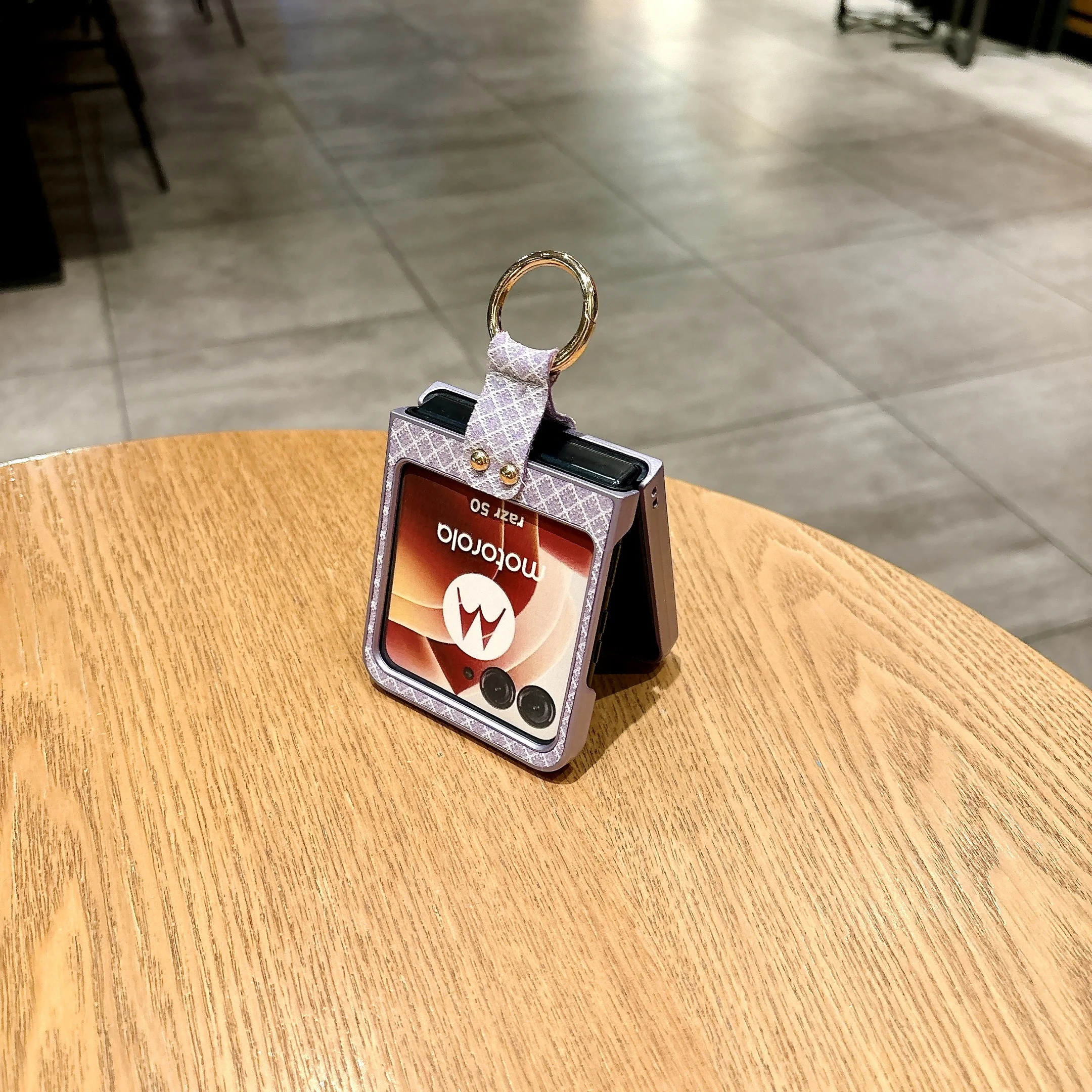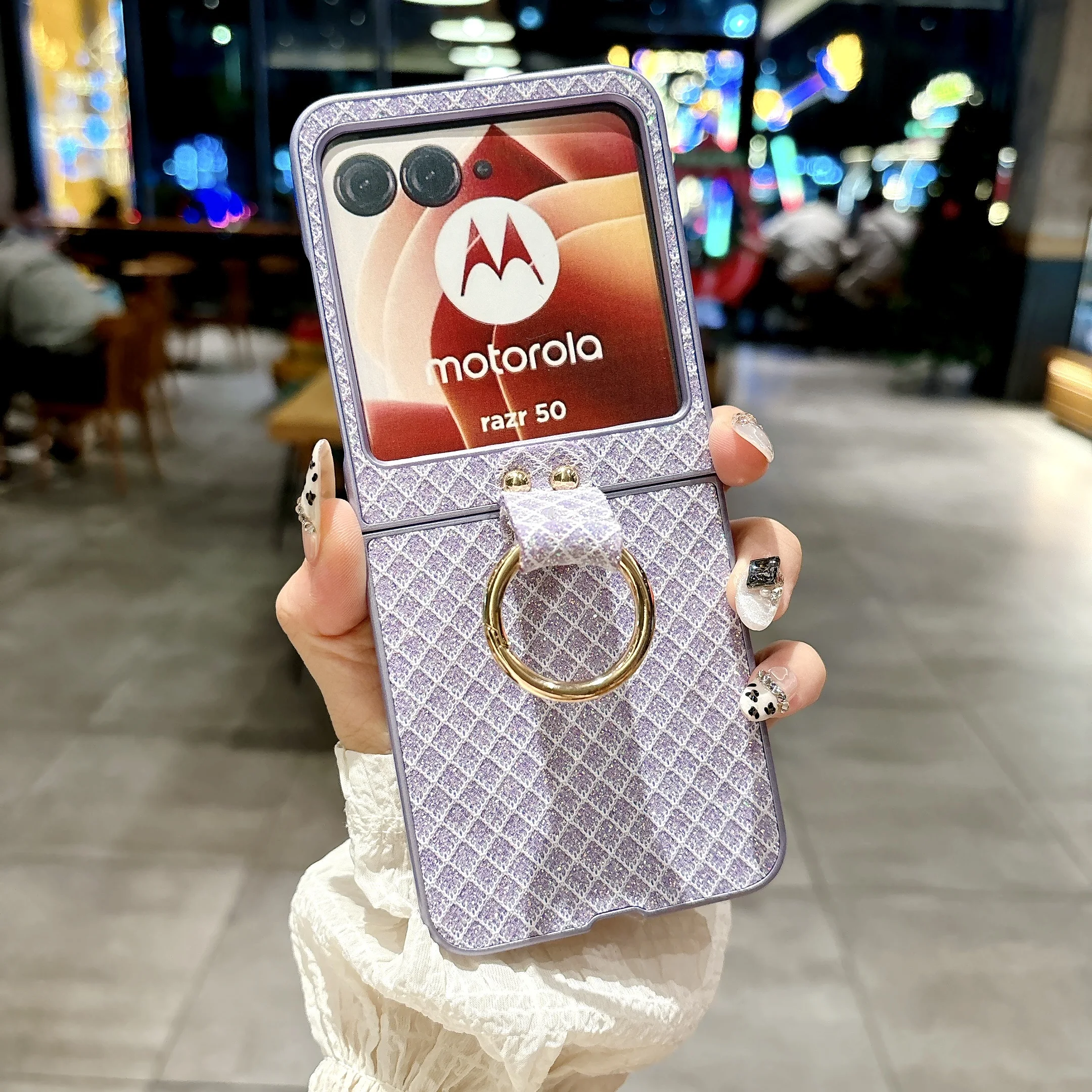 Luxury Glitter Metal Ring Leather Plastic Folding Case For Motorola Razr50 Razr 50 Cover