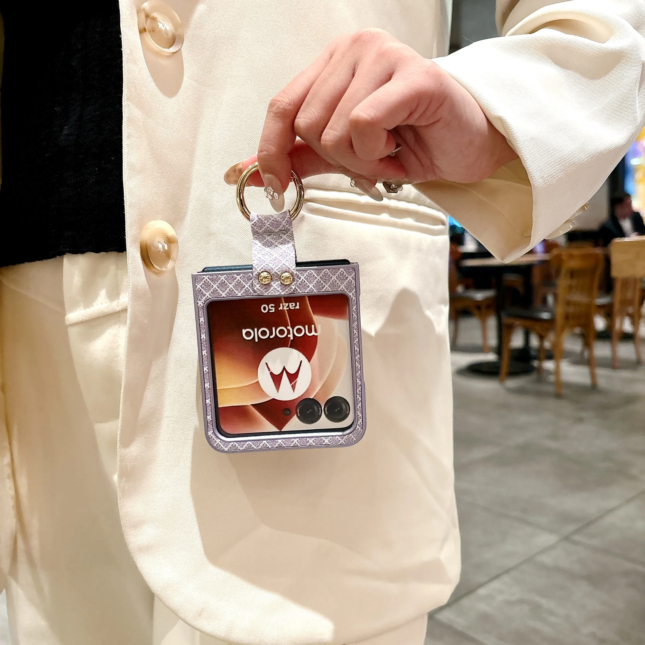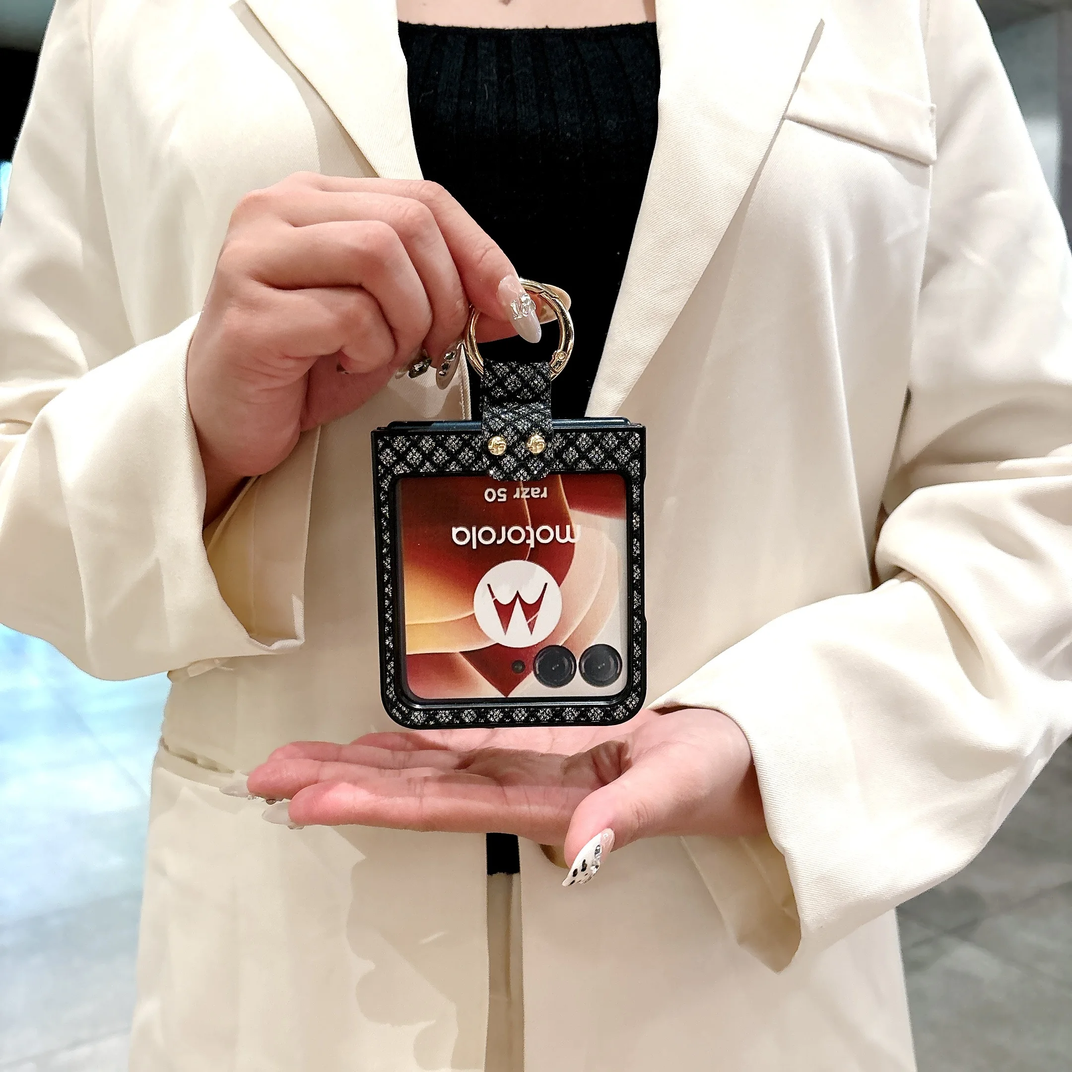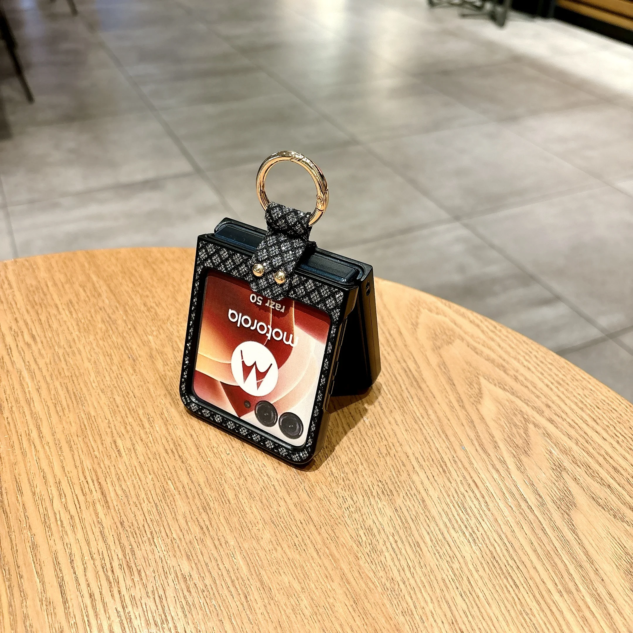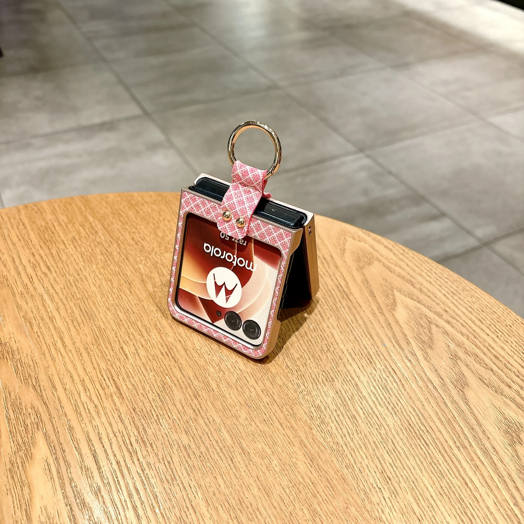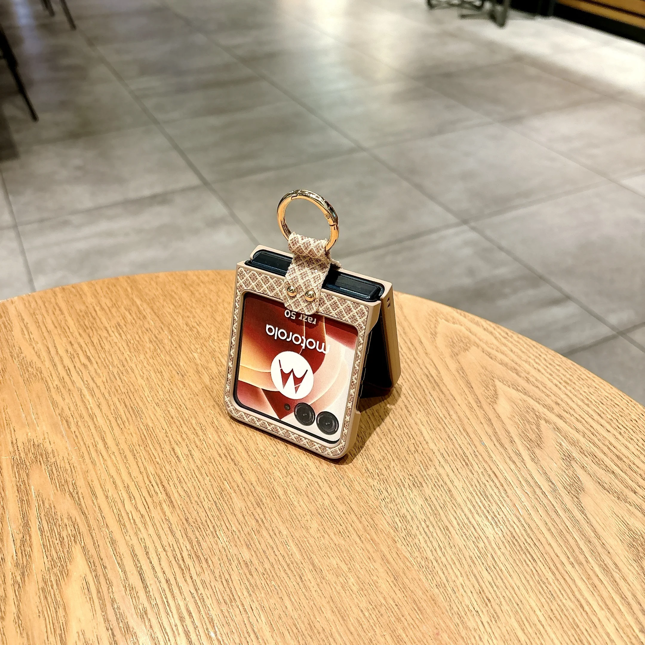 Luxury Glitter Metal Ring Leather Plastic Folding Case For Motorola Razr50 Razr 50 Cover