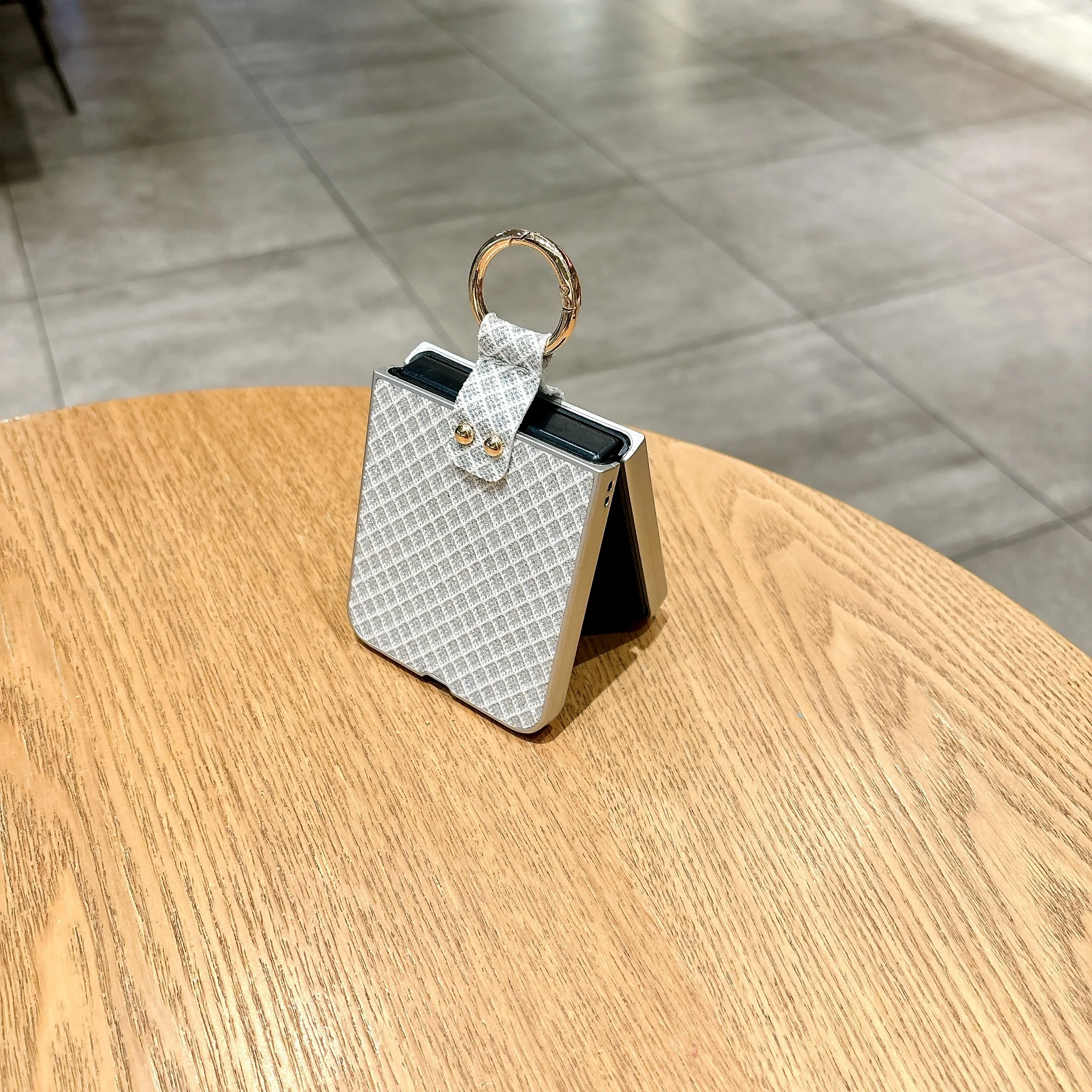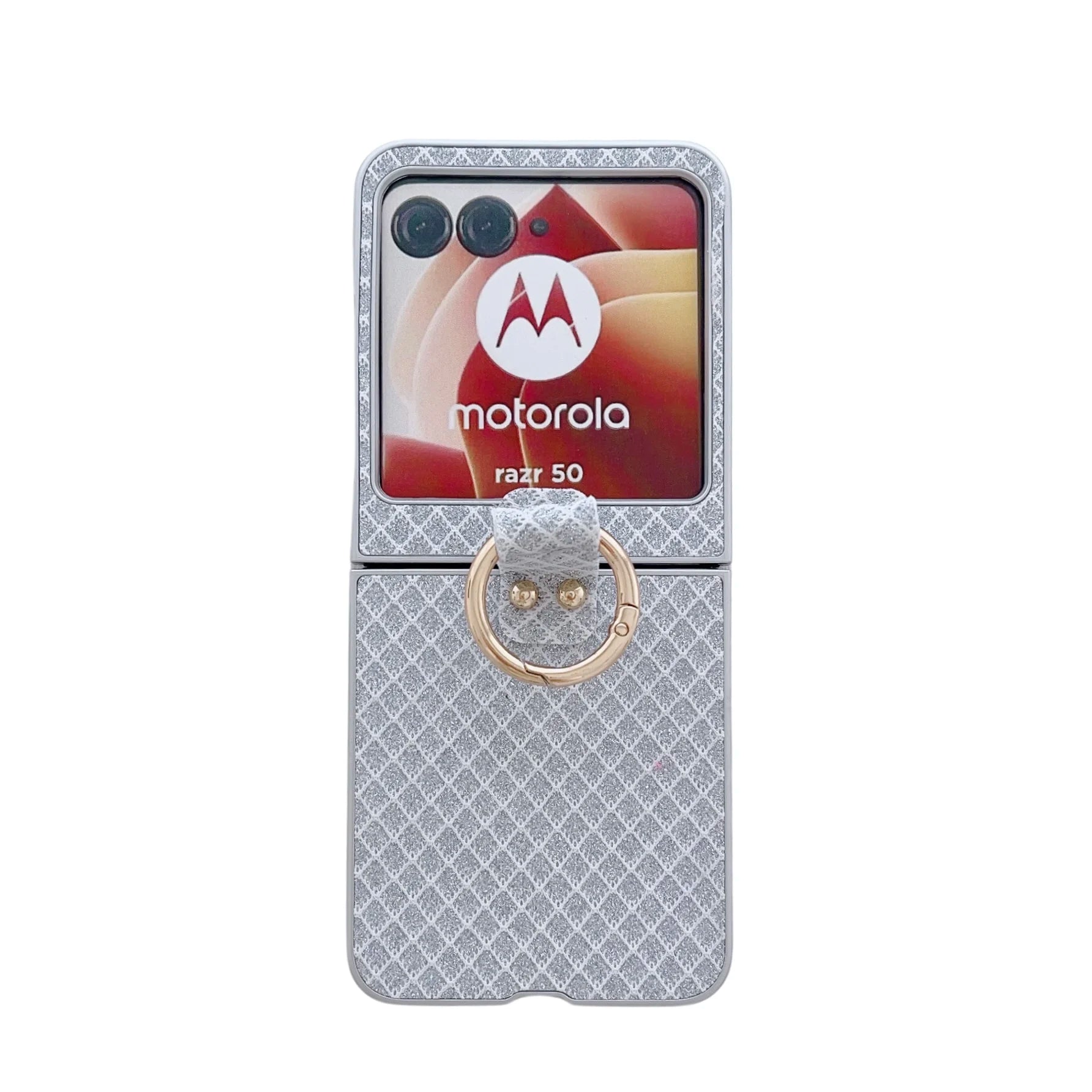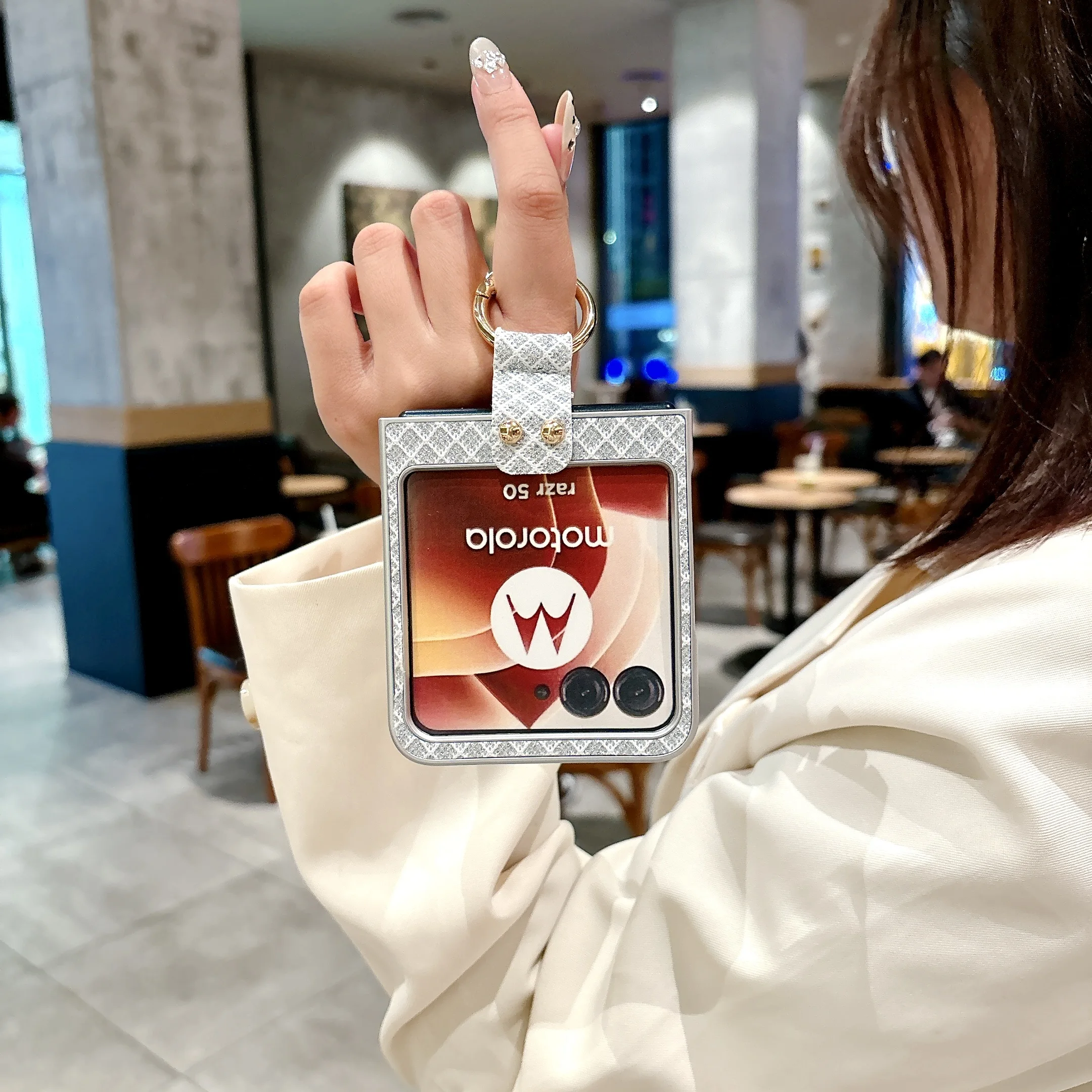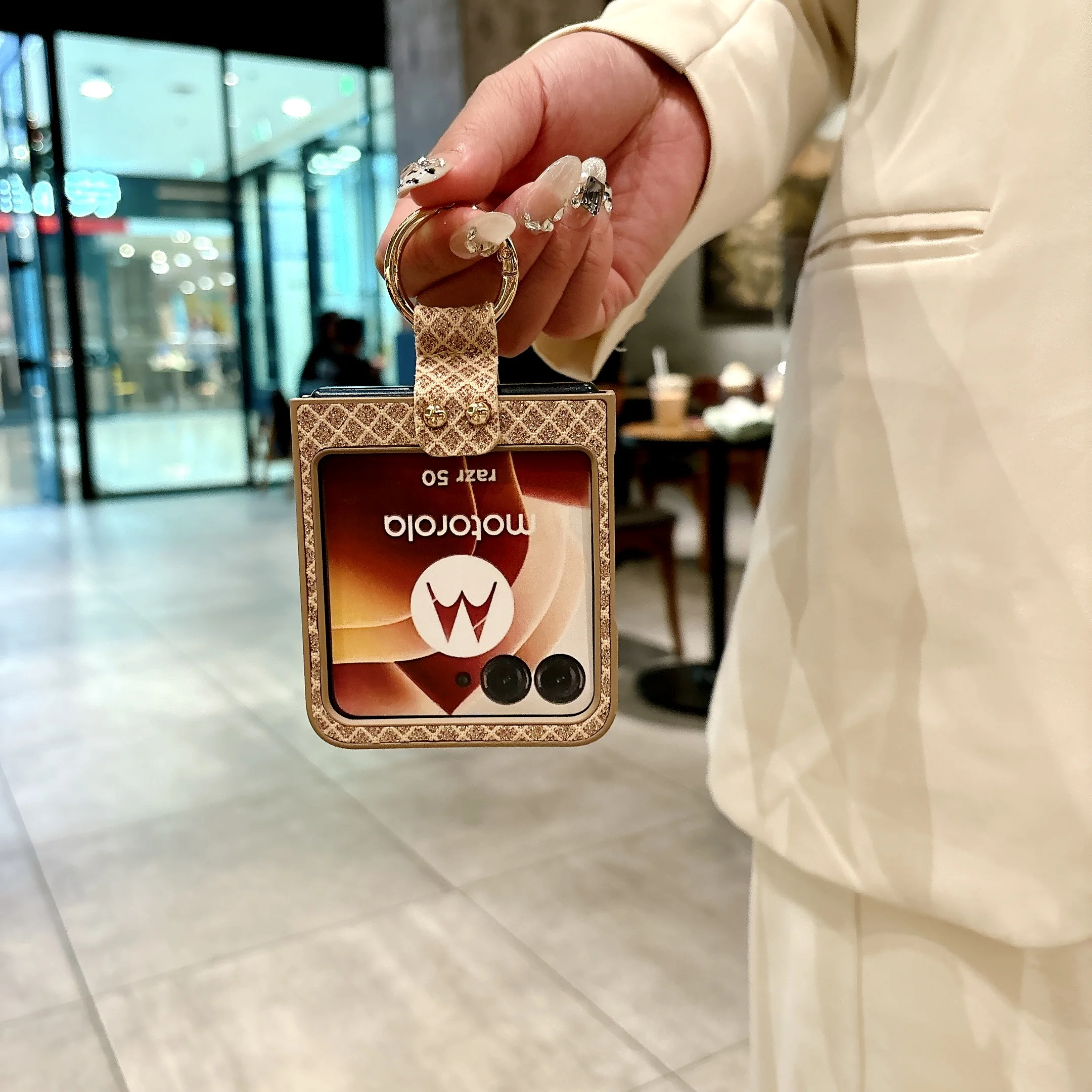 Luxury Glitter Metal Ring Leather Plastic Folding Case For Motorola Razr50 Razr 50 Cover