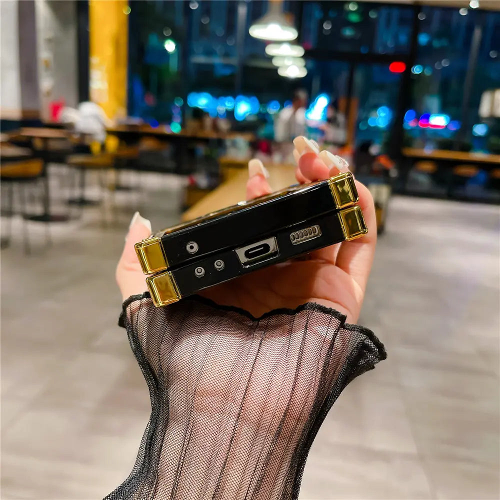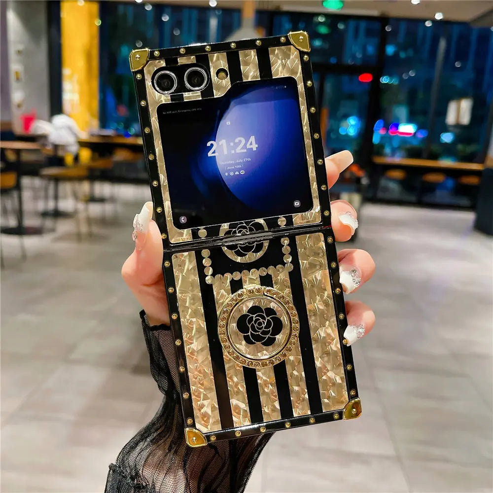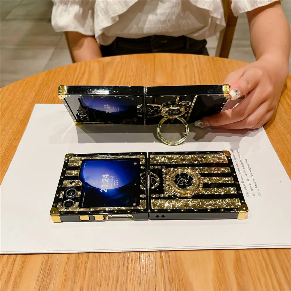 Luxury Gold Plating Flower Case For Samsung Galaxy Z Flip 6 Ring Holder Bracket Cover For Galaxy Z Flip 6