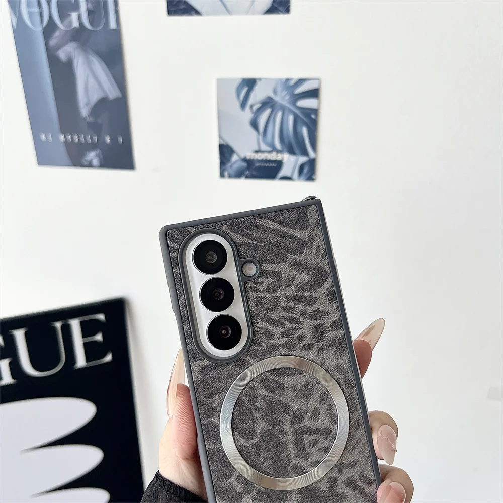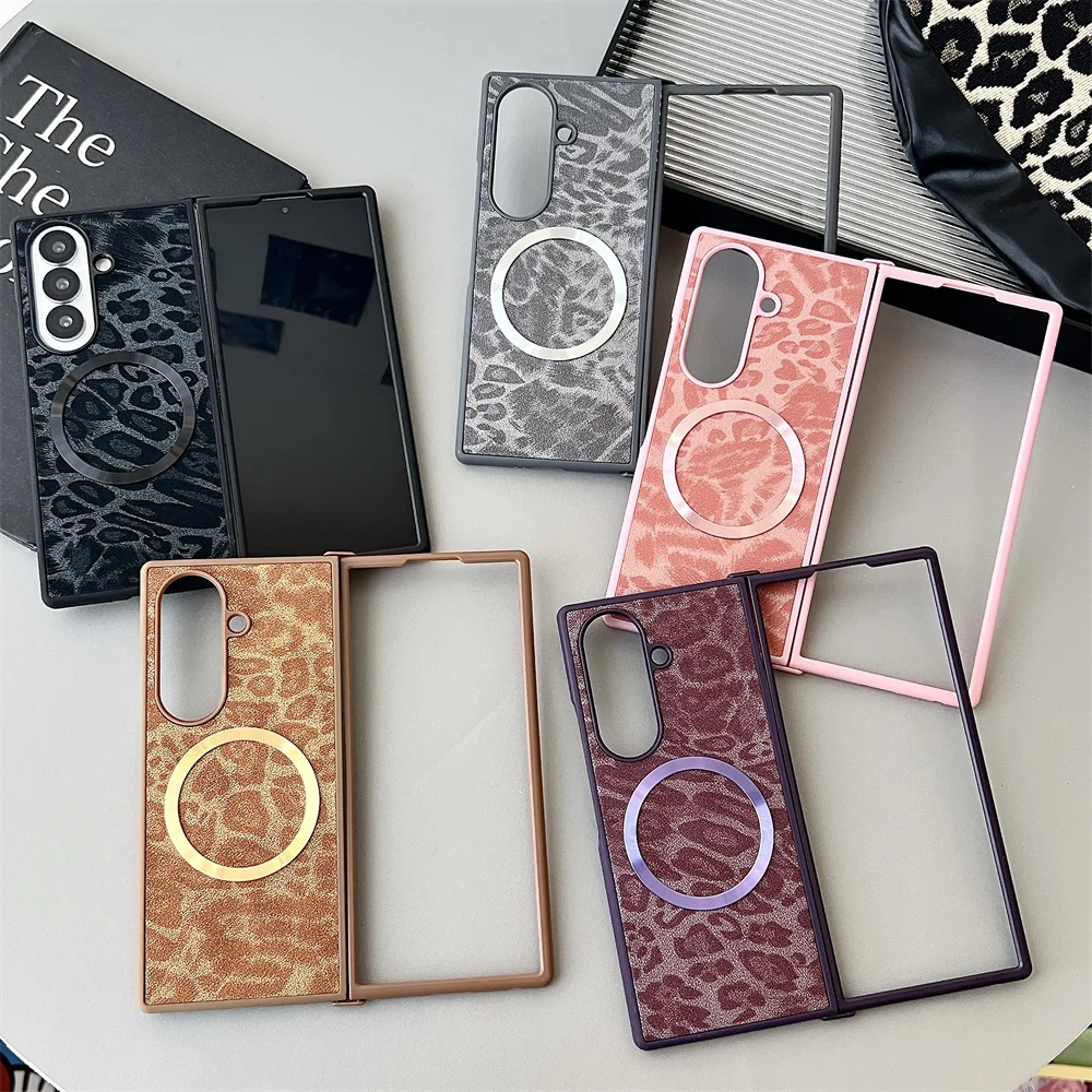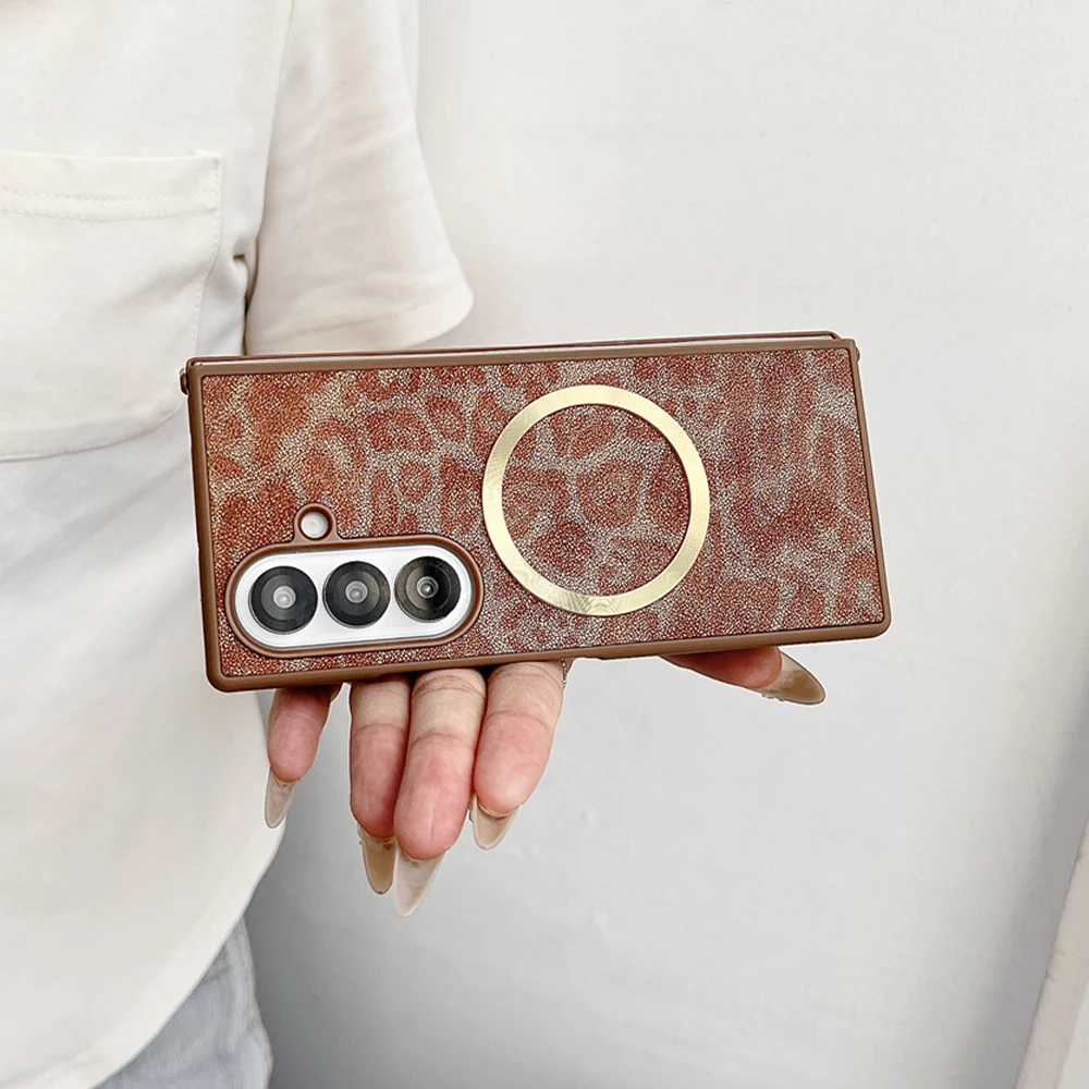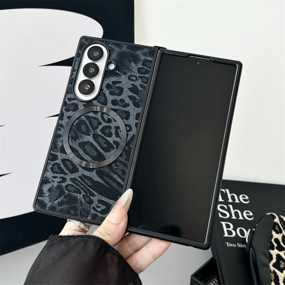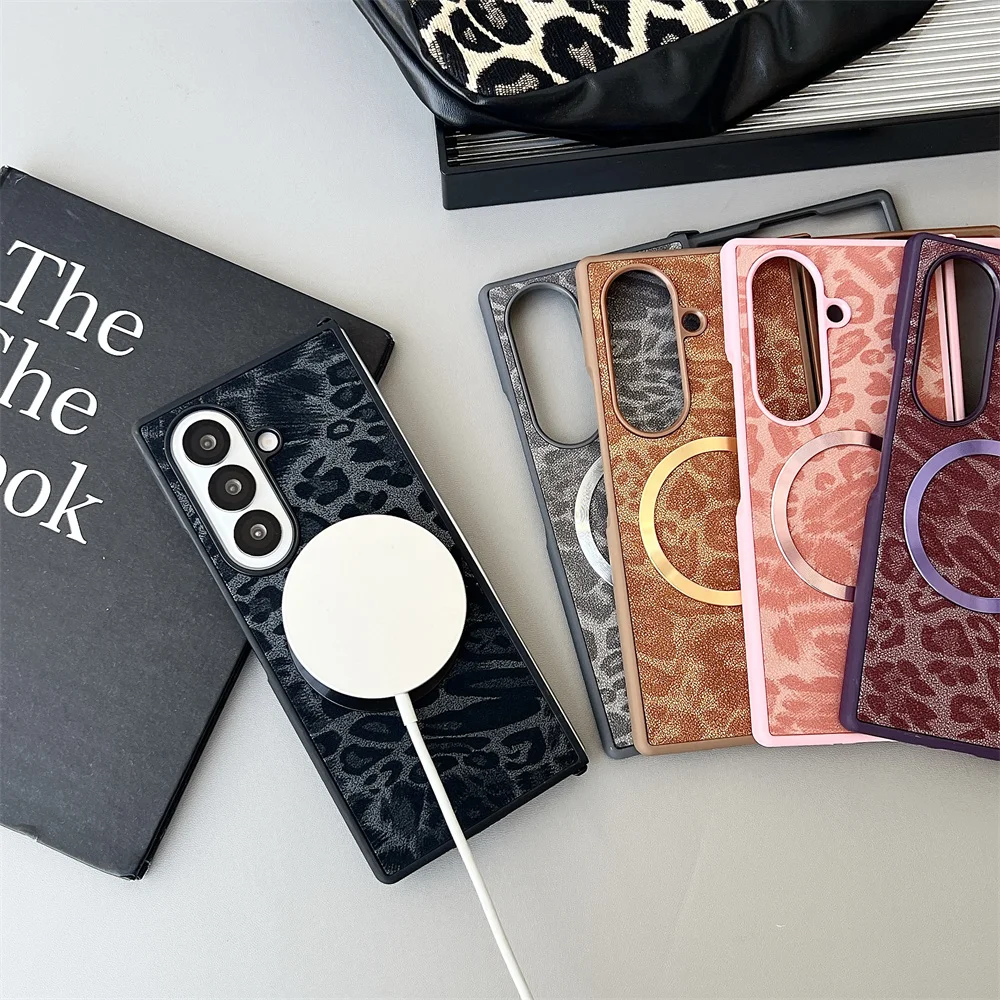 Luxury Gradient Leopard Pattern For Magsafe Magnetic Phone Case for Samsung Z Fold 7 6 5 4 3 Wireless Charging Protective Cover