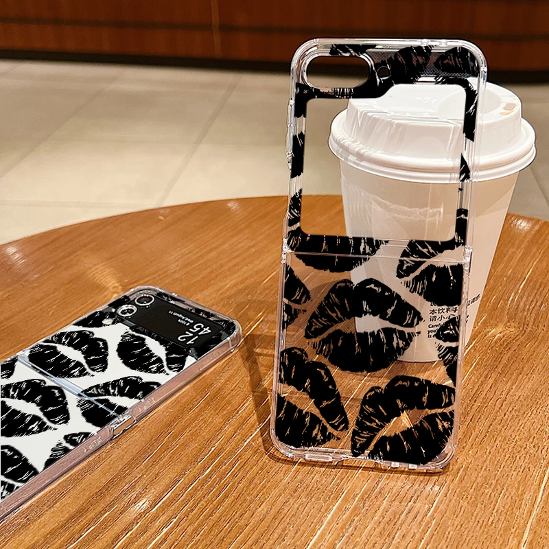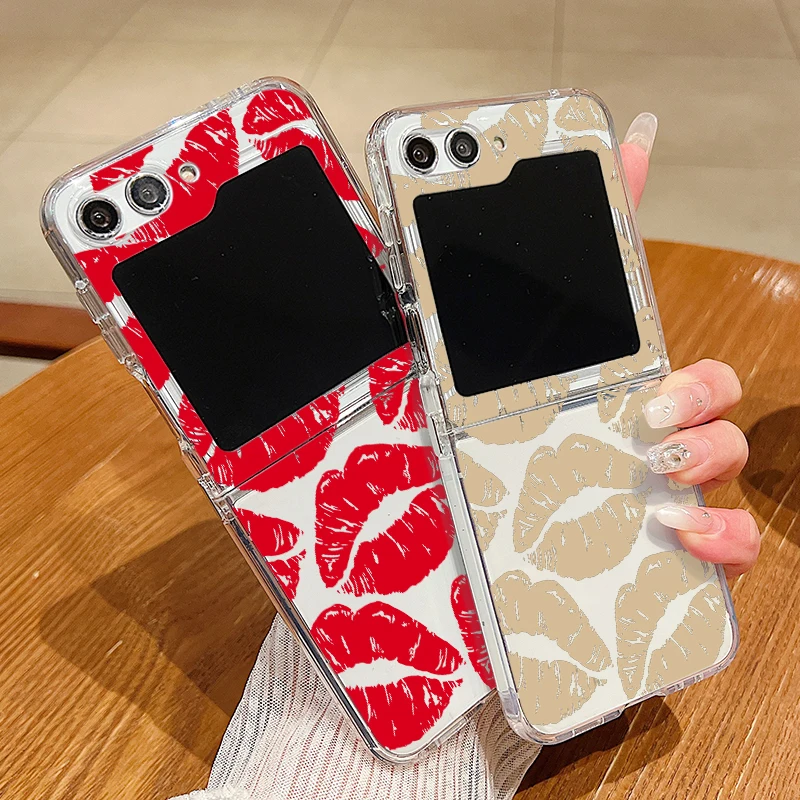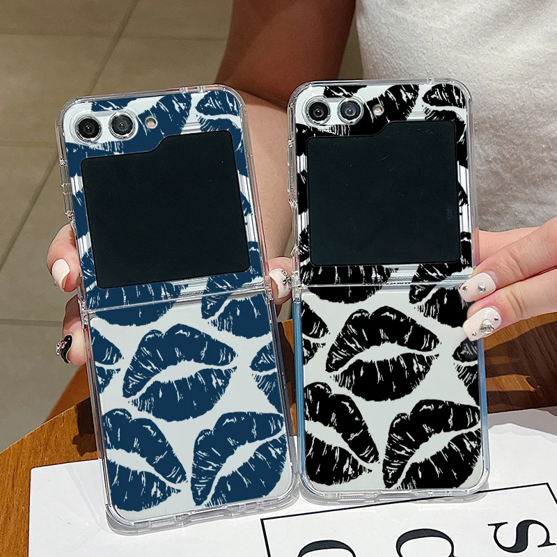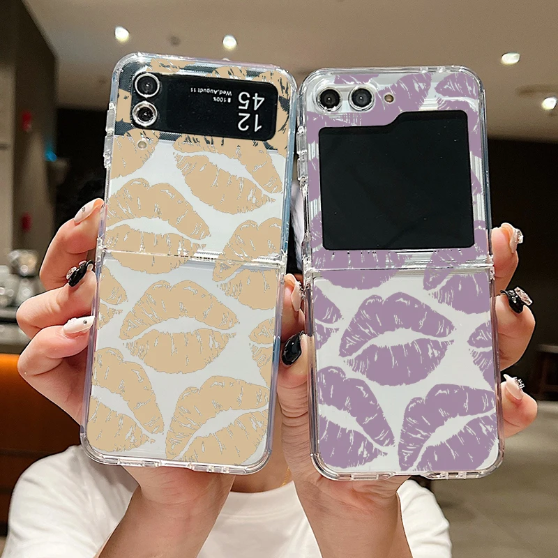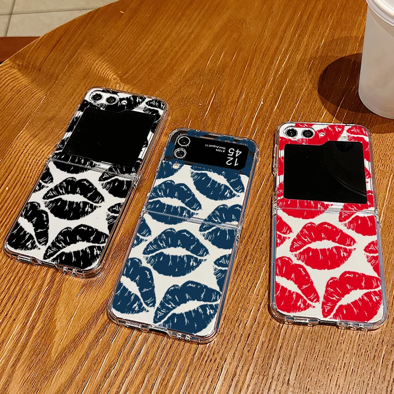Luxury Kiss Lips Phone Case For Samsung Galaxy Z Flip 6 5 4 3 Metal Buckle Clear TPU Folding Cover For Samsung Z Flip6 Flip5