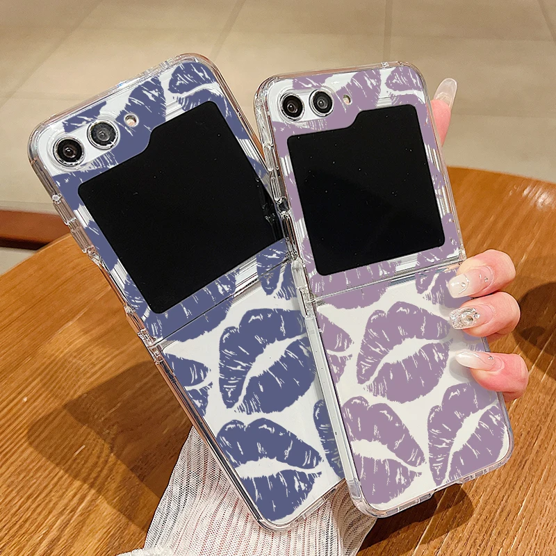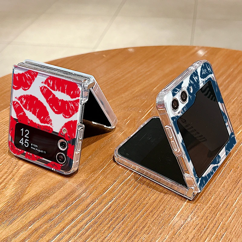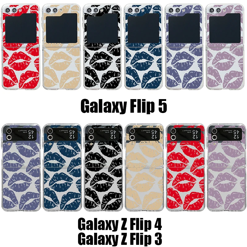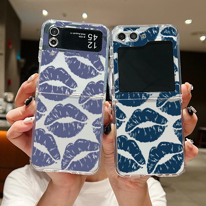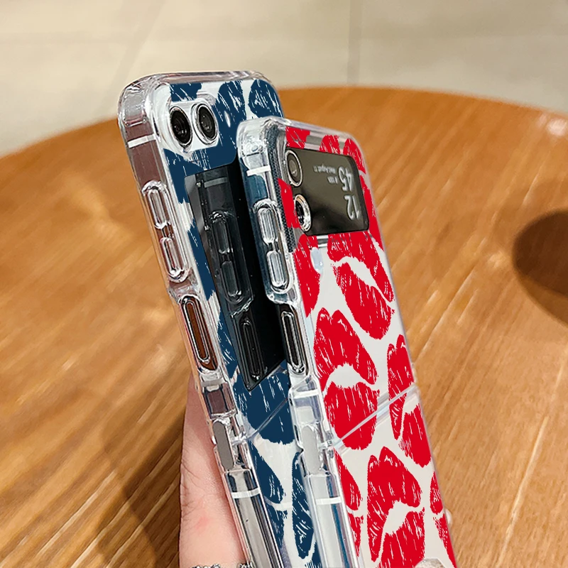 Luxury Kiss Lips Phone Case For Samsung Galaxy Z Flip 6 5 4 3 Metal Buckle Clear TPU Folding Cover For Samsung Z Flip6 Flip5