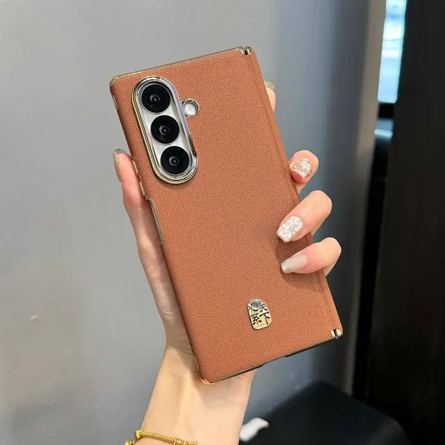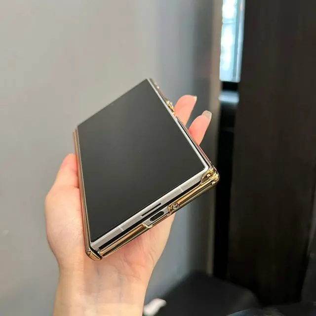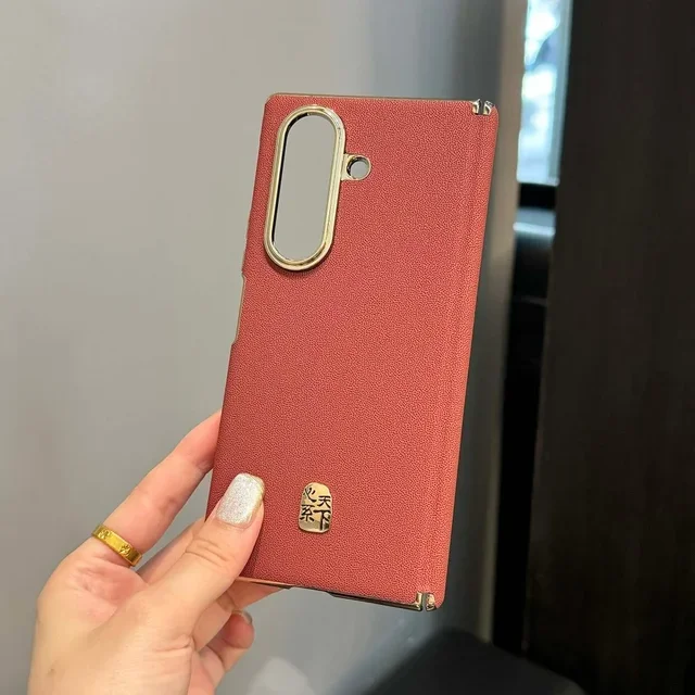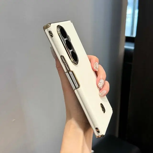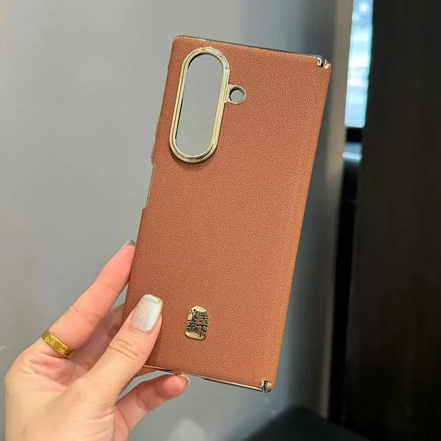 Luxury Leather Glossy Frame Case For Samsung Galaxy Z Fold7 Fold 7 5G Dual Axis Double Hinge Shockproof Armor Back Cover