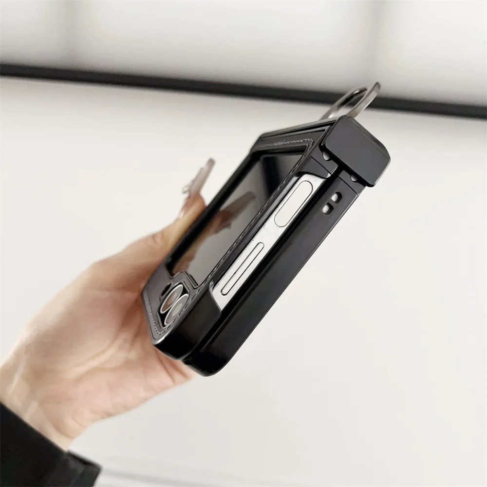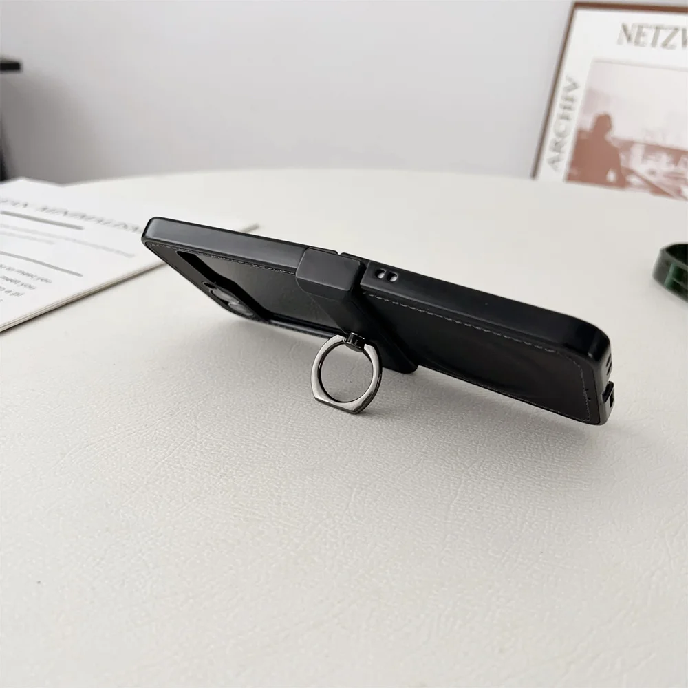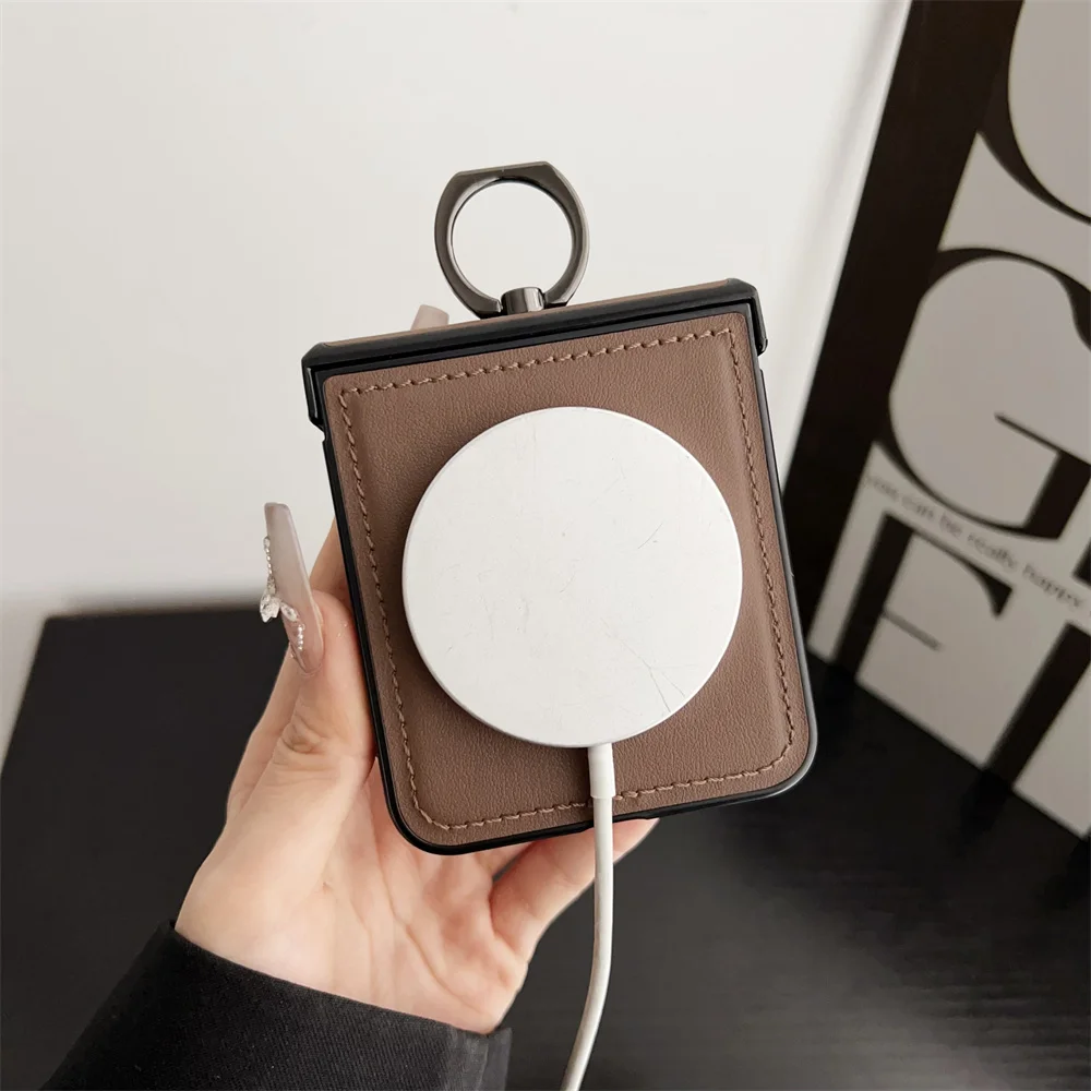 Luxury Leather Ring Holder for Magsafe Case for Samsung Galaxy Z Flip 6 5 4 3 7 flip6 Flip5 Magnetic Bracket Shockproof Cover