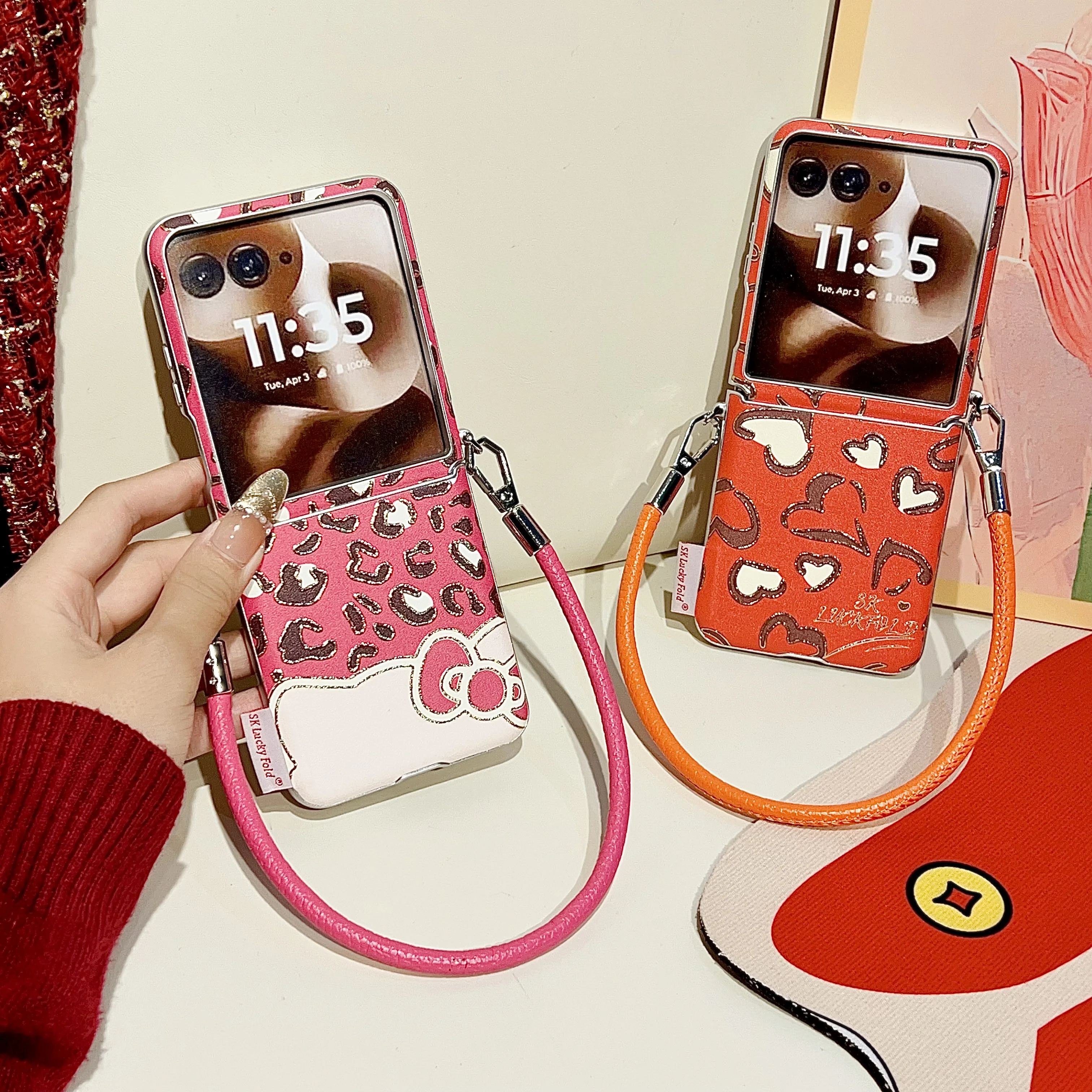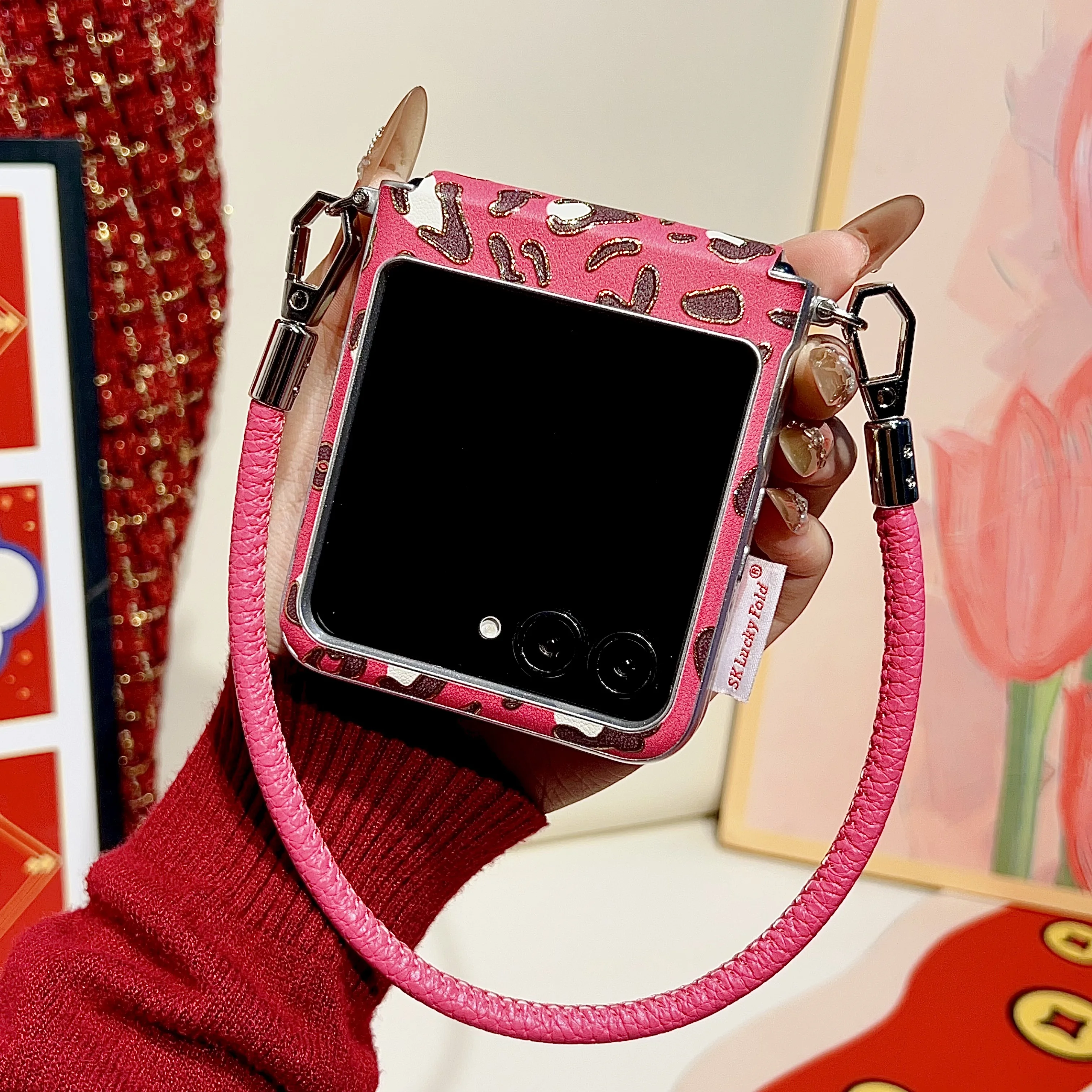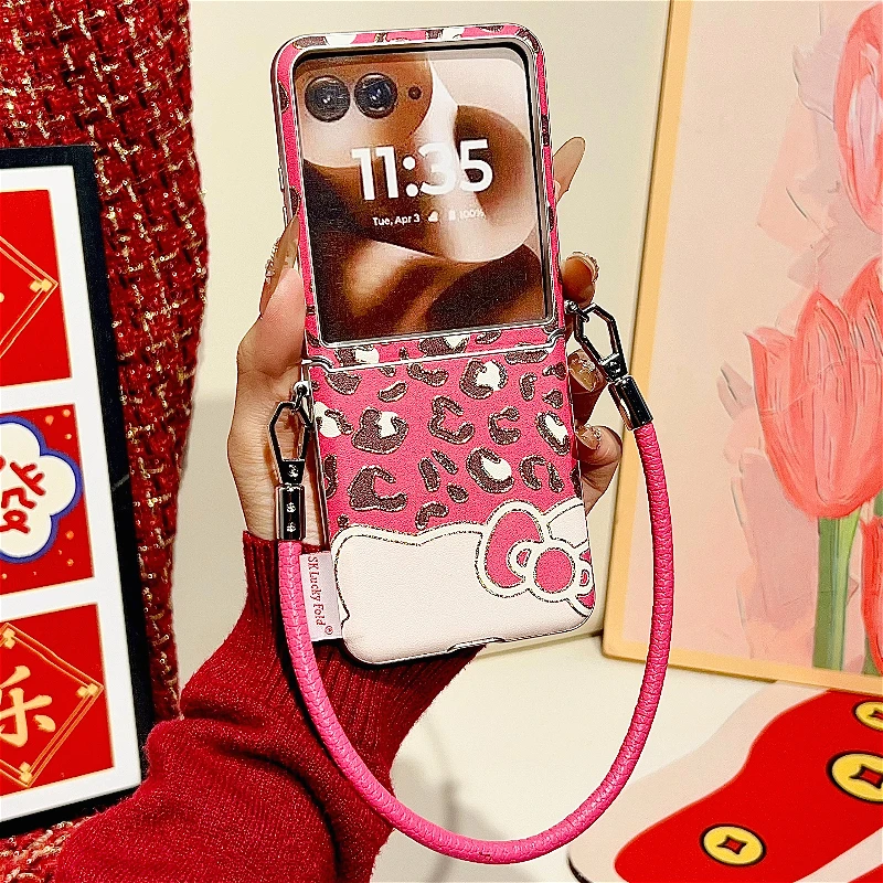 Luxury Leopard Print Bow Phone Case For Motorola Razr 60 50 Ultra 50Ultra Side Buckle with Lanyard Protection Shockproof Cover