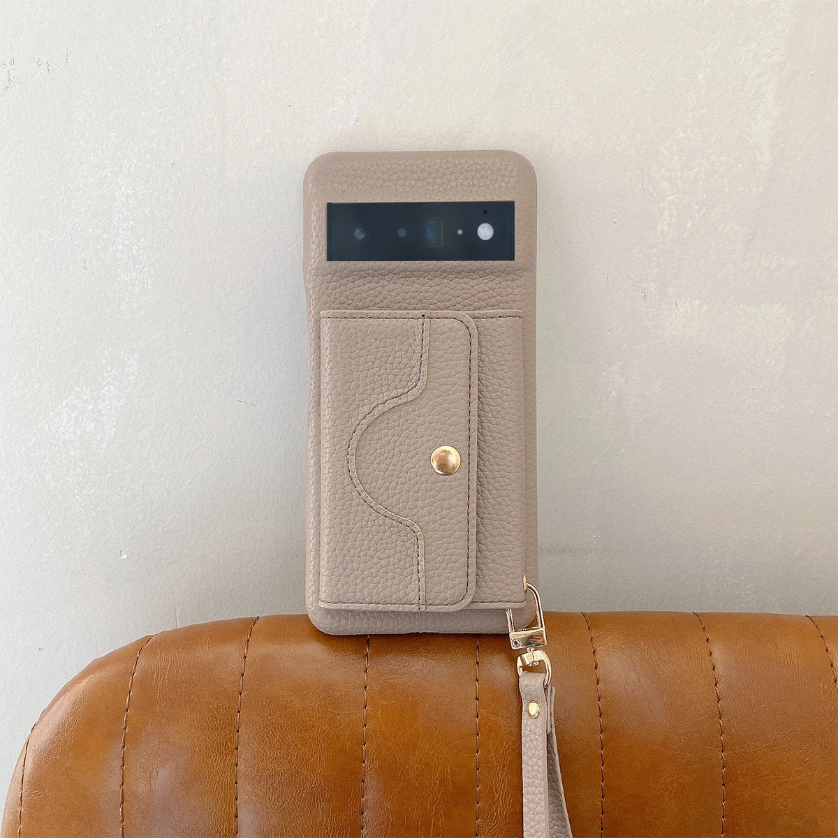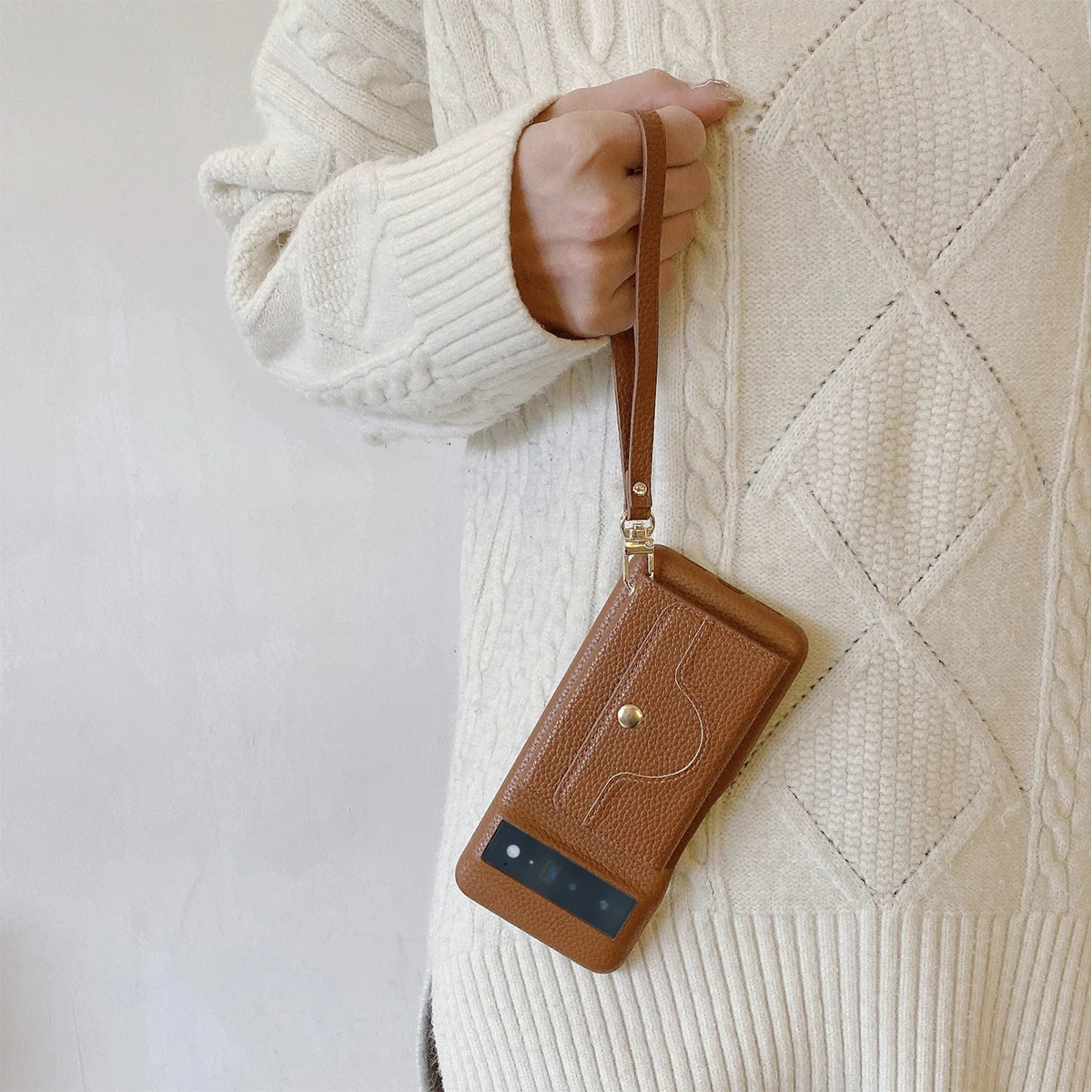 Luxury Litchi Peel Pattern PU Leather Case For Google Pixel 8 7 6 Pro 4 XL Small Mirror Card Holder Lanyard Wallet Cover