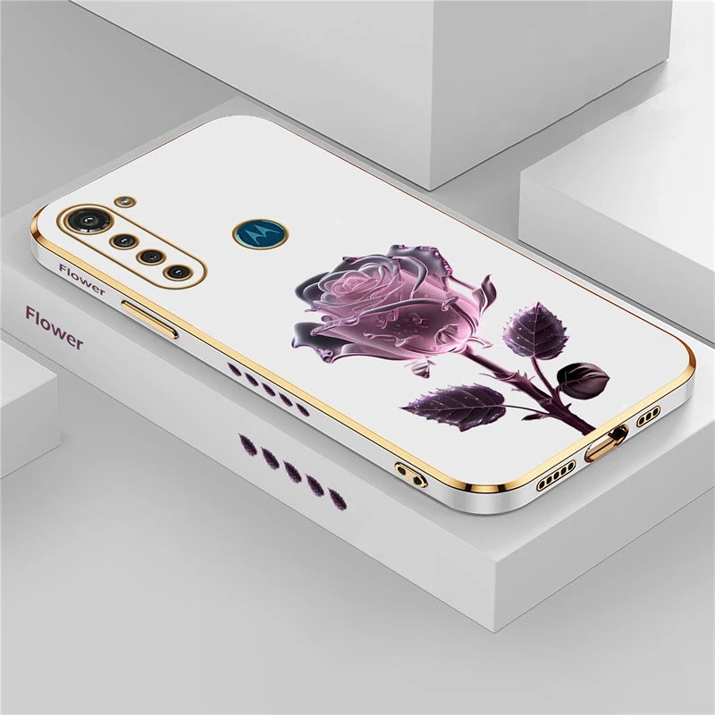 Luxury Plating Flower Case For Moto G8 Power Lite G9 Play E7 Plus Edge20 G30 G52 G22 G60 G40 Fusion Silicone Shockproof Cover
