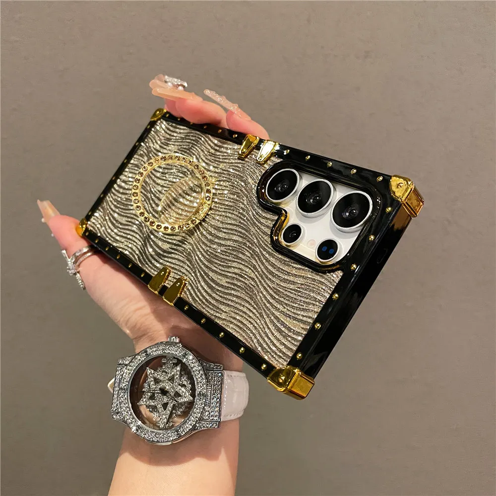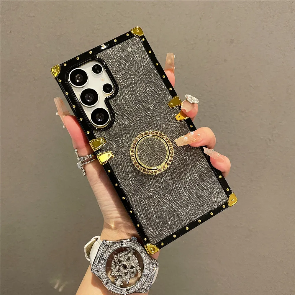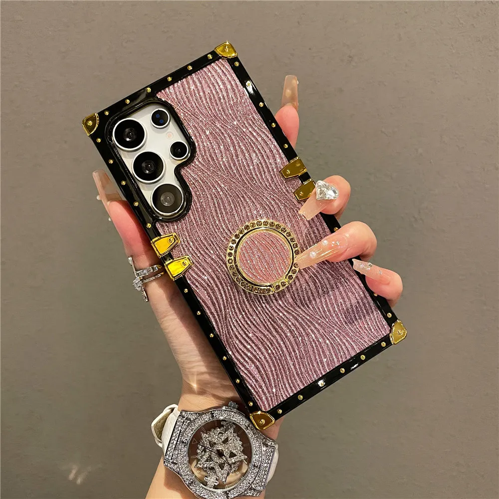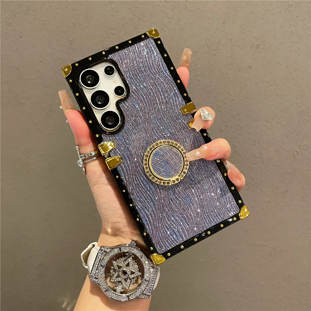 Luxury Ring Stand Case For Samsung Galaxy S25 Edge S24 S23 Ultra S24FE S25Plus Bracket Bling Cover Fundas