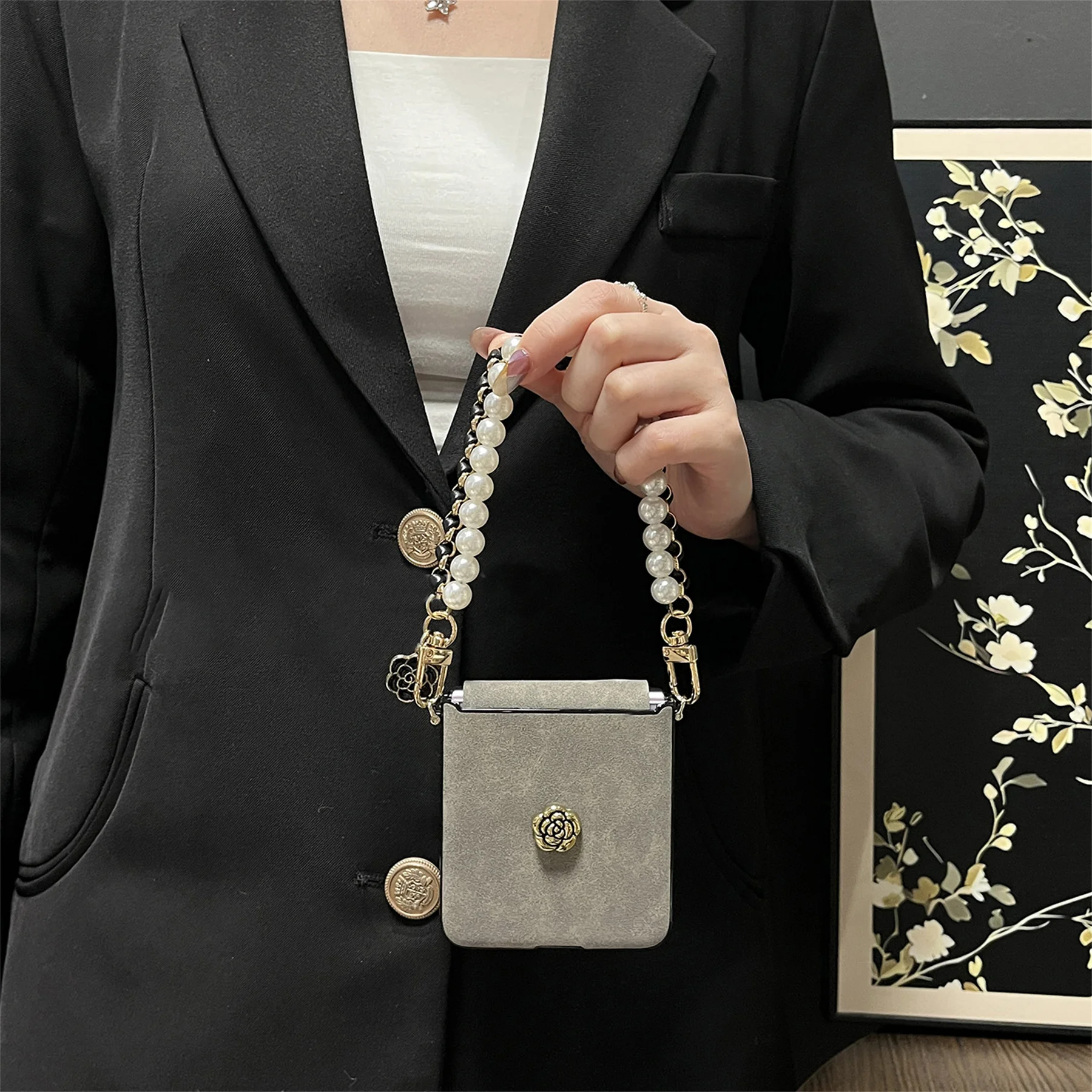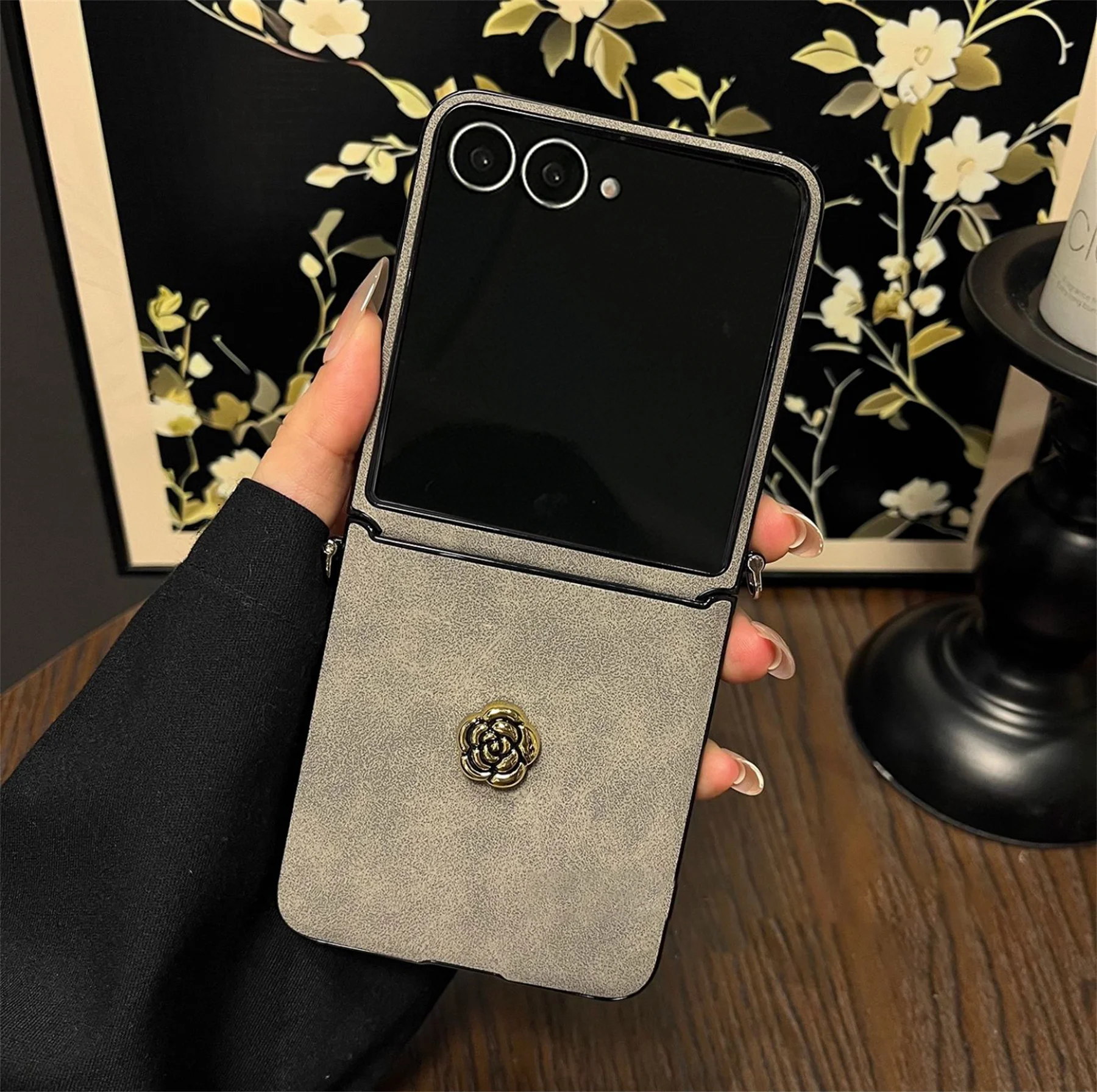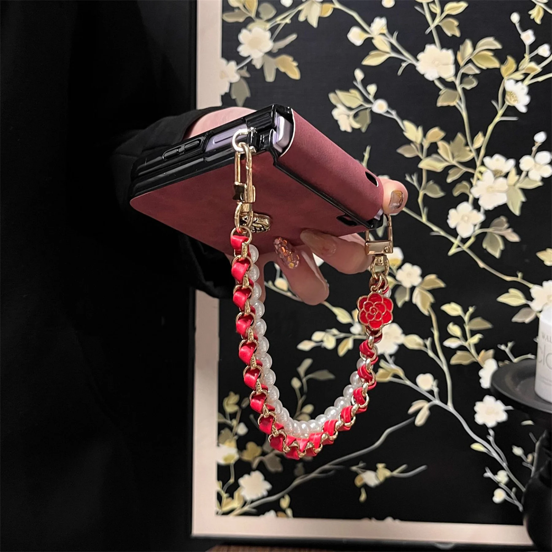 Luxury Sheepskin Camellia Phone Case with Leather Pearl Chain for Motorola Razr 60 Ultra Razr2025 Razr 50Ultra Cover