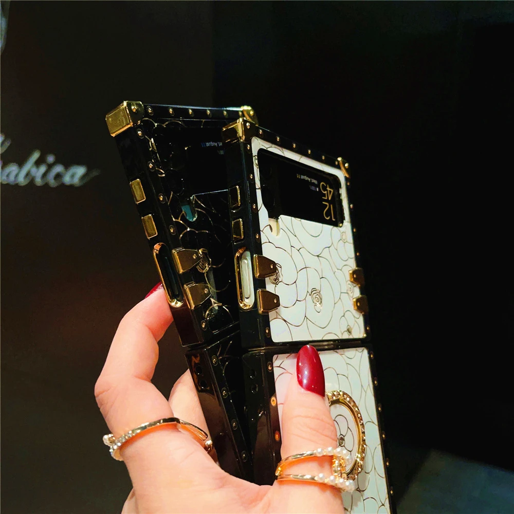 Luxury Shockproof Cover Retro Glitter Gold Line Rose Flower Phone Case for Samsung Galaxy Z Flip 7 Flip 6 Z Flip 5 Flip 4 Flip 3