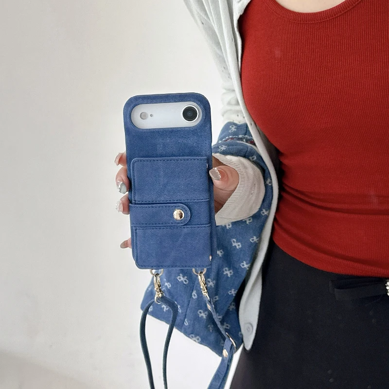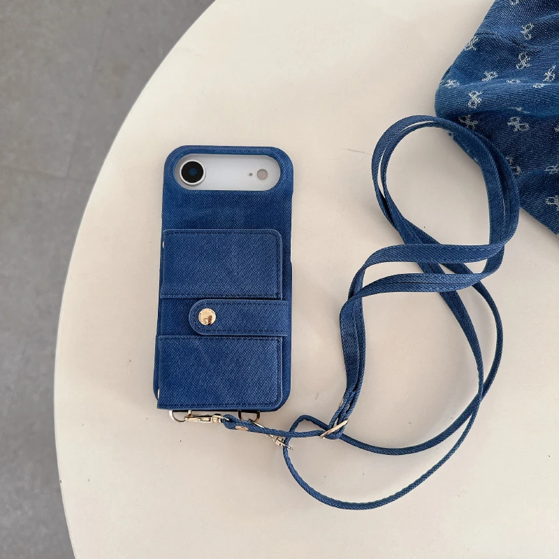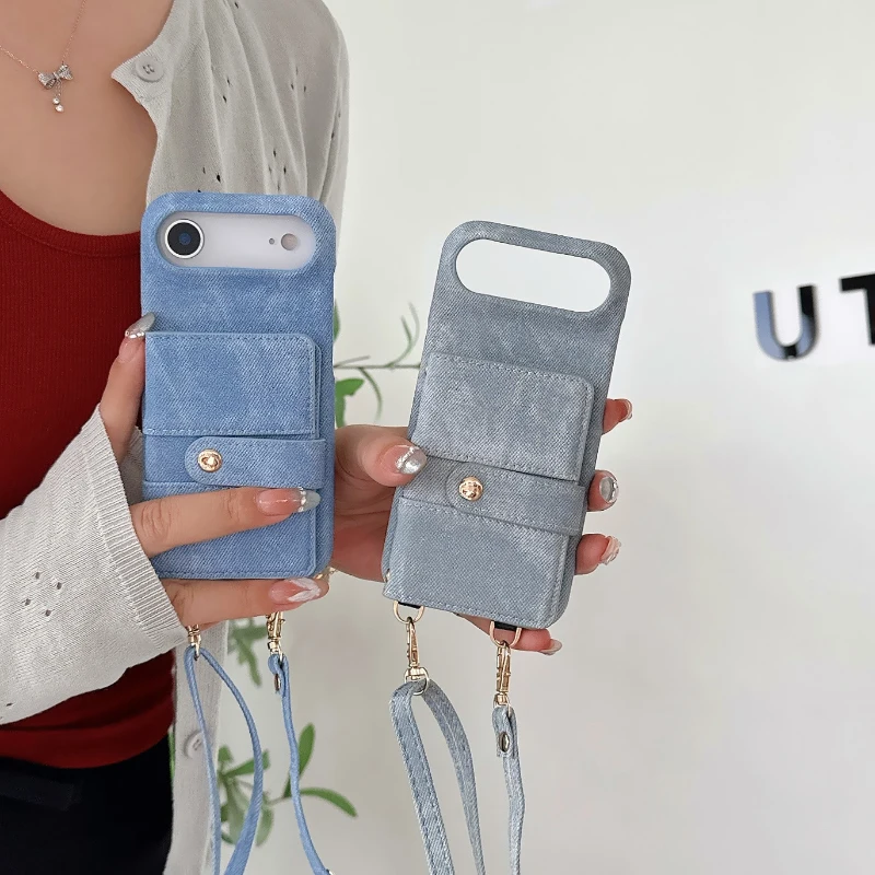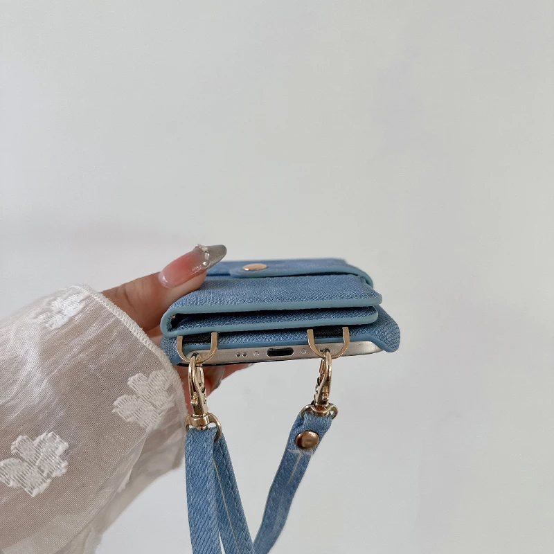 Luxury Solid Color Denim Wallet Card Slot One Buckle Lanyard Phone Case For Google Pixel 10 Pro 9A 8A 7A 7 8 9 Pro XL Back Cover