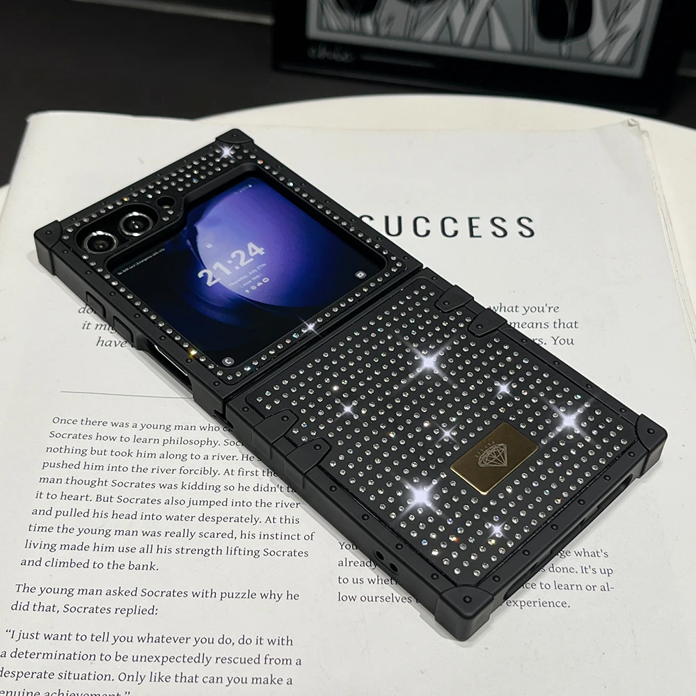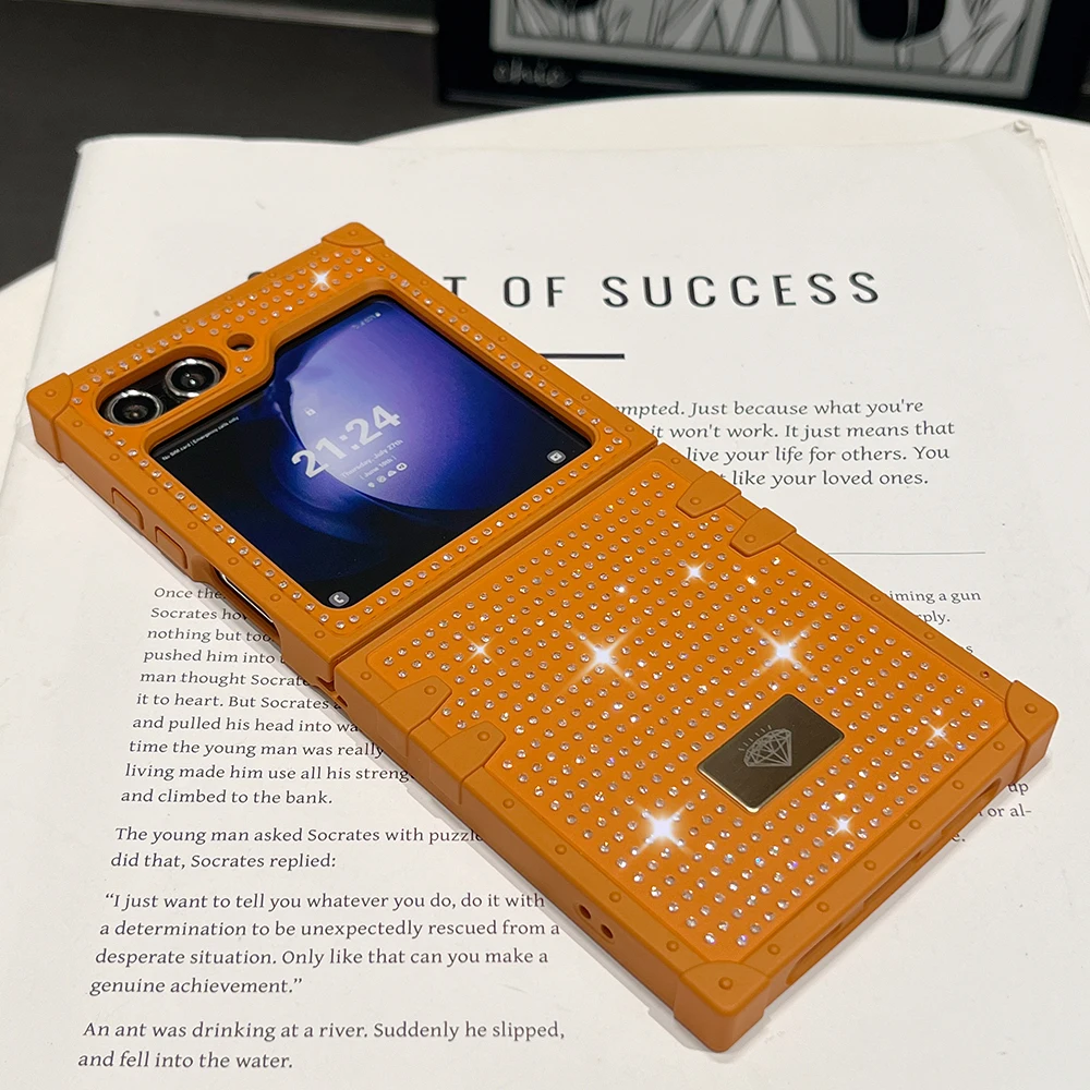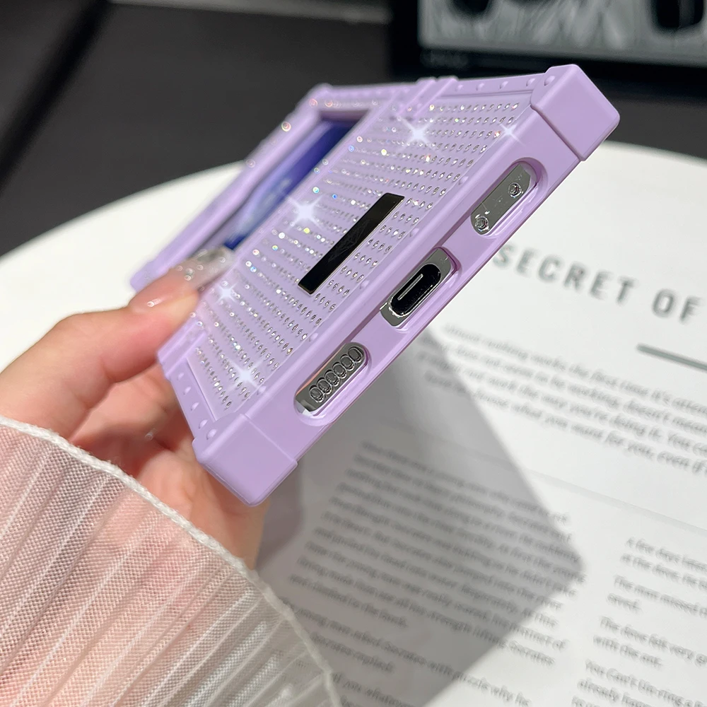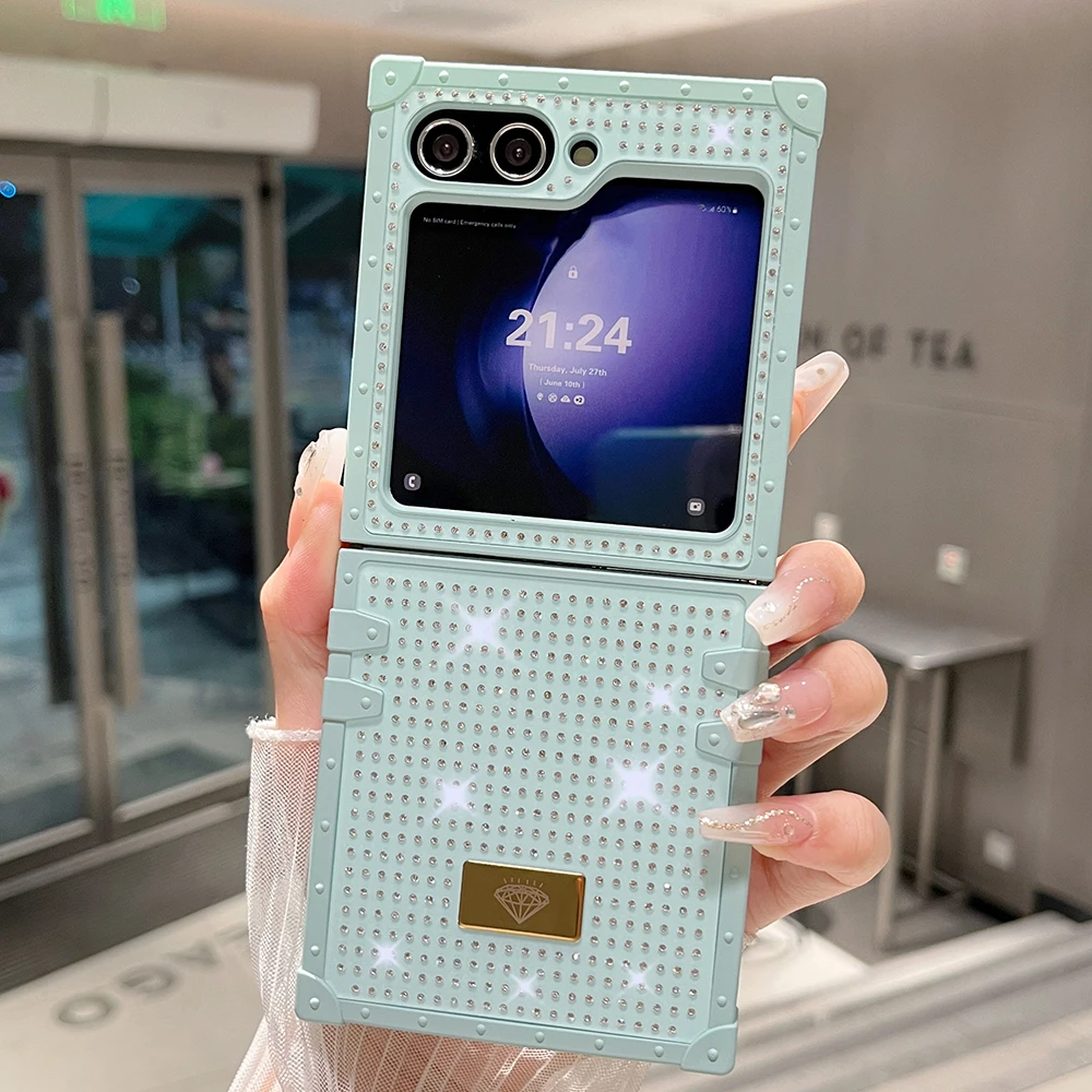 Luxury Sparkling Diamond Folding Phone Case for Samsung Galaxy Z Flip 6 3 5 4 Jewelled Glitter Shock-absorbing Back Hard Cover
