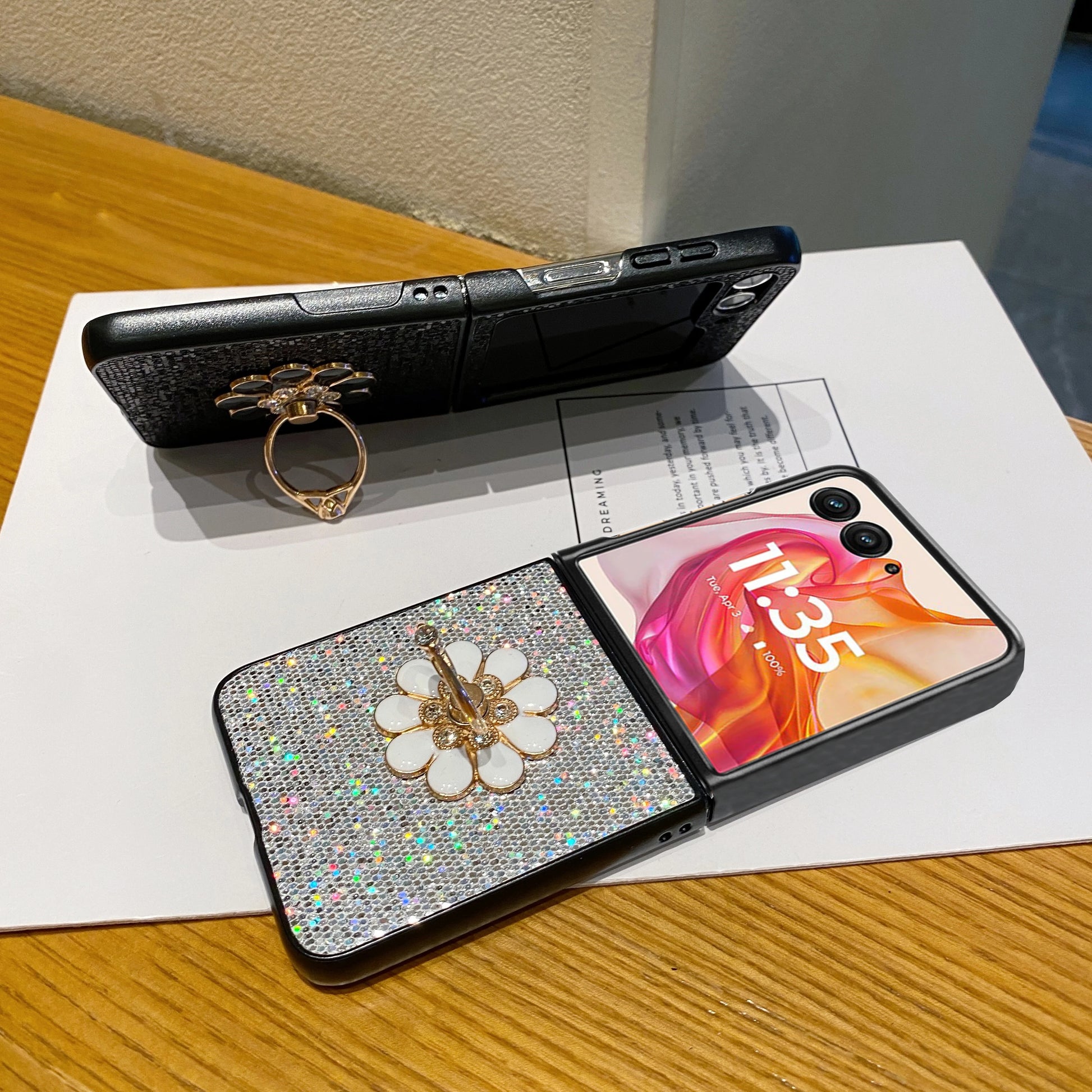 Luxury Sparkling Starlight Sparkling Flower Ring Buckle Phone Case Motorola Razr 50 40 60 Ultra +2025 + 2024 Glitter Stand Cover