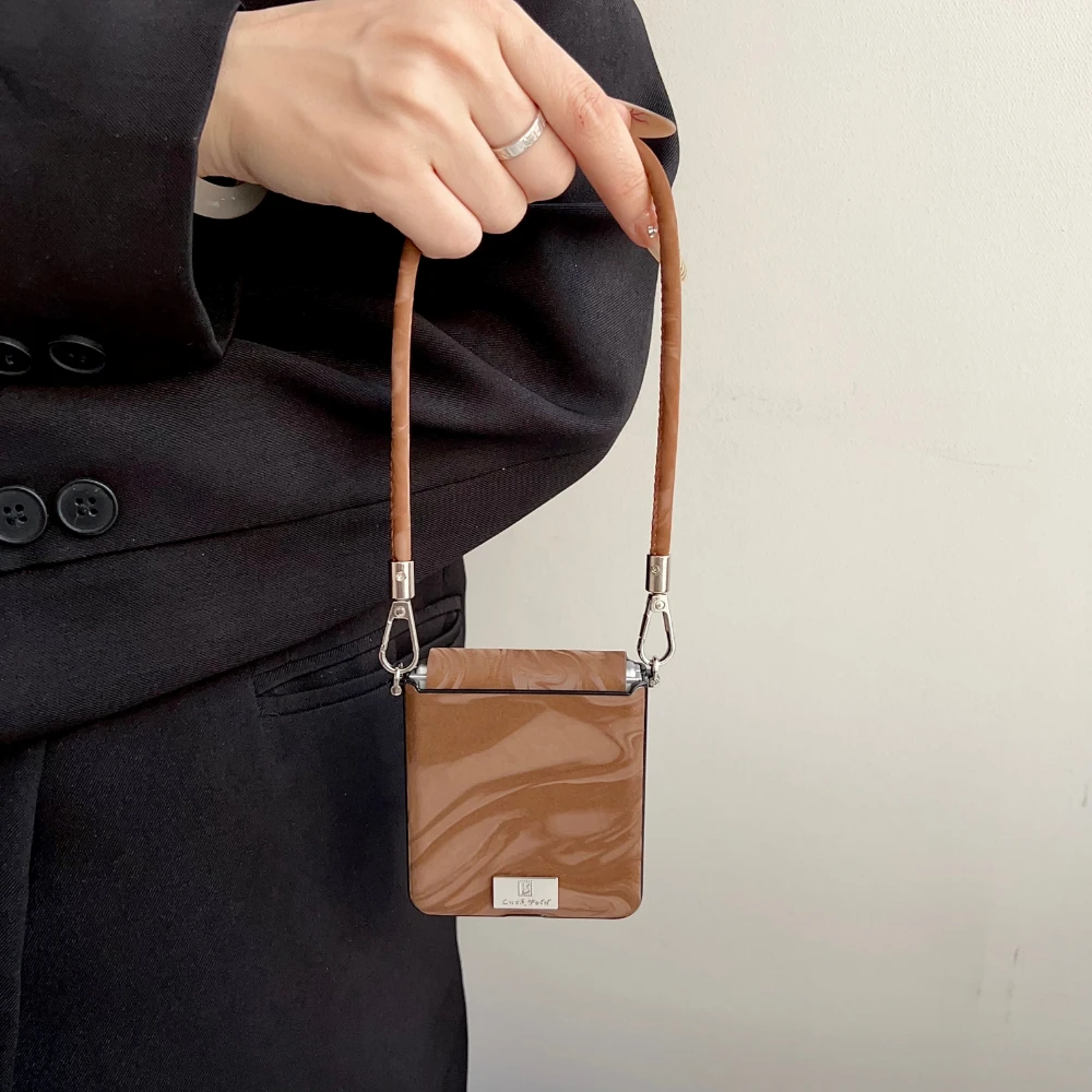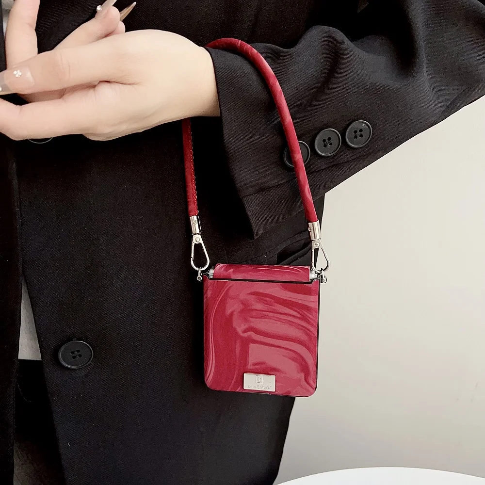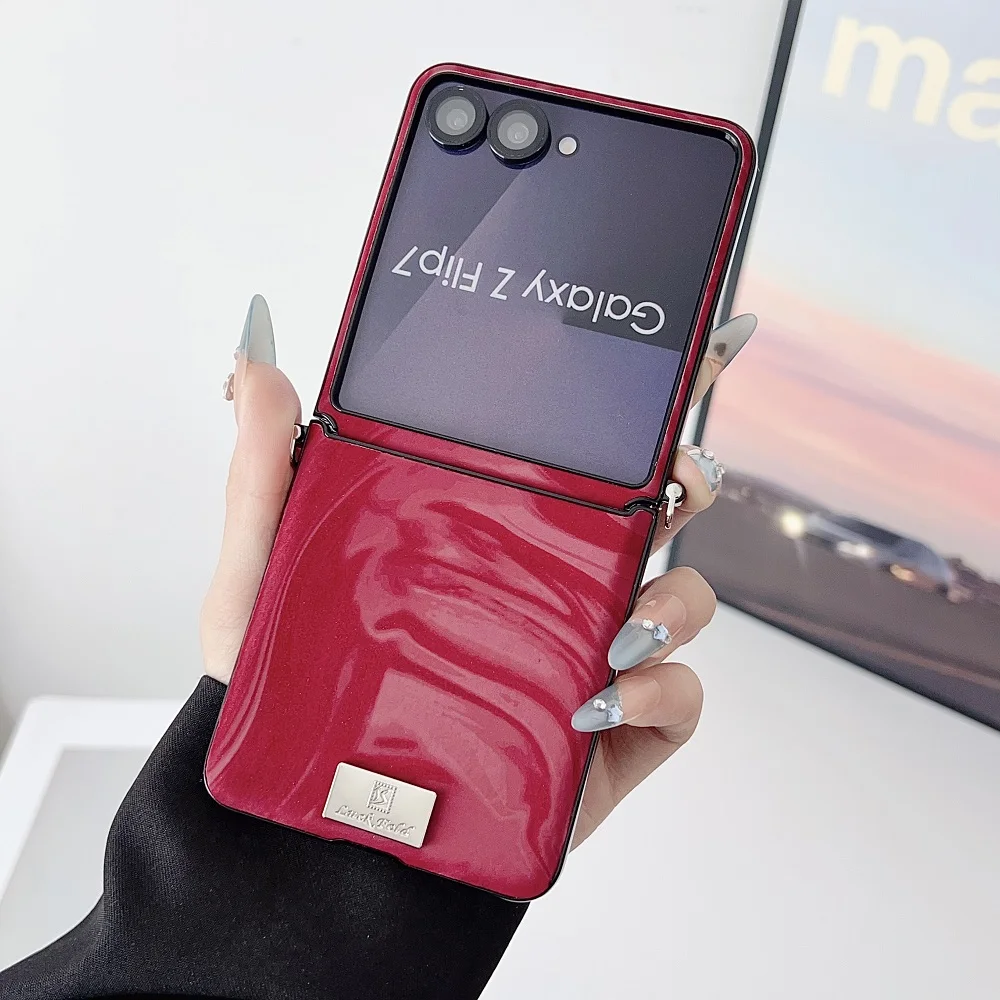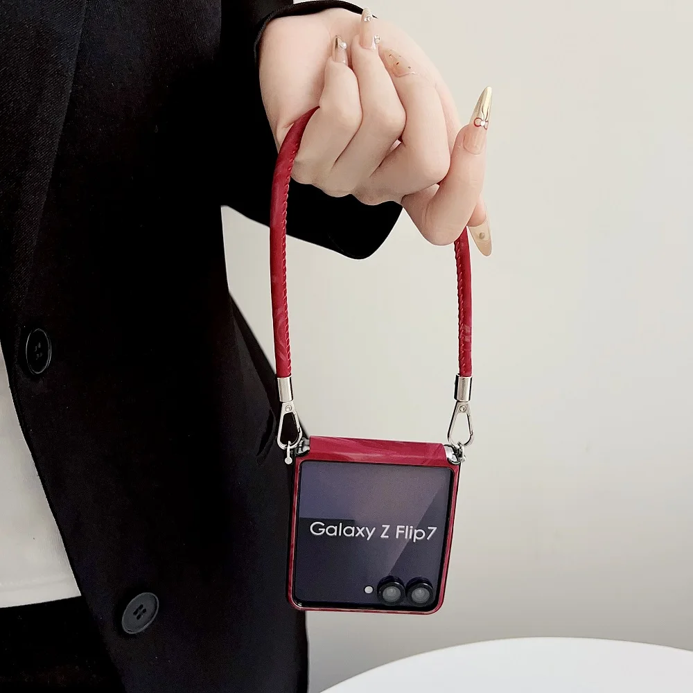 Luxury Water Ripple PU Leather Phone Case For Samsung Galaxy Z Flip 7 6 5 4 3 Flip7 FE Protection Folding Cover with Lanyard