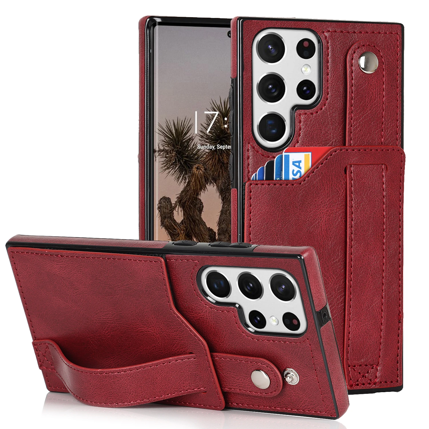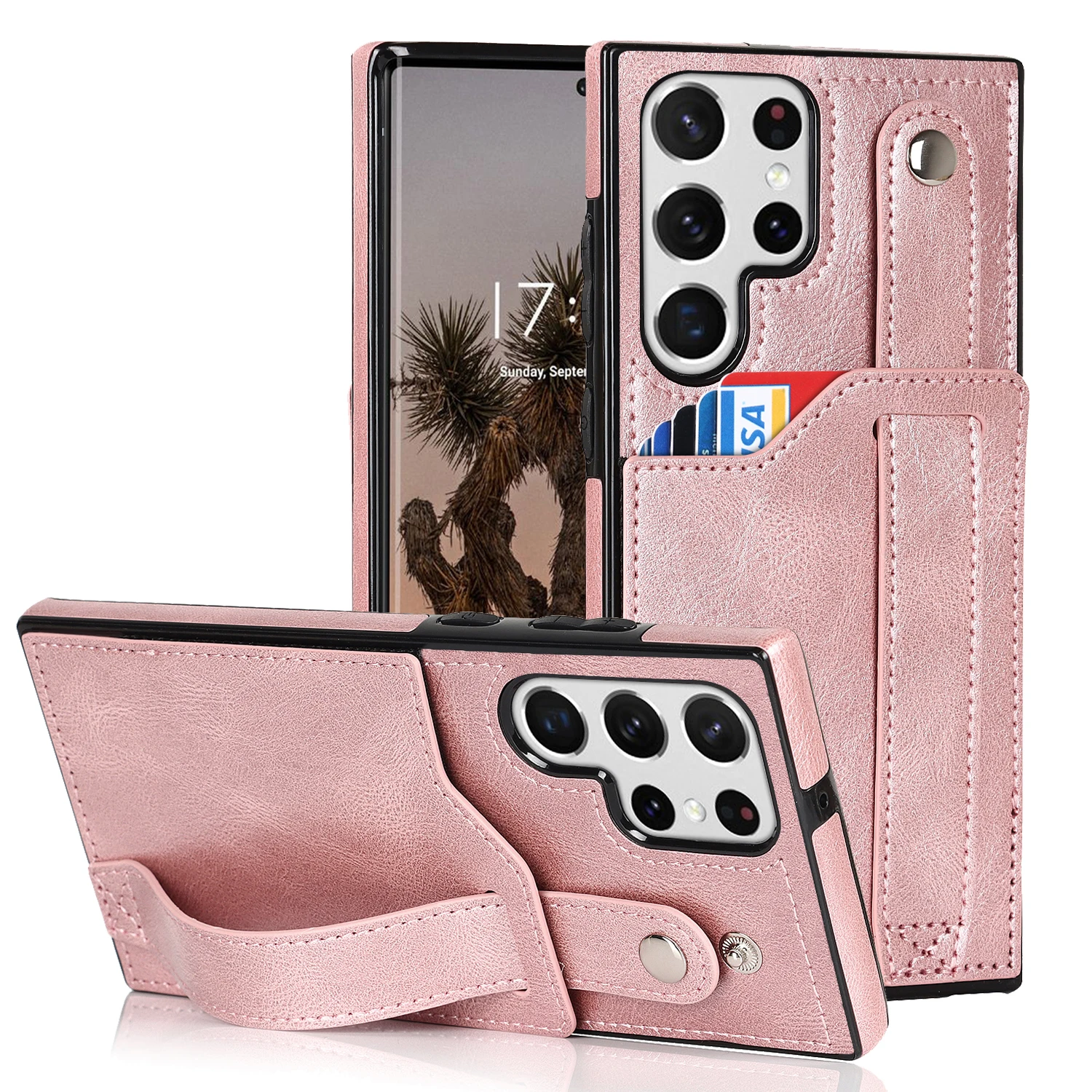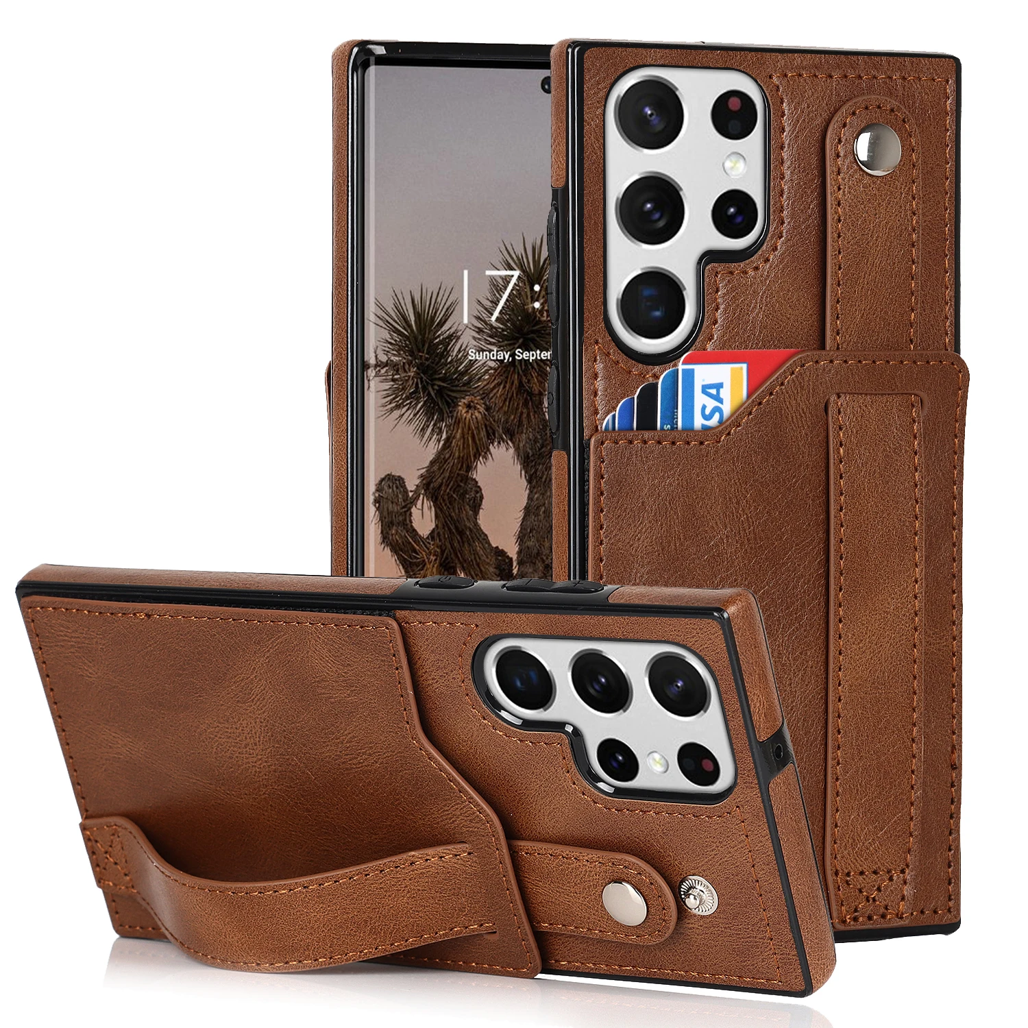 Luxury Wrist Strap Leather Wallet Case For Samsung Galaxy S23 S24 S25 Plus S22 Ultra Stand Cover