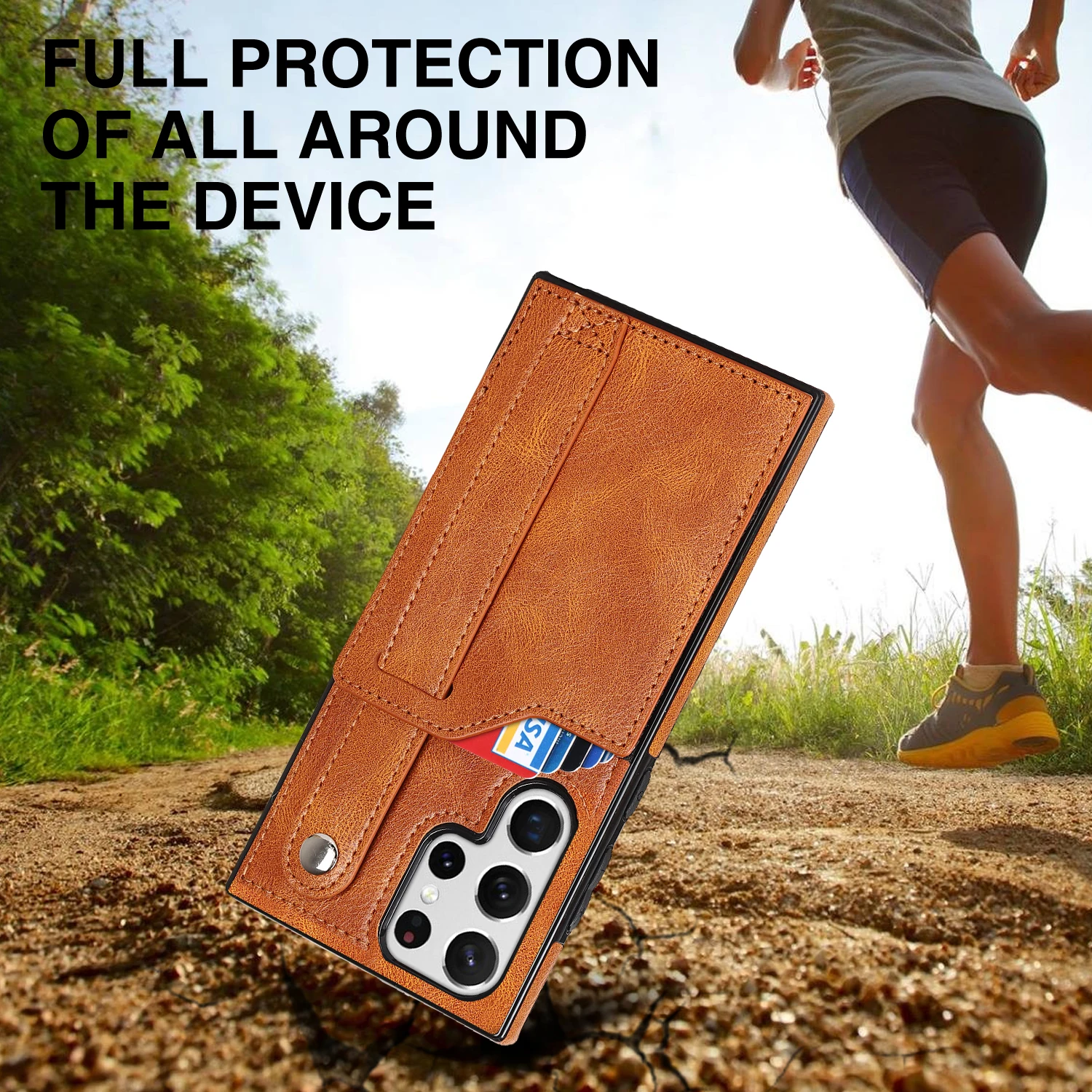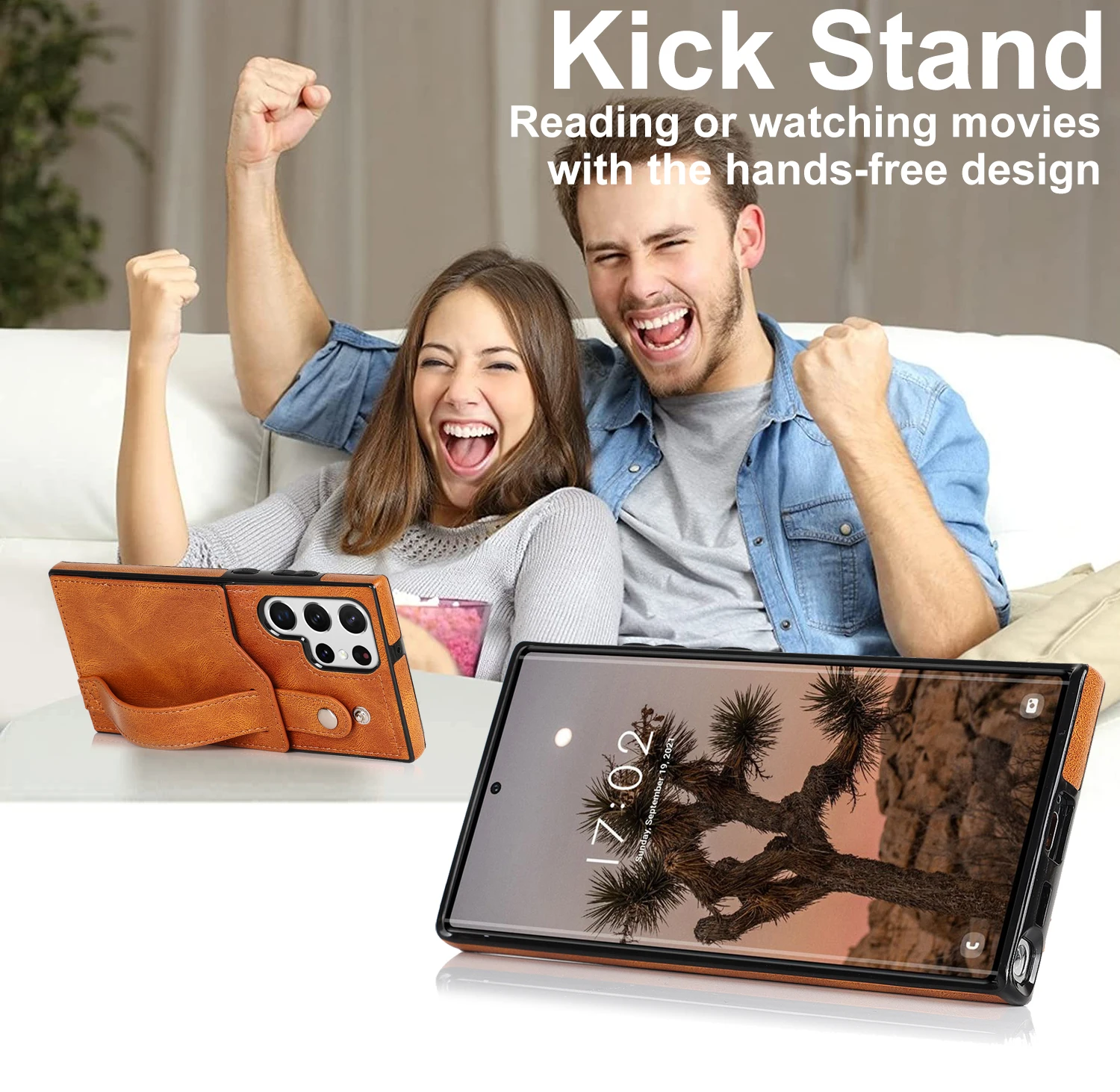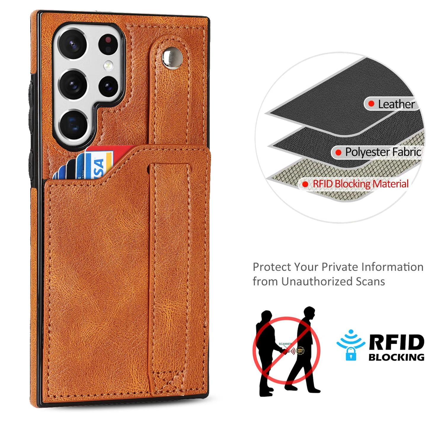 Luxury Wrist Strap Leather Wallet Case For Samsung Galaxy S23 S24 S25 Plus S22 Ultra Stand Cover