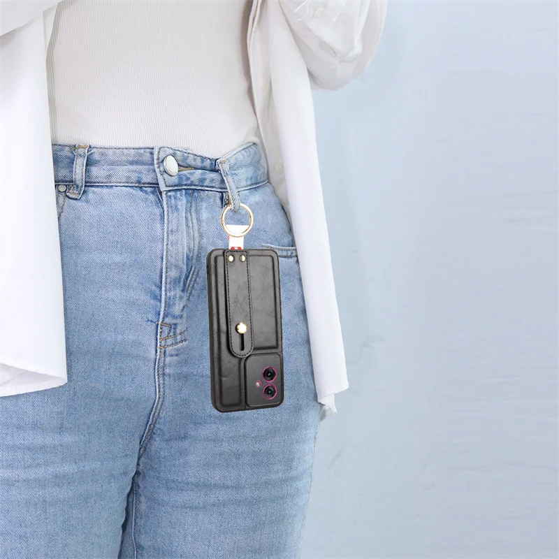 Luxury Wristband Leather Stand Case for Motorola Moto G35 G55 G45 G85 5G With Ring Opener Coque Fundas Capa