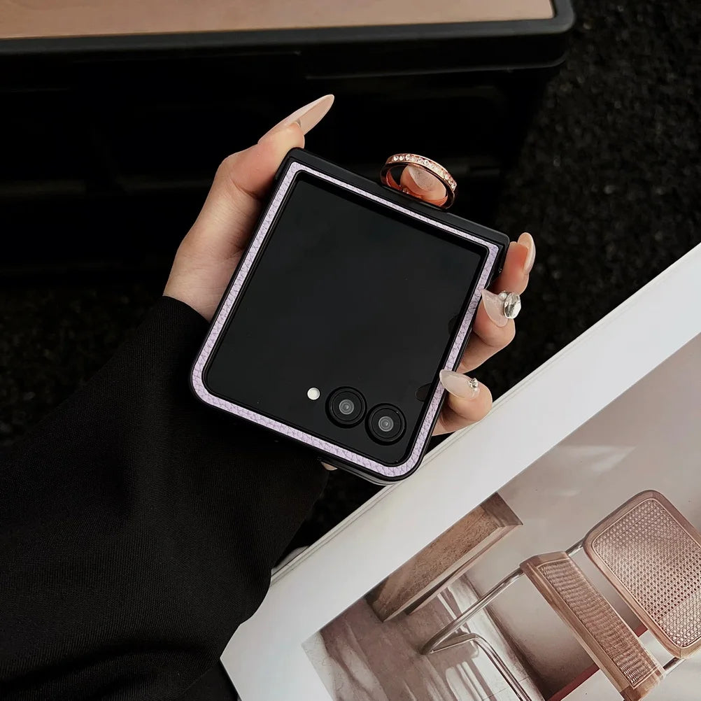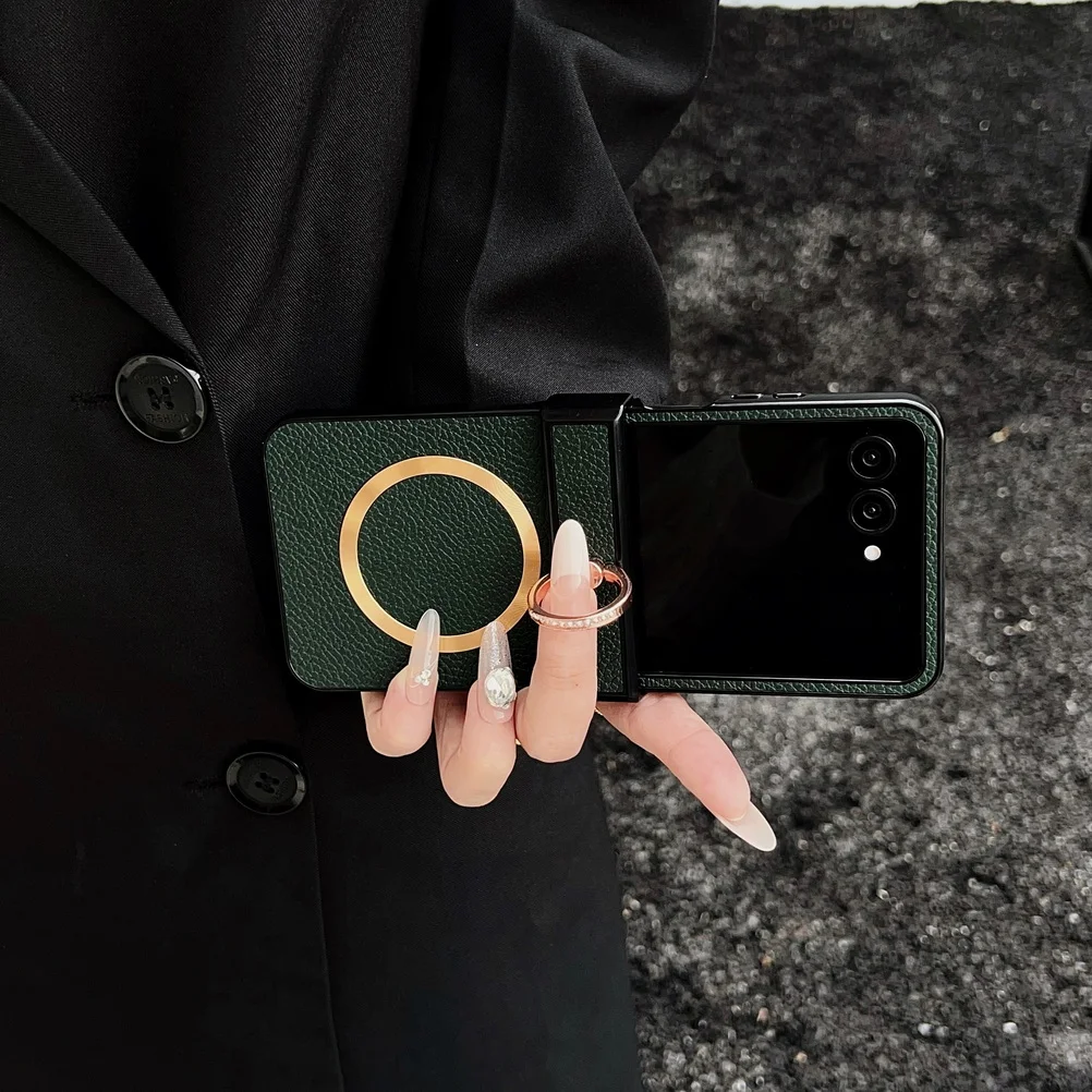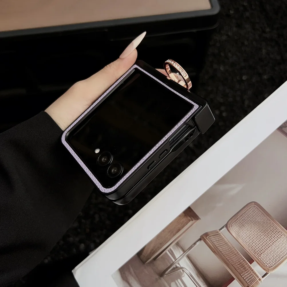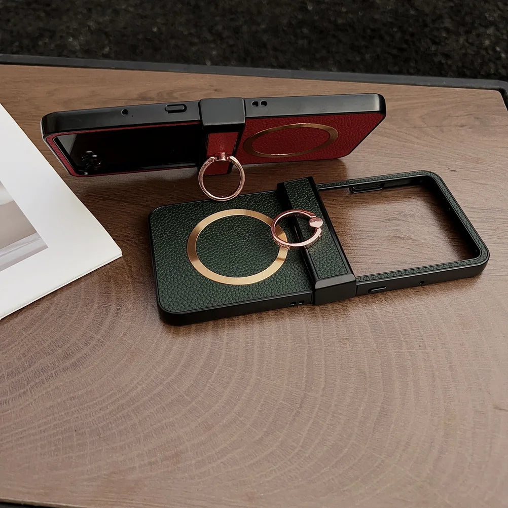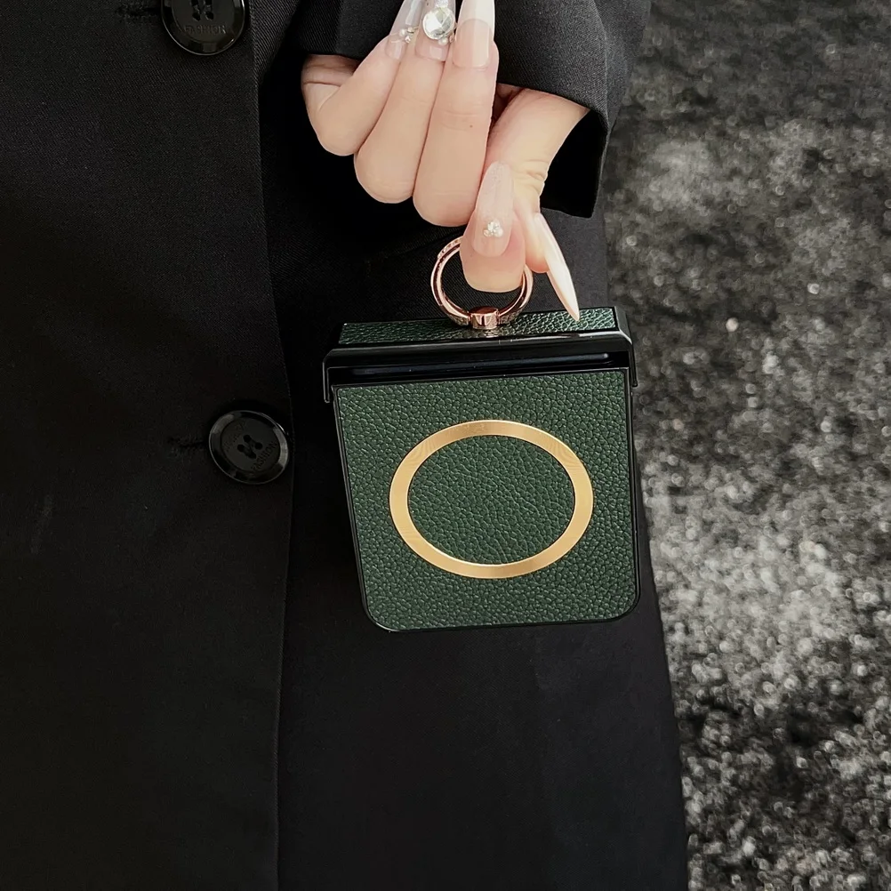 Lychee Plain Leather Metal Finger Ring and Magnetic Ring Case For Motorola Razr 60 Ultra razr60 Moto Razr 50 razr+ 2024 Cover