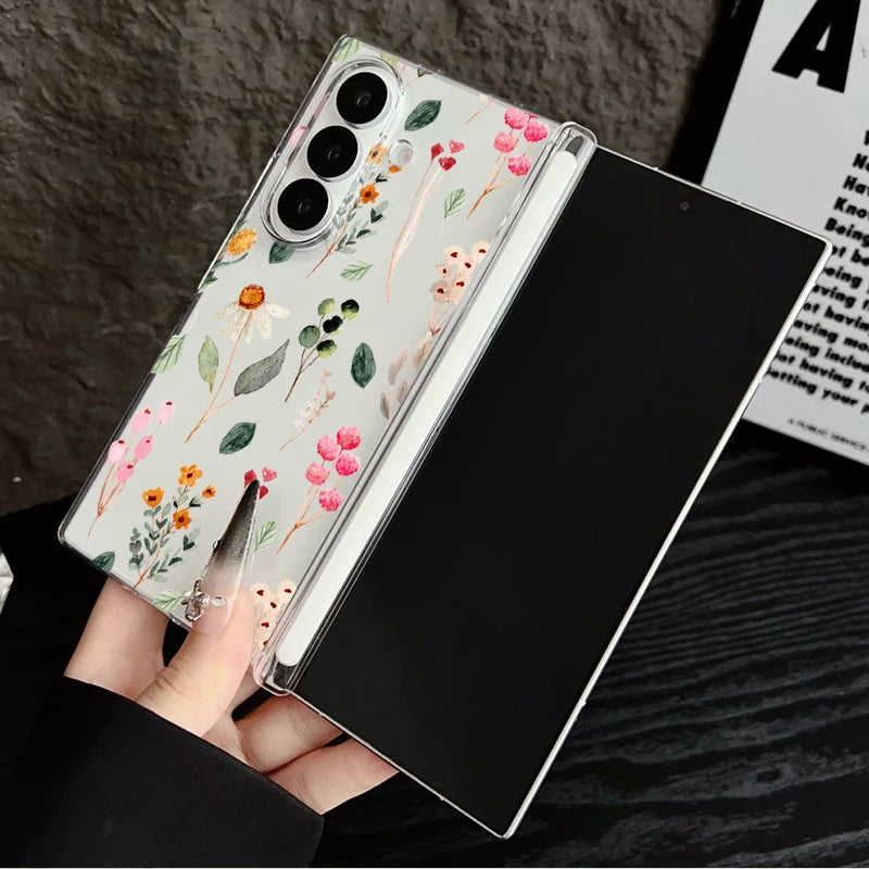 Magnetic Adsorption Clear Phone Case For Samsung Galaxy Z Fold 7 6 Fold7 Fold6 Fold5 5G Colorful Plant Printing Hard Back Cover