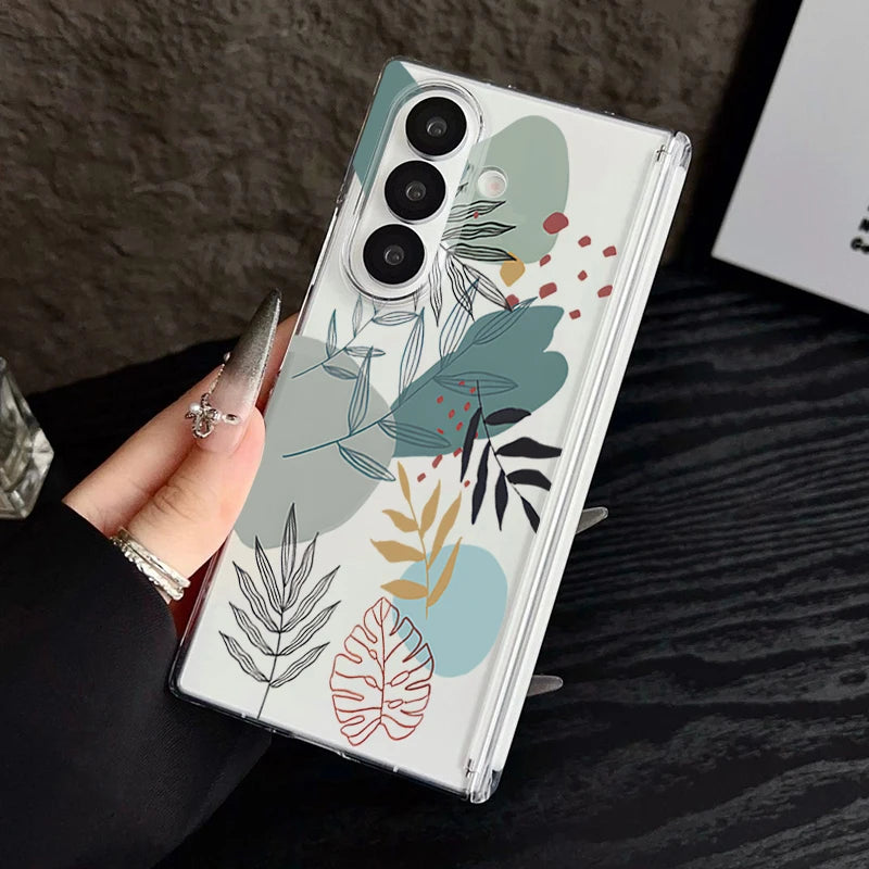 Magnetic Adsorption Phone Case For Samsung Galaxy Z Fold 7 6 5 Fold7 Fold6 Fold5 5G Flower Floral Pattern Clear Shockproof Cover
