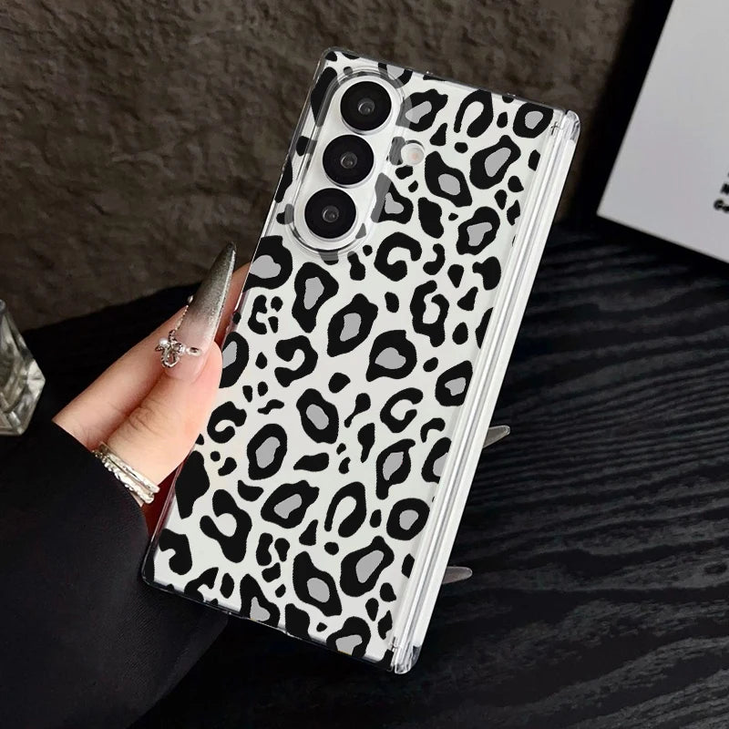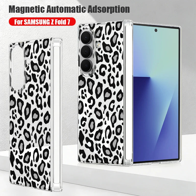 Magnetic Adsorption Phone Case For Samsung Galaxy Z Fold 7 6 5 Fold7 Fold6 Fold5 5G Leopard Print Pattern Clear Shockproof Cover