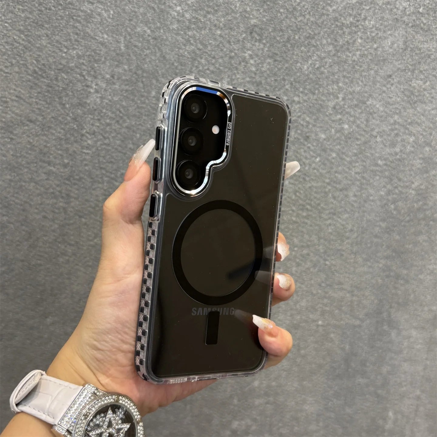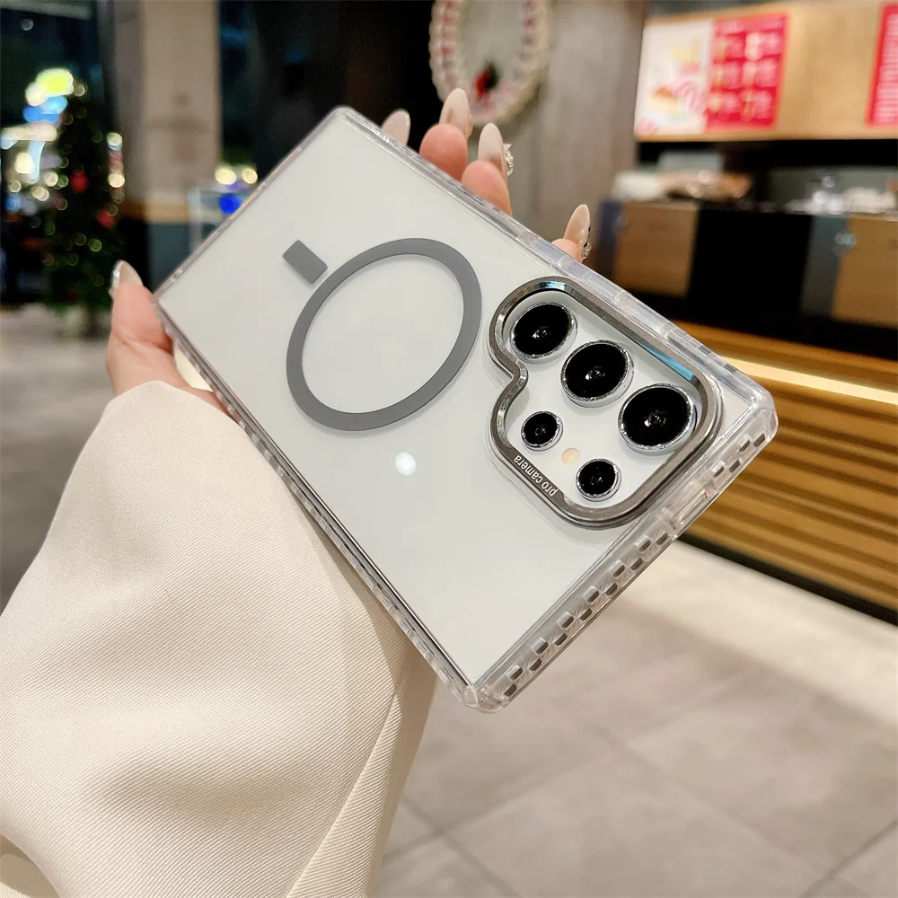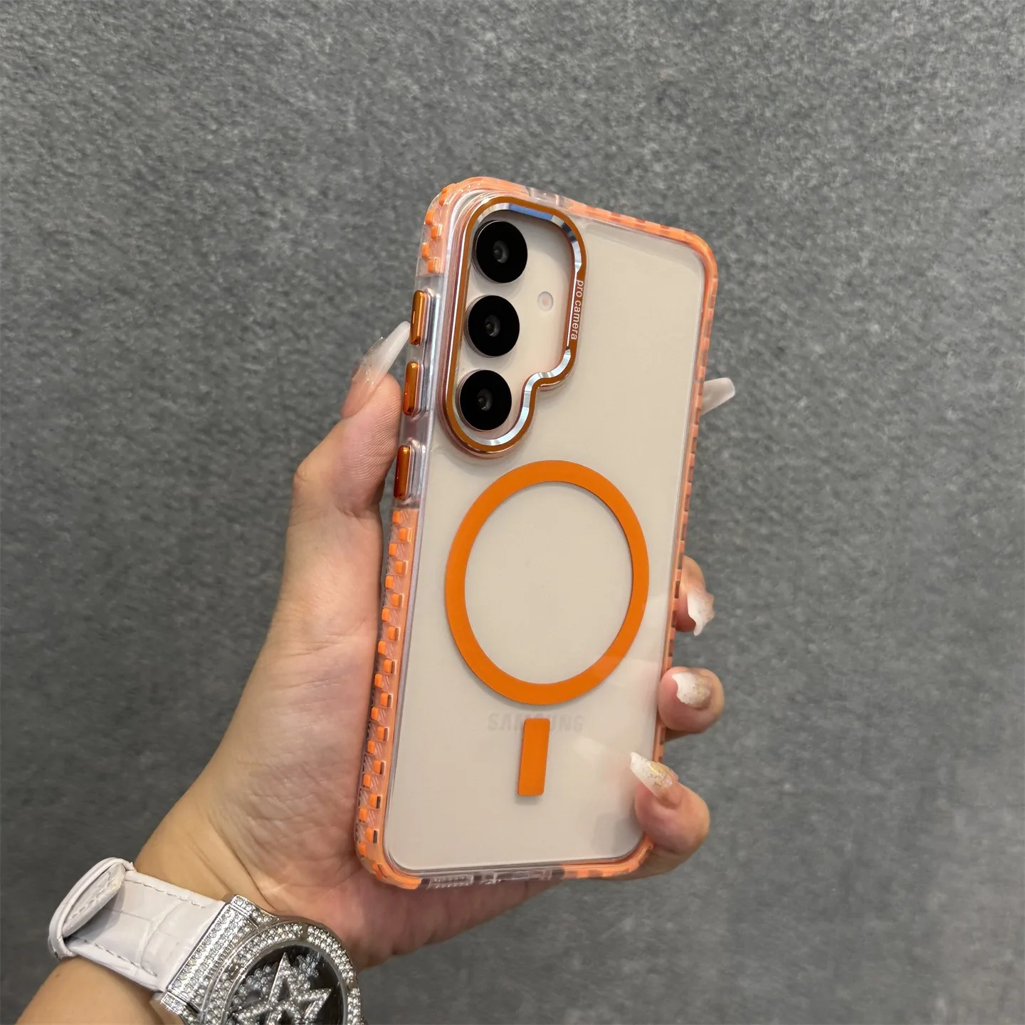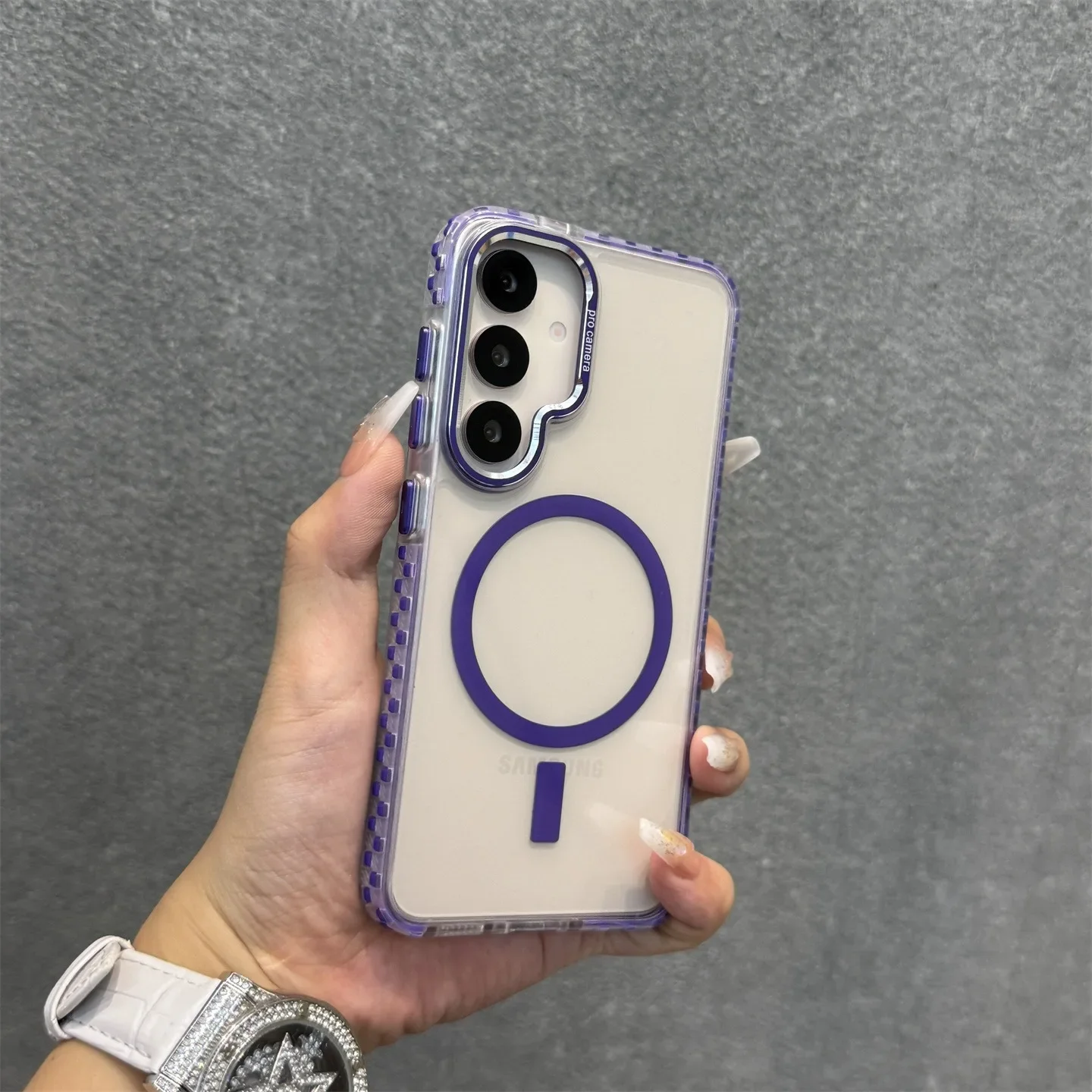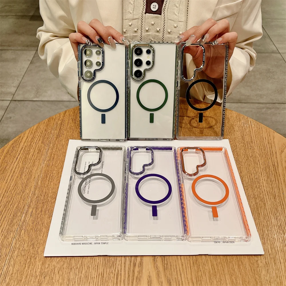 Magnetic for Magsafe Colorful Border Phone Case For Samsung Galaxy S25 S24 Plus S23 S22 Ultra S25Ultra Slim Transparent Cover