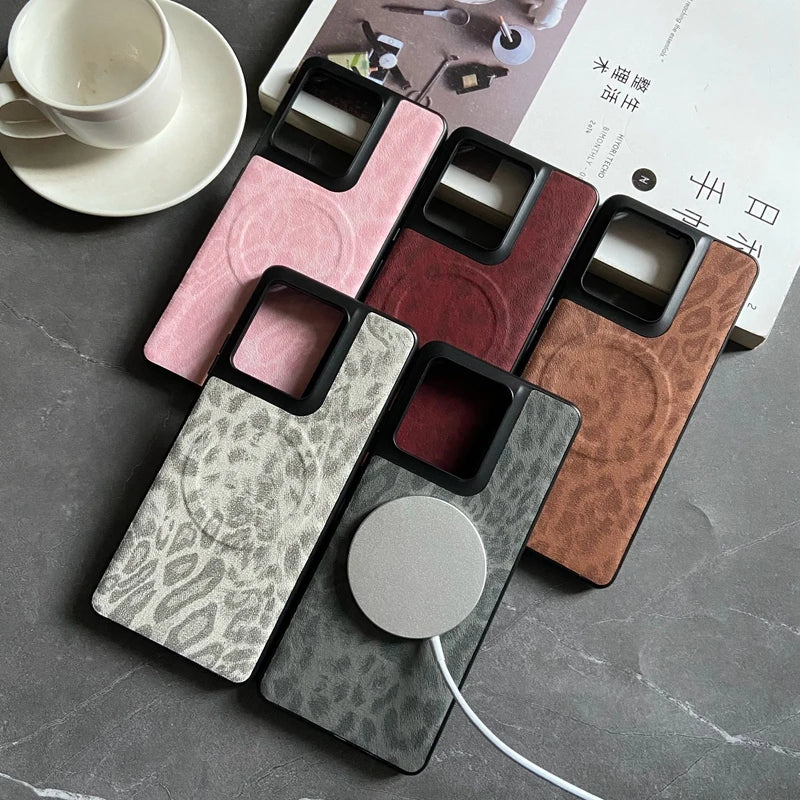 Magnetic Leather Case for Motorola Moto Edge 50 Ultra Fushion Pro G Play Power Stylus 2024 Cover Leopard Floral Mag-safe Shell