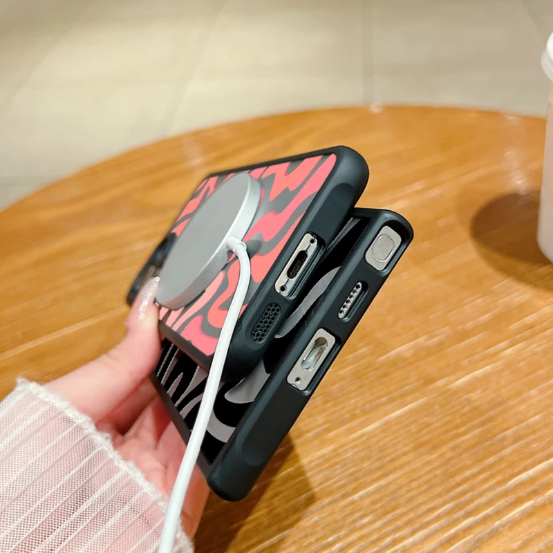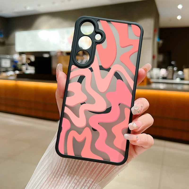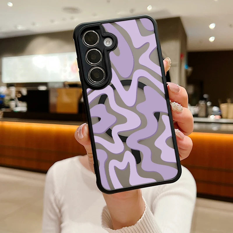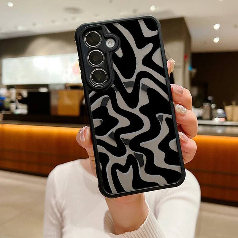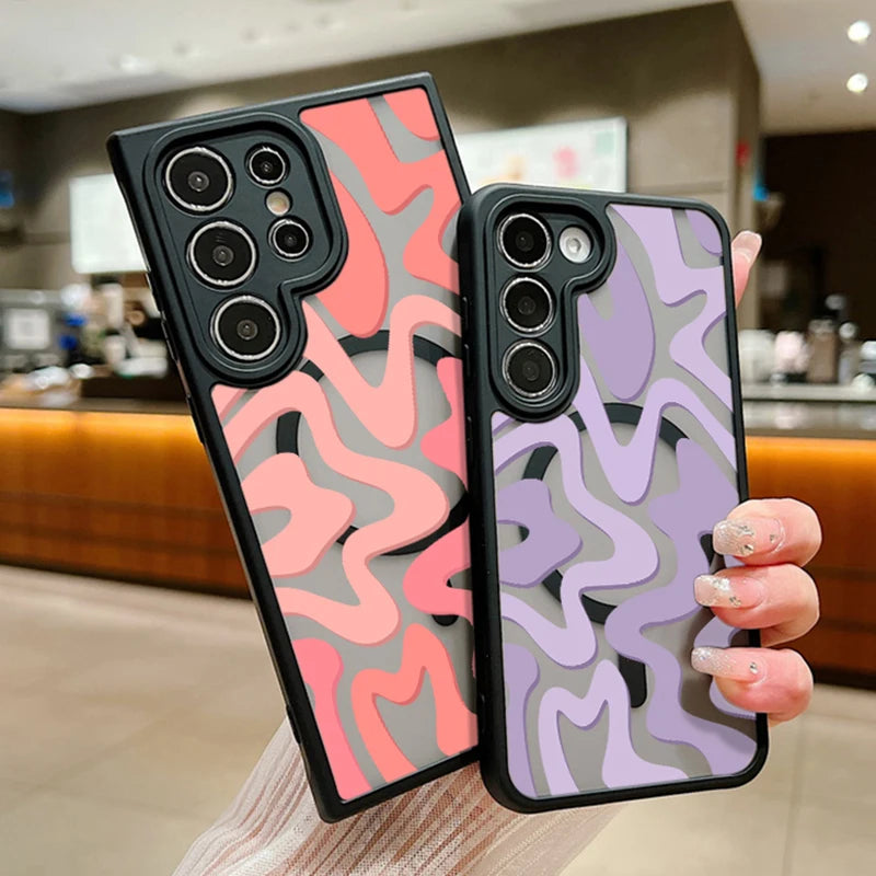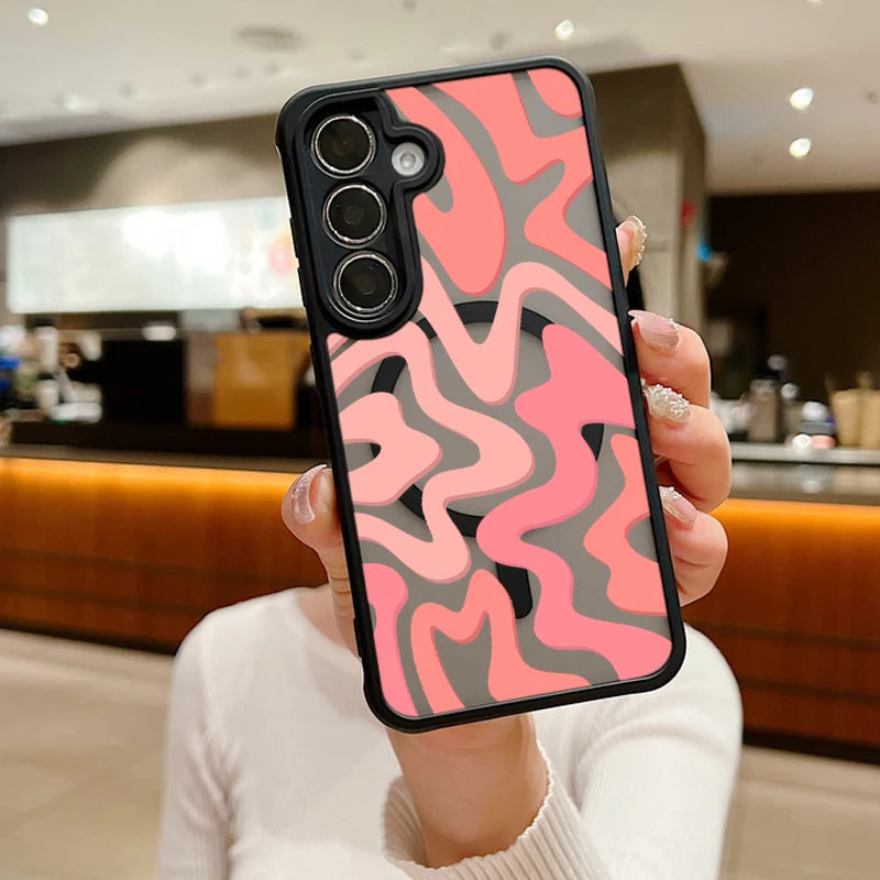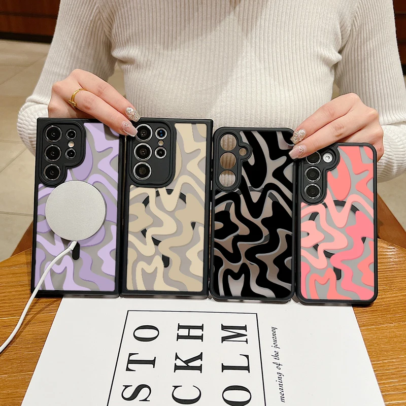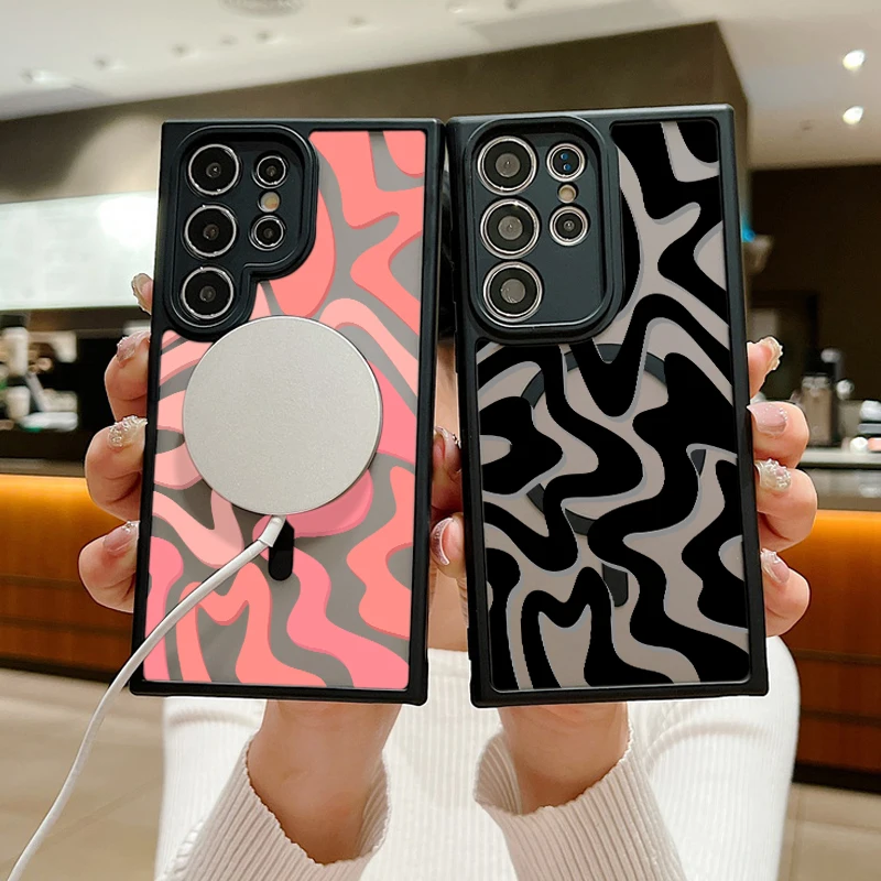Magnetic Wireless Charging For Magsafe Case For Samsung Galaxy S25 Edge S24 S22 S23 Ultra S23 S24 FE Stripe Pattern Matte Cover