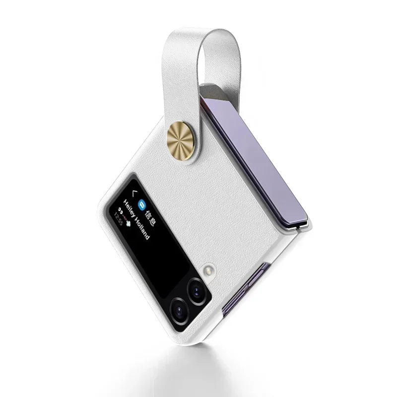 Matte Hand Strap Leather Holder Case for Samsung Galaxy Z Flip 3 4 5 6 5G Flip6 ZFlip4 Protection Luxury Foldable Fashion Cover