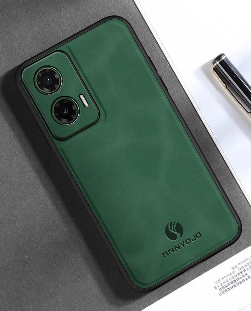 Matte Plain Leather Case For Moto G35 Motorola Moto G35 Built-in Metal Car Mount Holder Cover